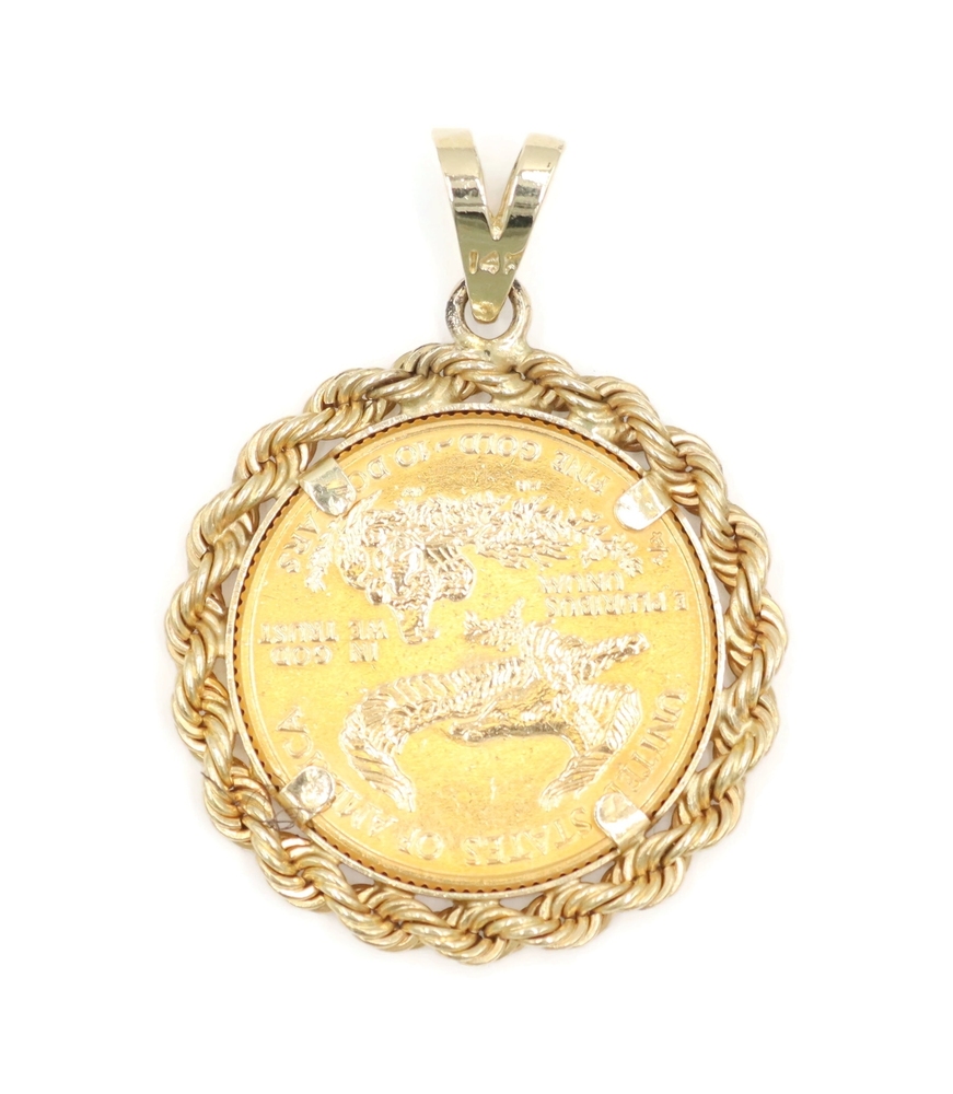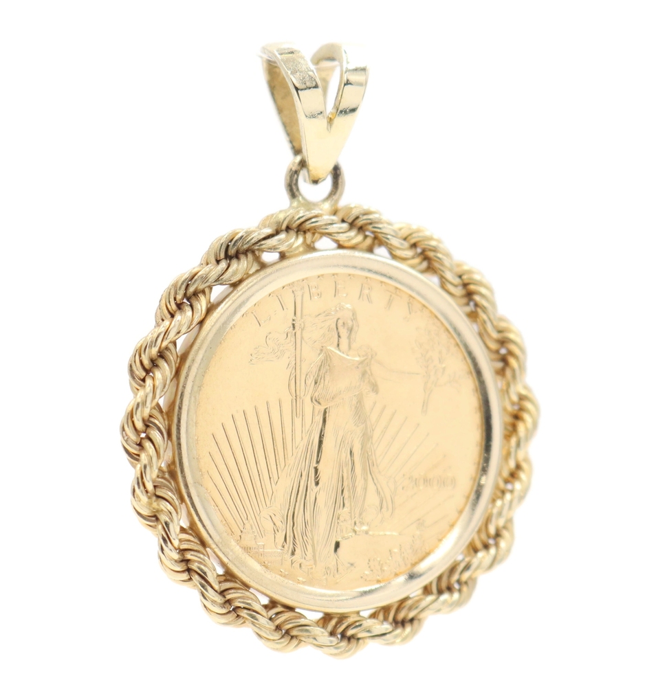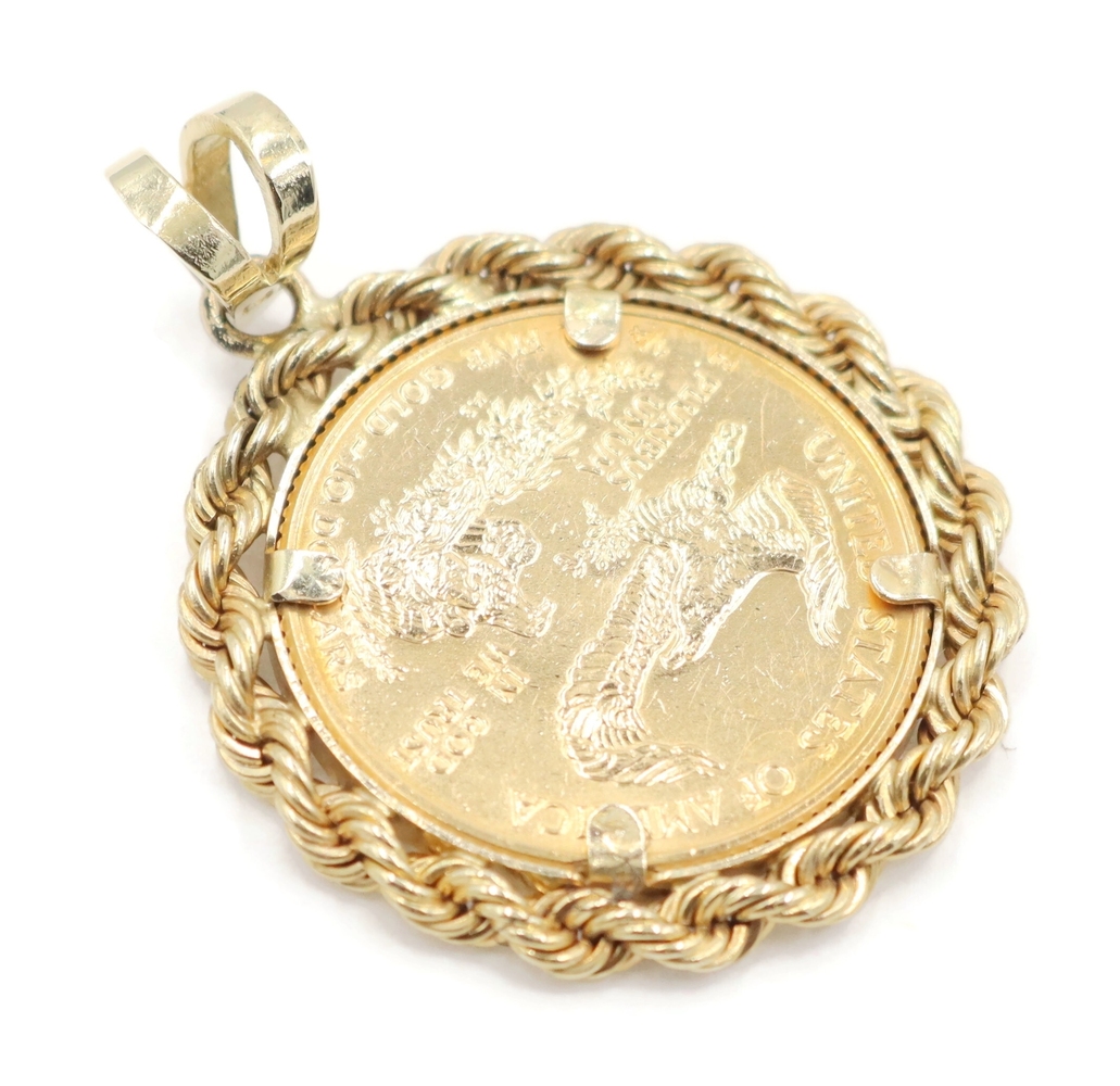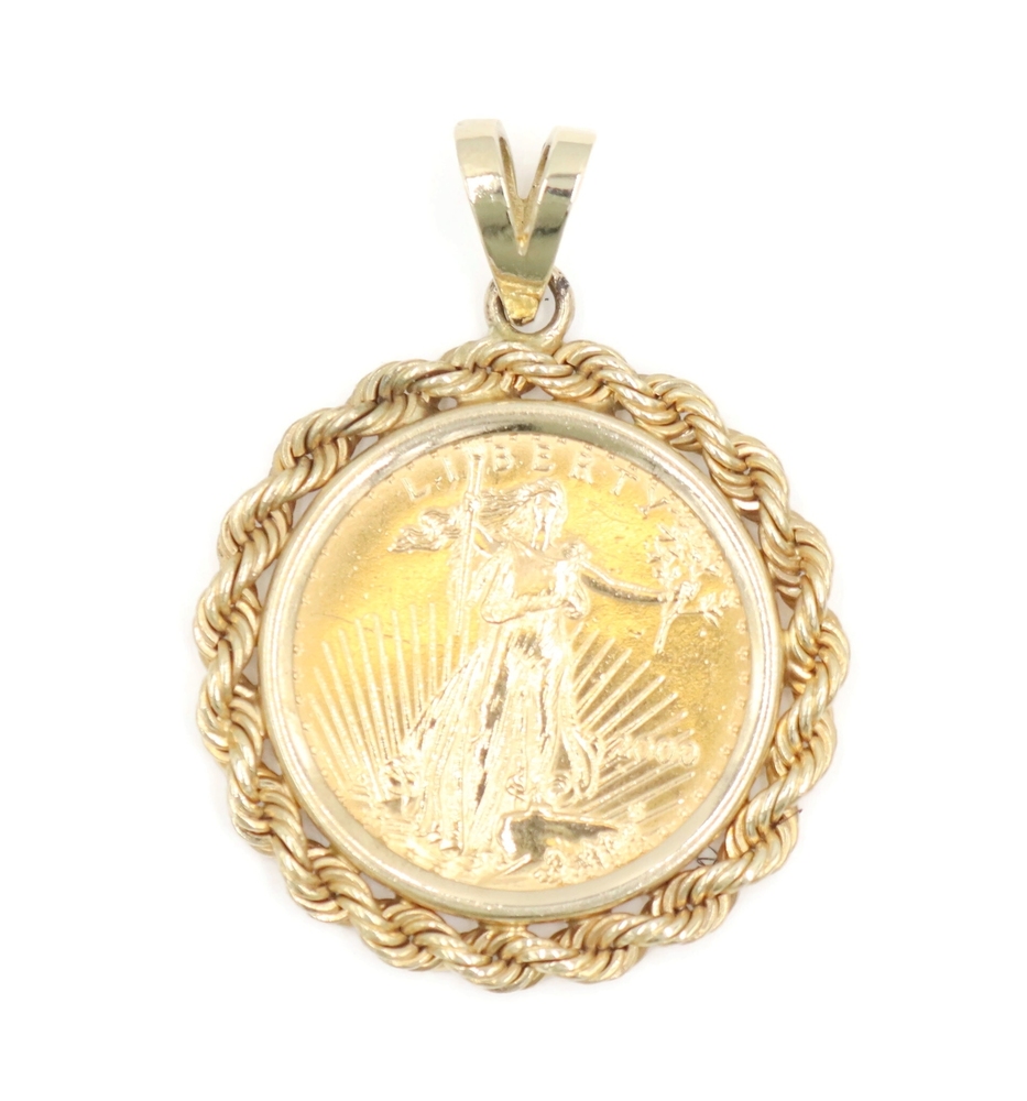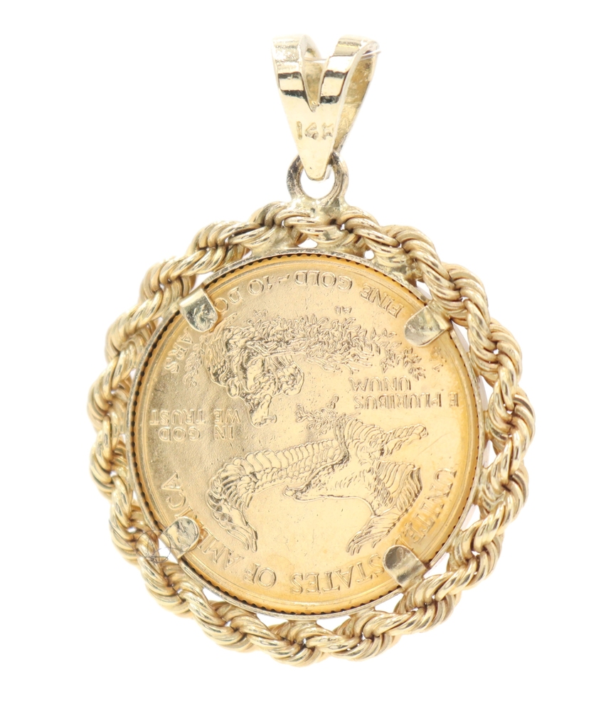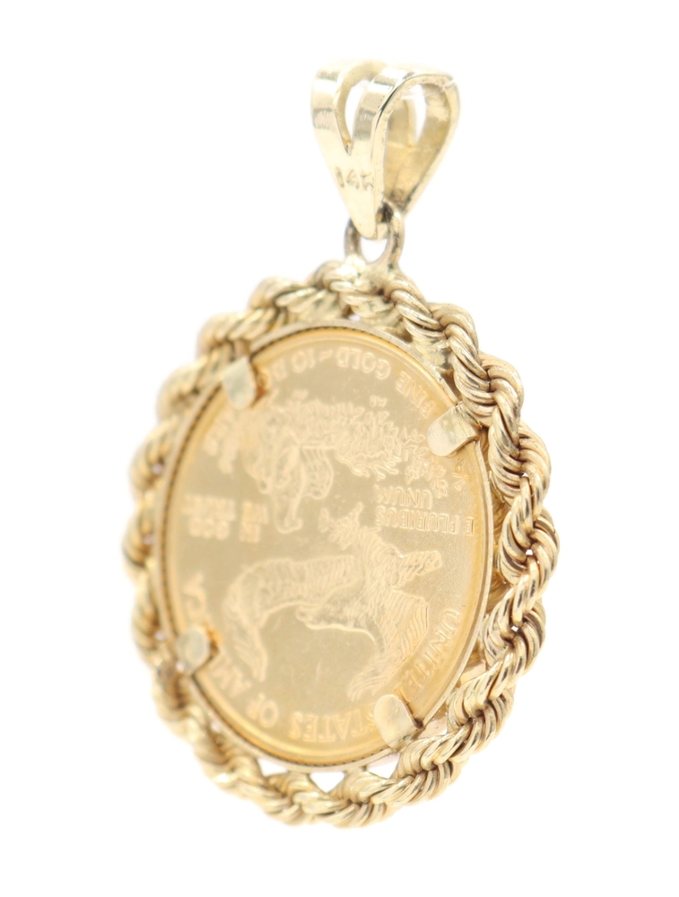 Liberty 2000 1/4 oz Fine Gold Coin in 14KT Yellow Gold Rope Bezel Pendant 12.9g | USA Pawn