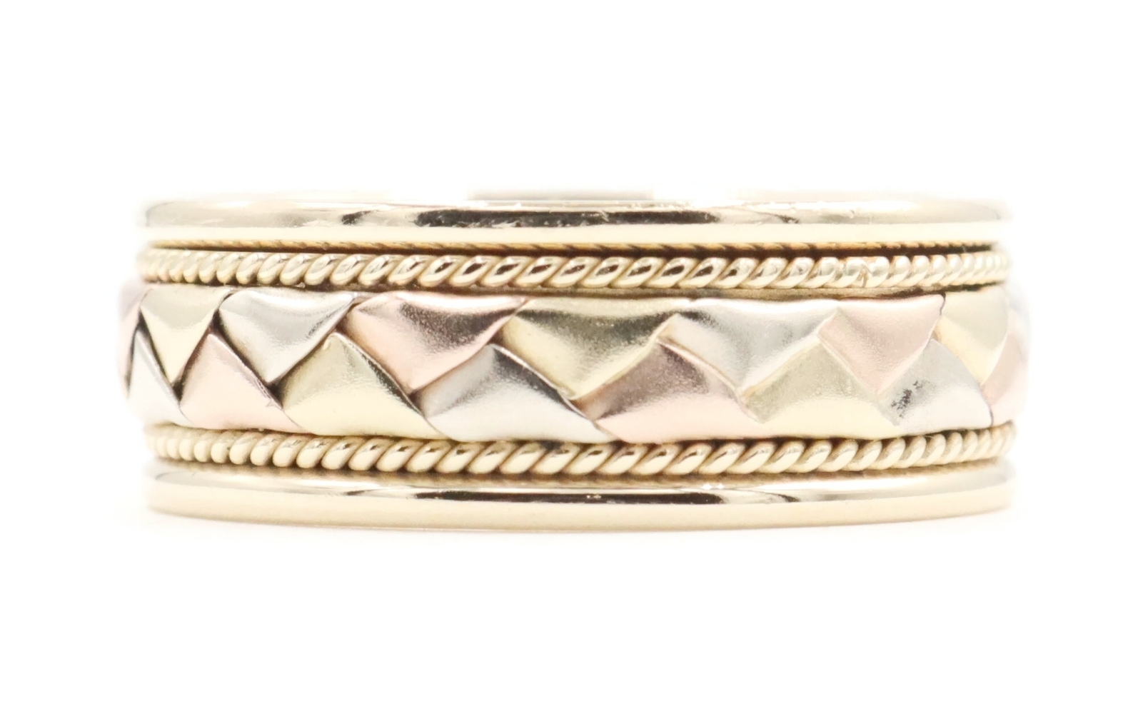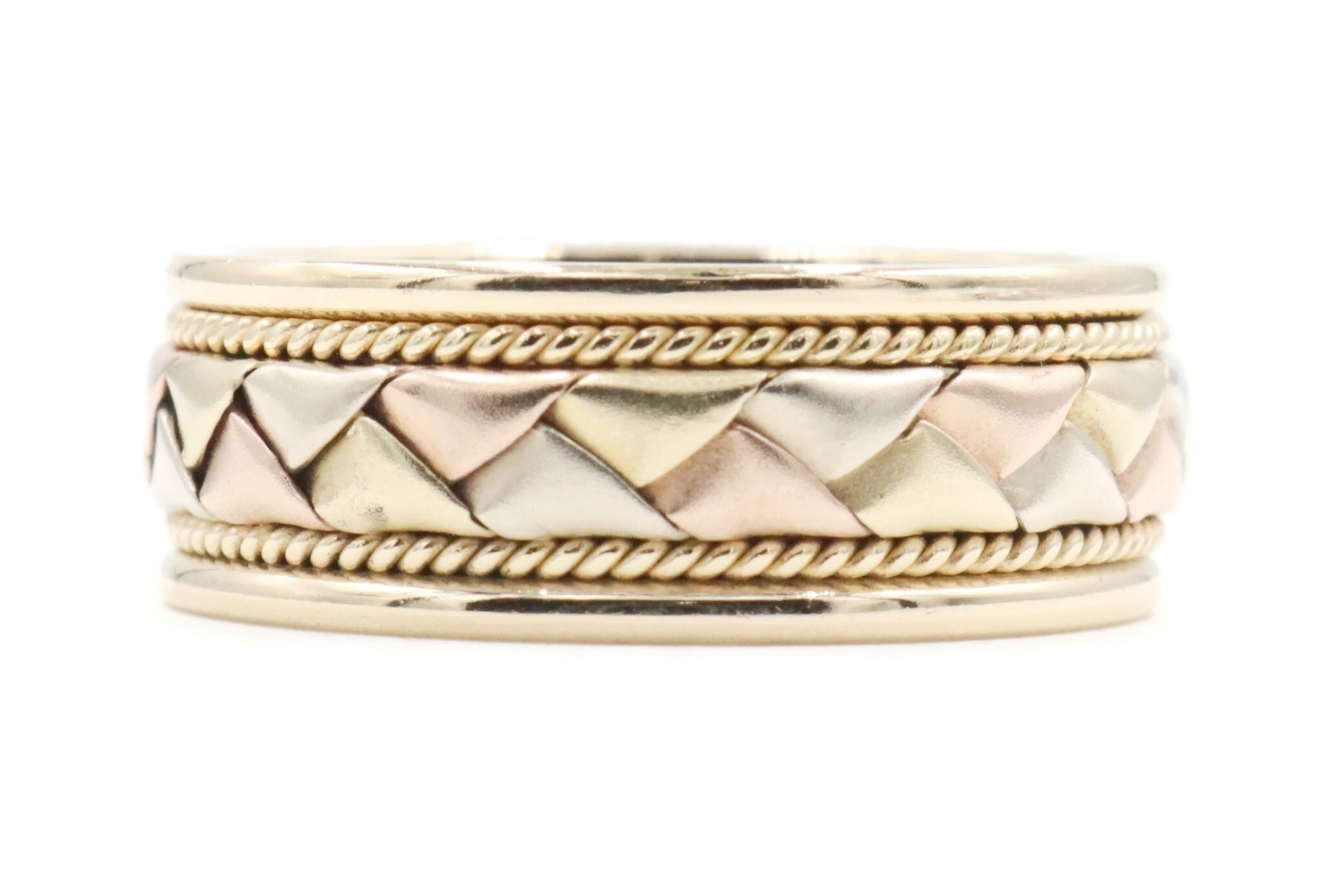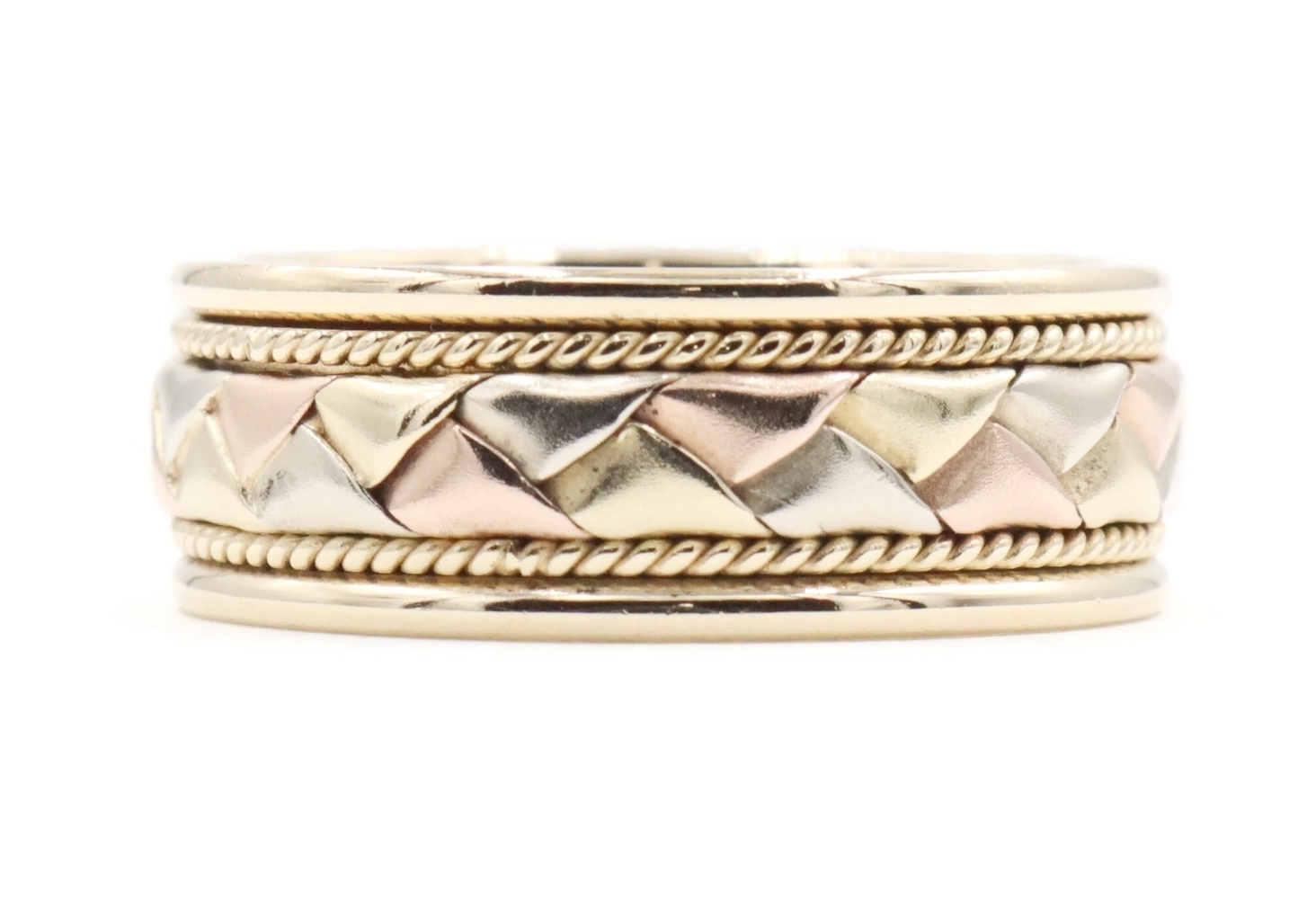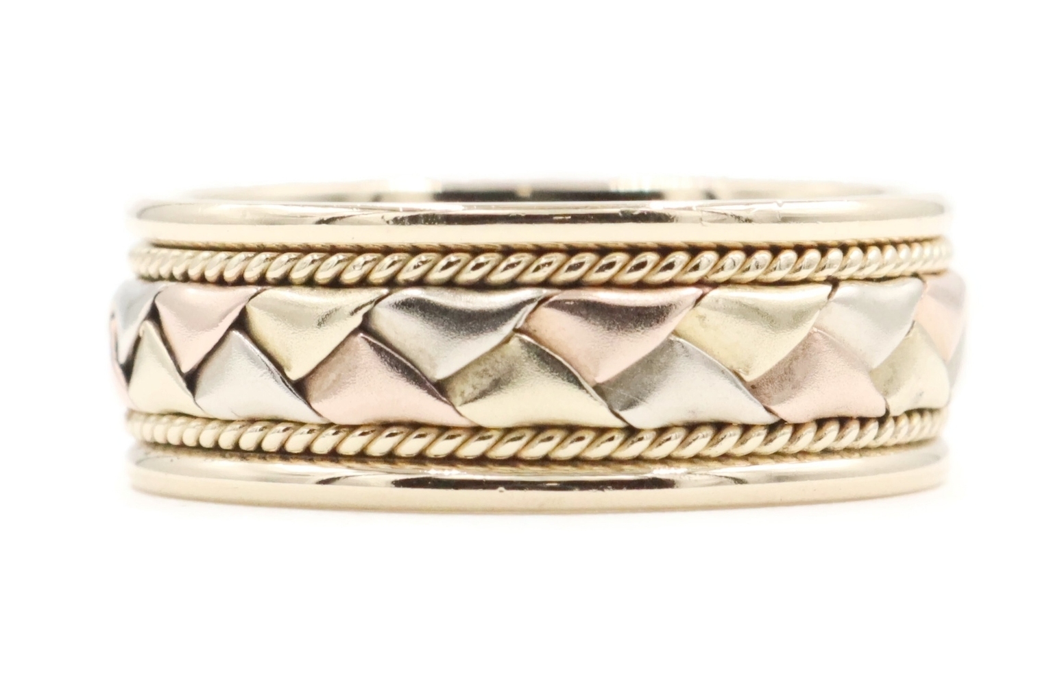 Matte Finish 14KT Tri-Color Gold 8mm Braided Wedding Band Ring Size 10.5 - 8.30g | USA Pawn