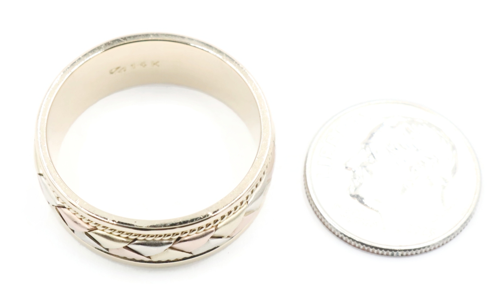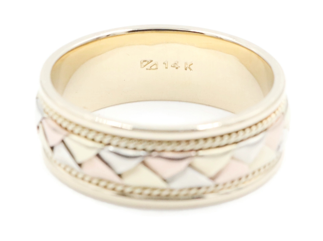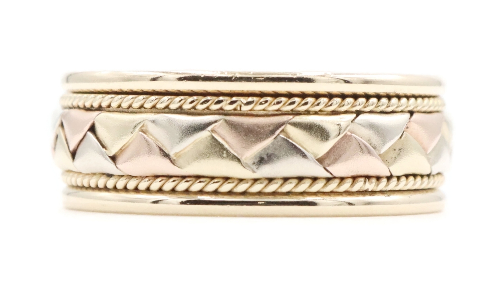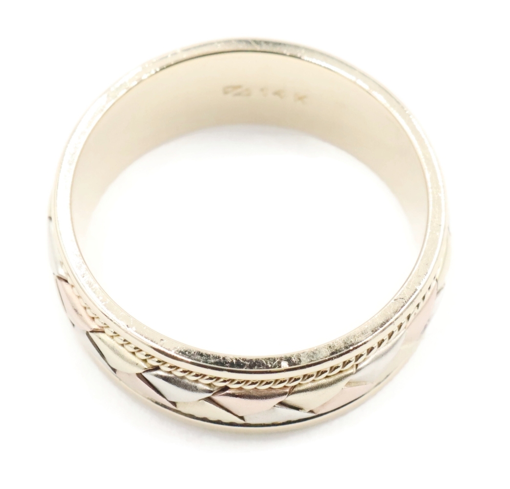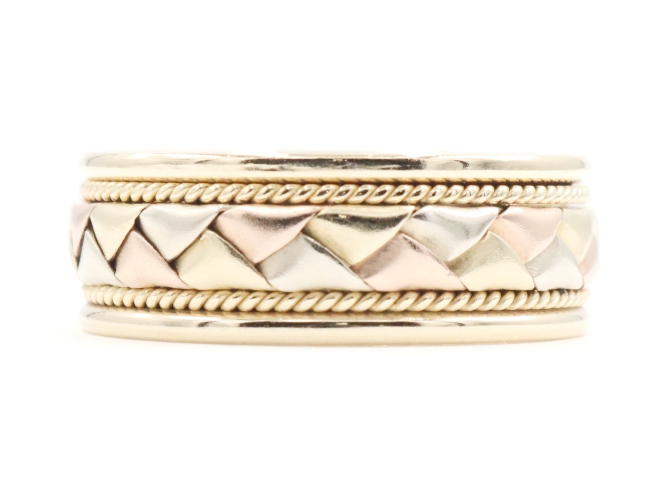 Matte Finish 14KT Tri-Color Gold 8mm Braided Wedding Band Ring Size 10.5 - 8.30g | USA Pawn