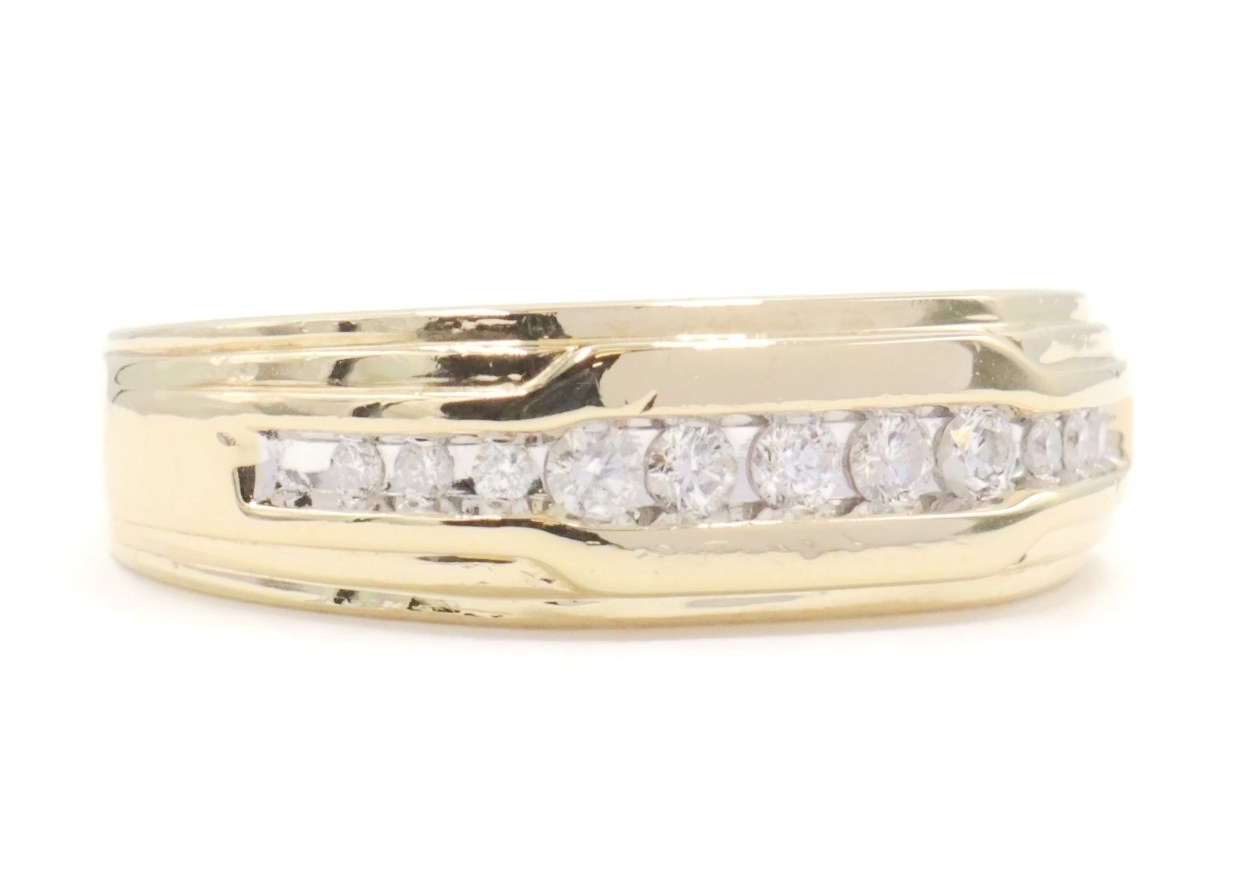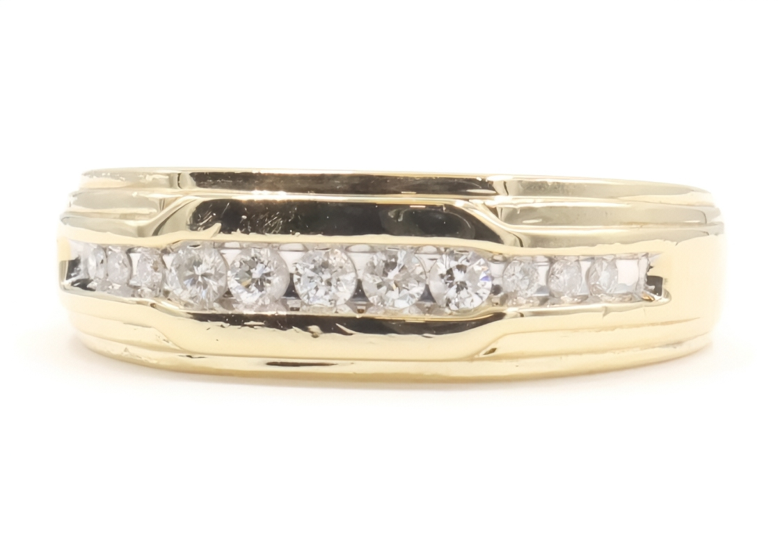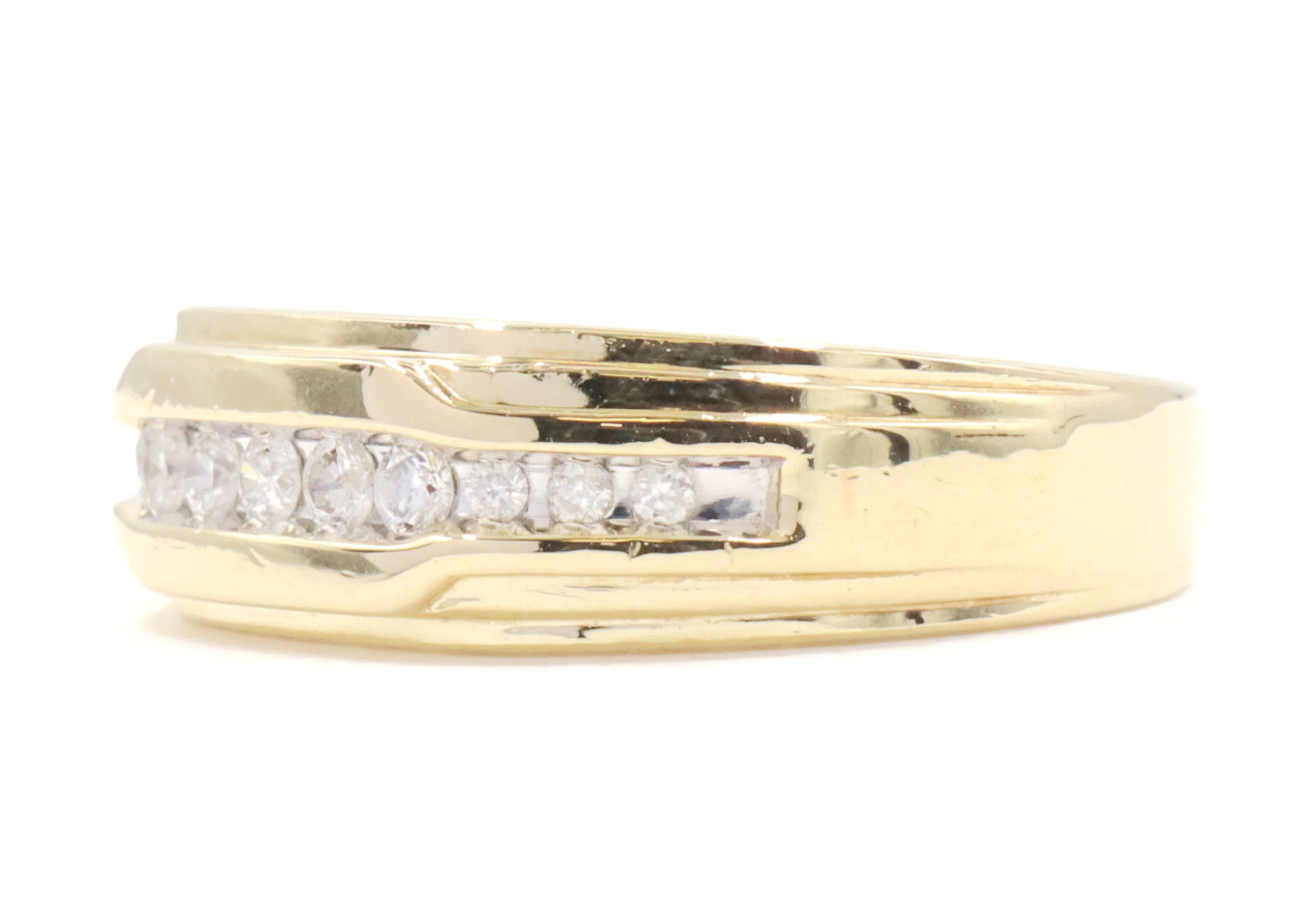 Men's 0.34 ctw Round Diamond 10KT Yellow Gold Angled Channel Wedding Band MGW. This ring is a size 10.
