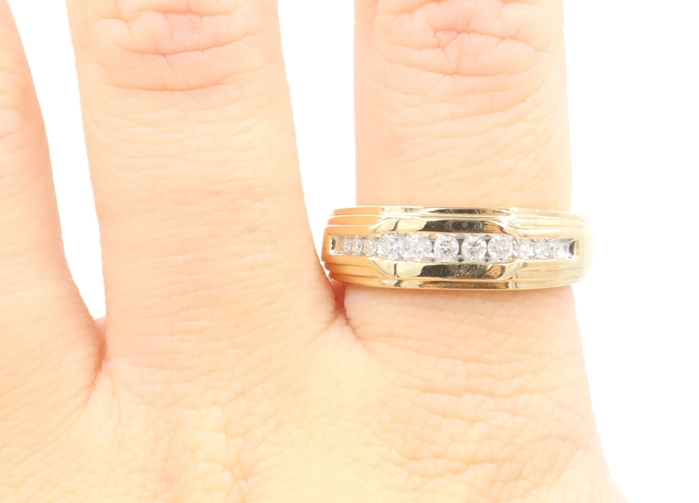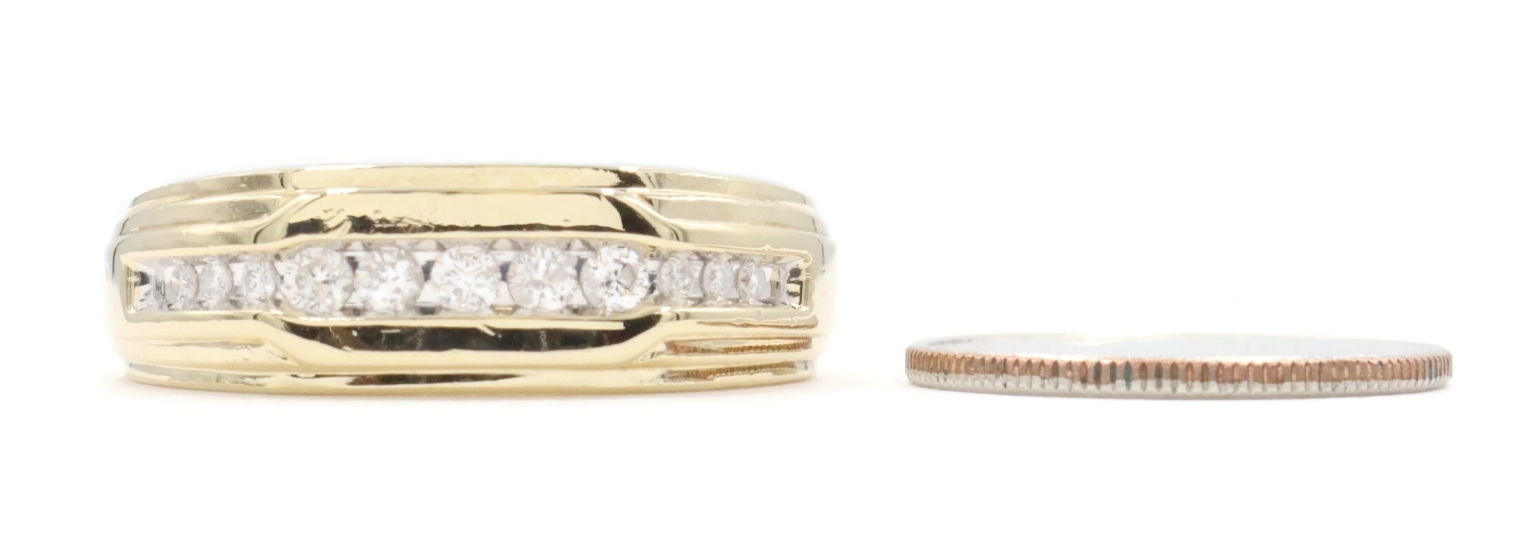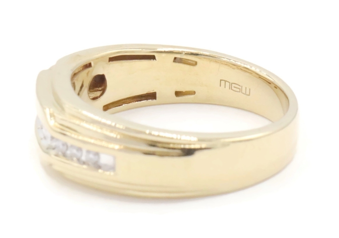 Men's 0.34 ctw Round Diamond 10KT Yellow Gold Angled Channel Wedding Band MGW. This ring is a size 10.