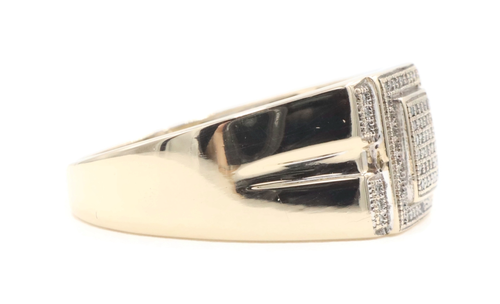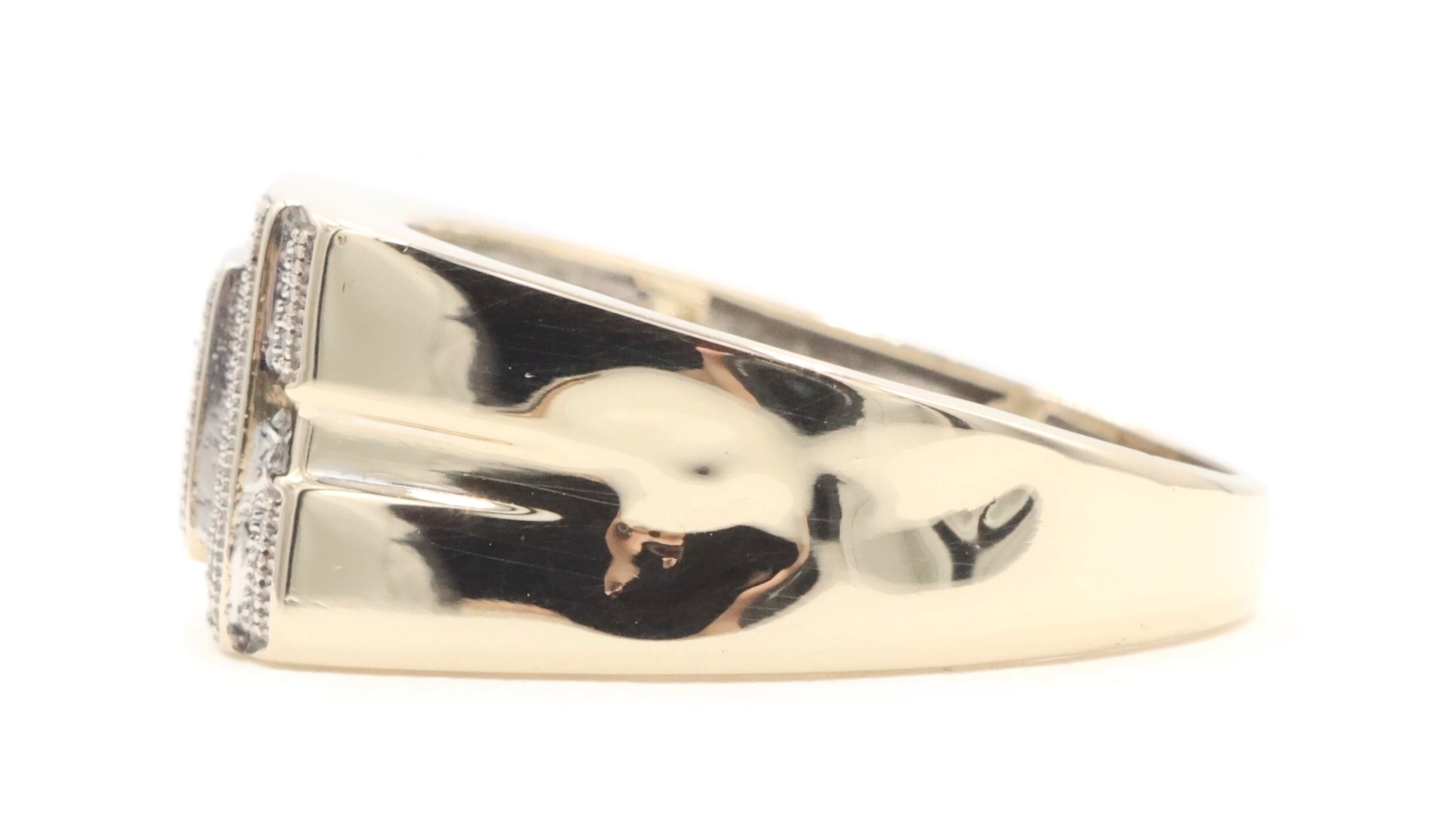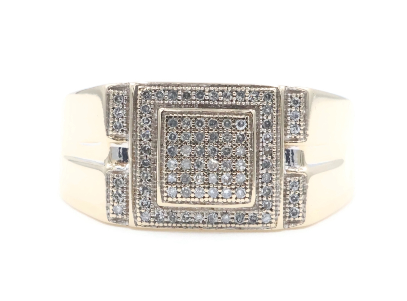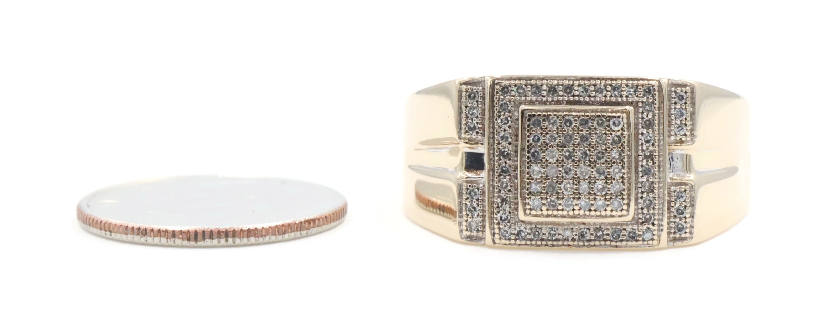 Men's 0.42 Ctw Round Single Cut Diamond 10KT Yellow Gold Square Cluster Ring CM | USA Pawn