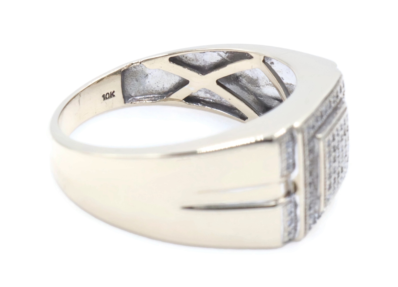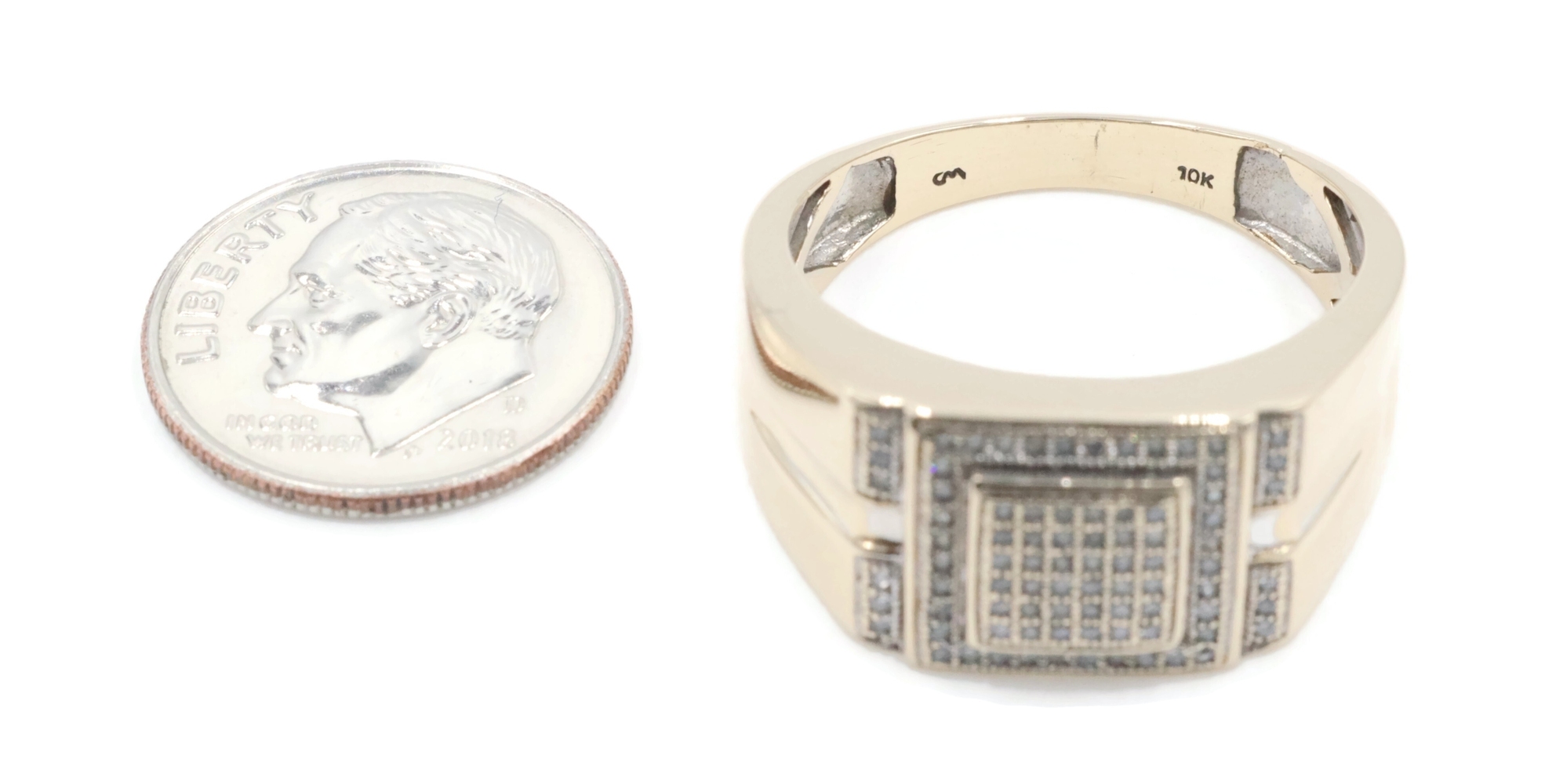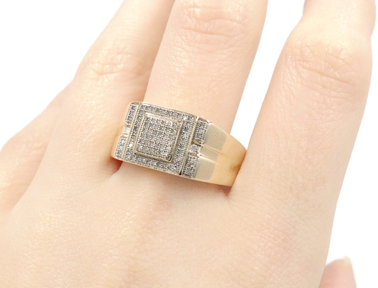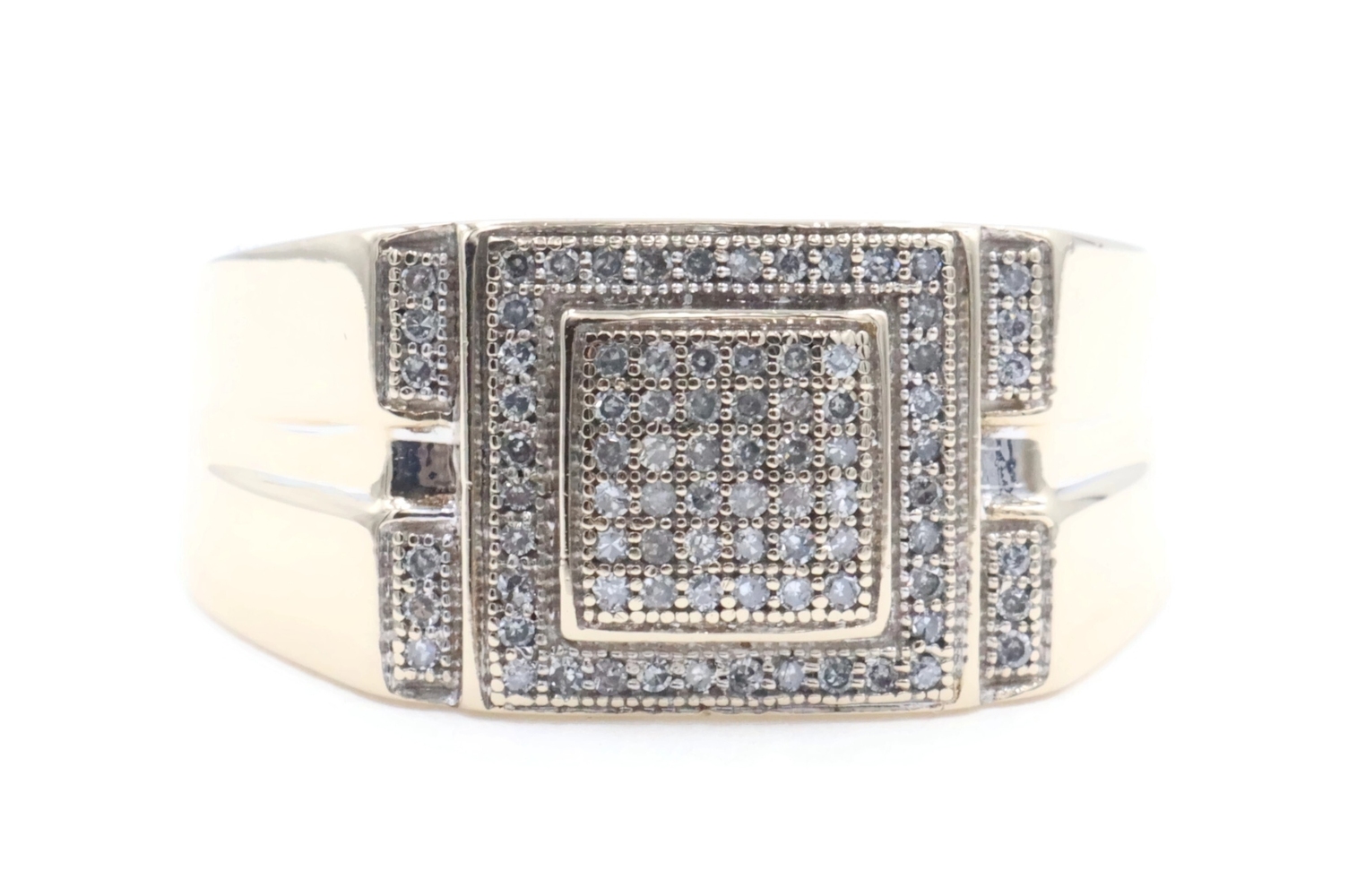 Men's 0.42 Ctw Round Single Cut Diamond 10KT Yellow Gold Square Cluster Ring CM | USA Pawn