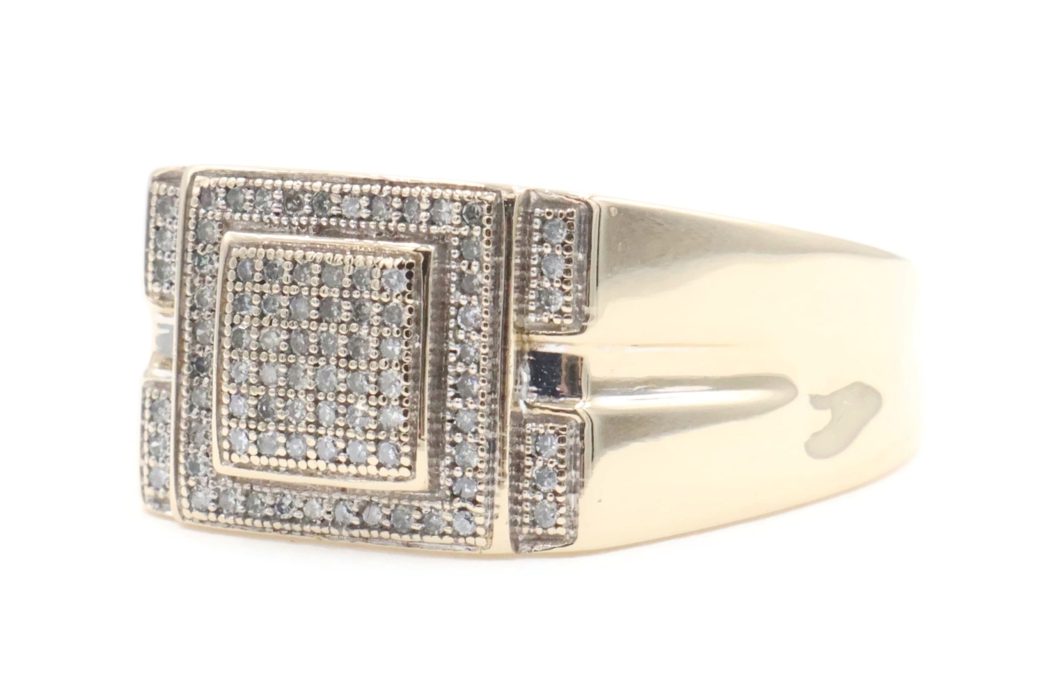 Men's 0.42 Ctw Round Single Cut Diamond 10KT Yellow Gold Square Cluster Ring CM. This ring is a size 10 1/2.