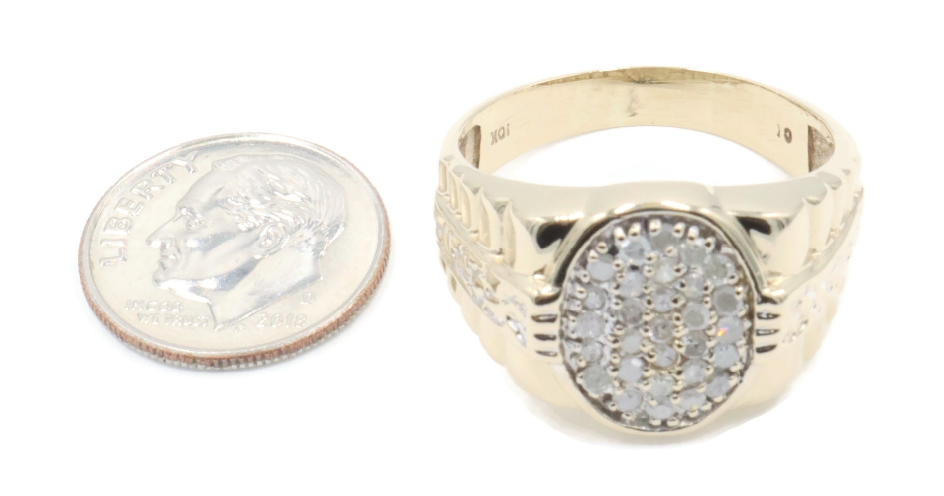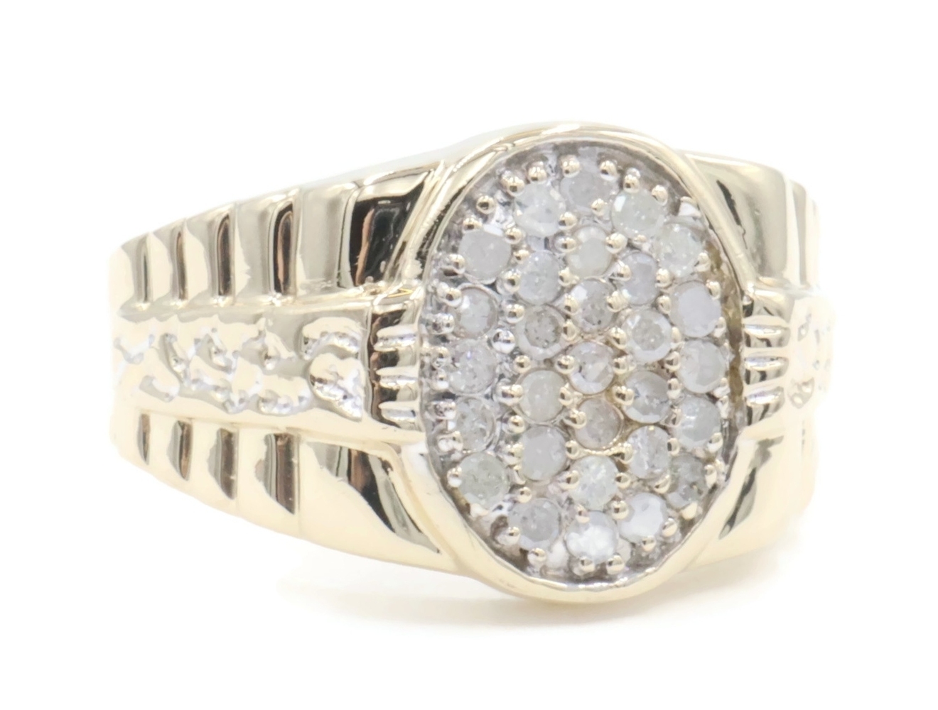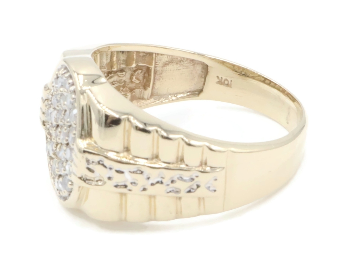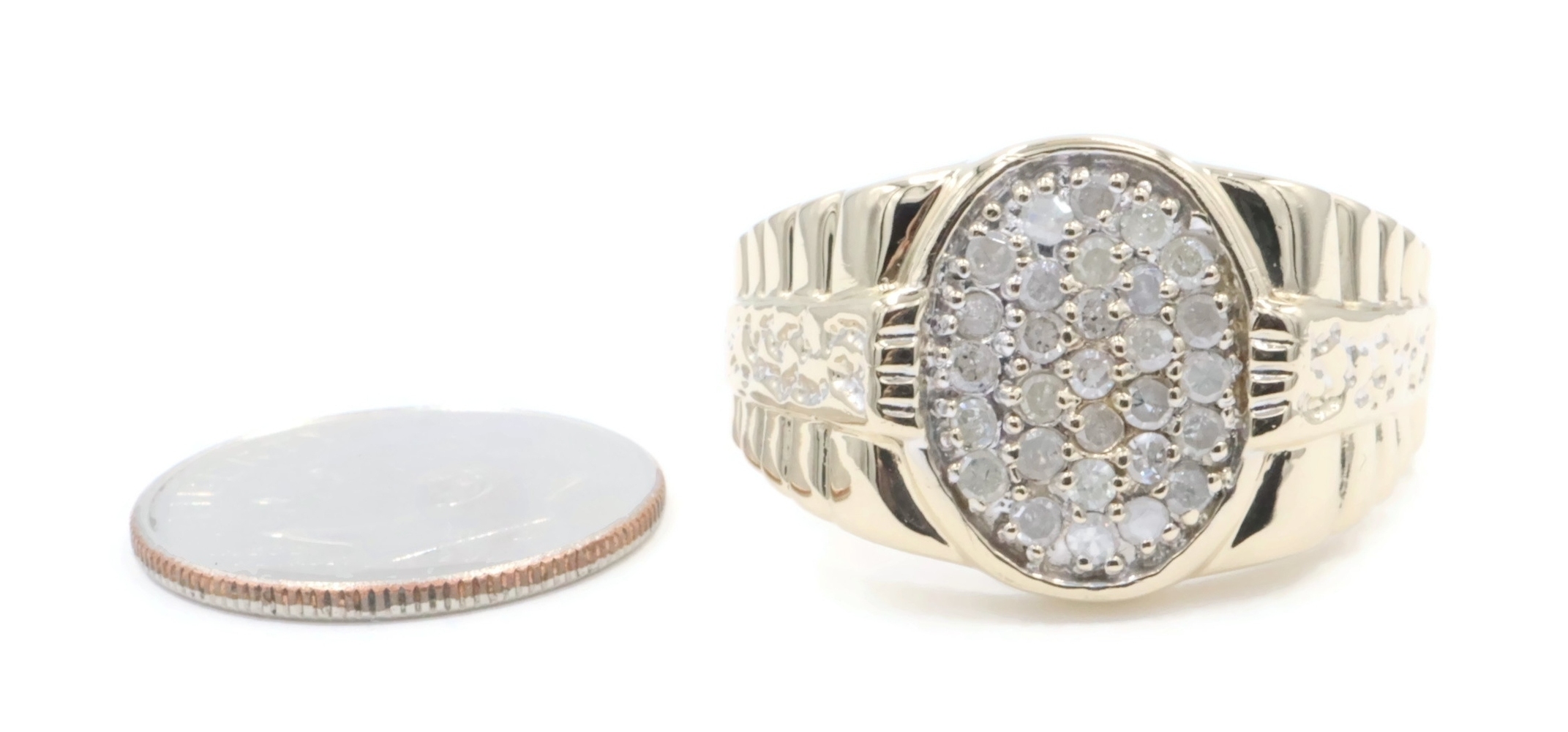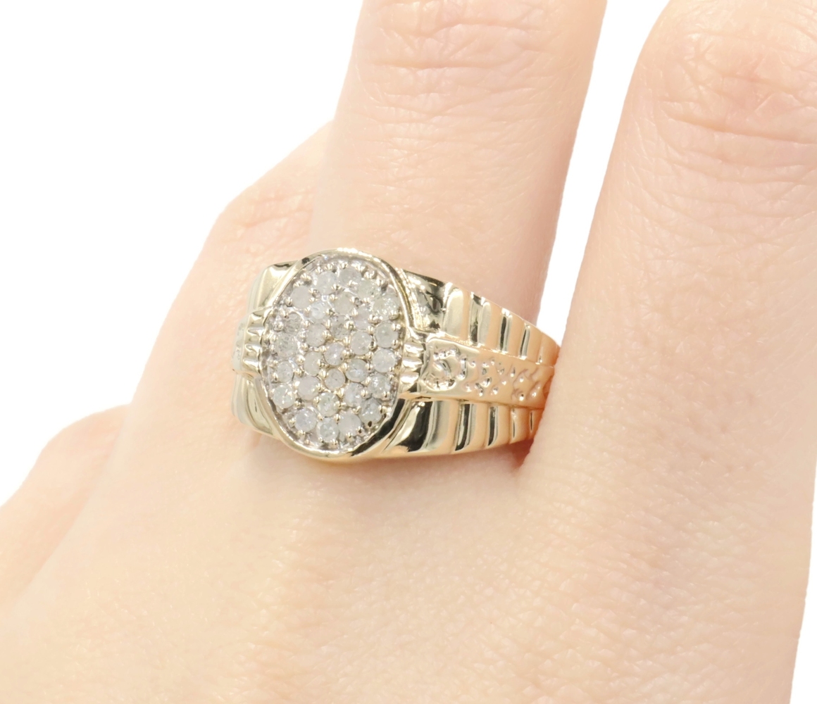 Men's 0.50 Ctw Round Diamond Oval Cluster 10KT Yellow Gold Watch Band Ring 5.31g | USA Pawn