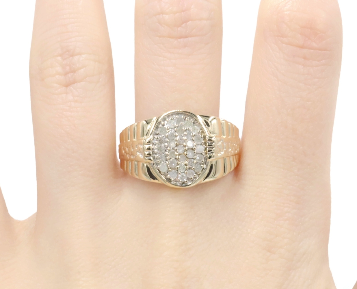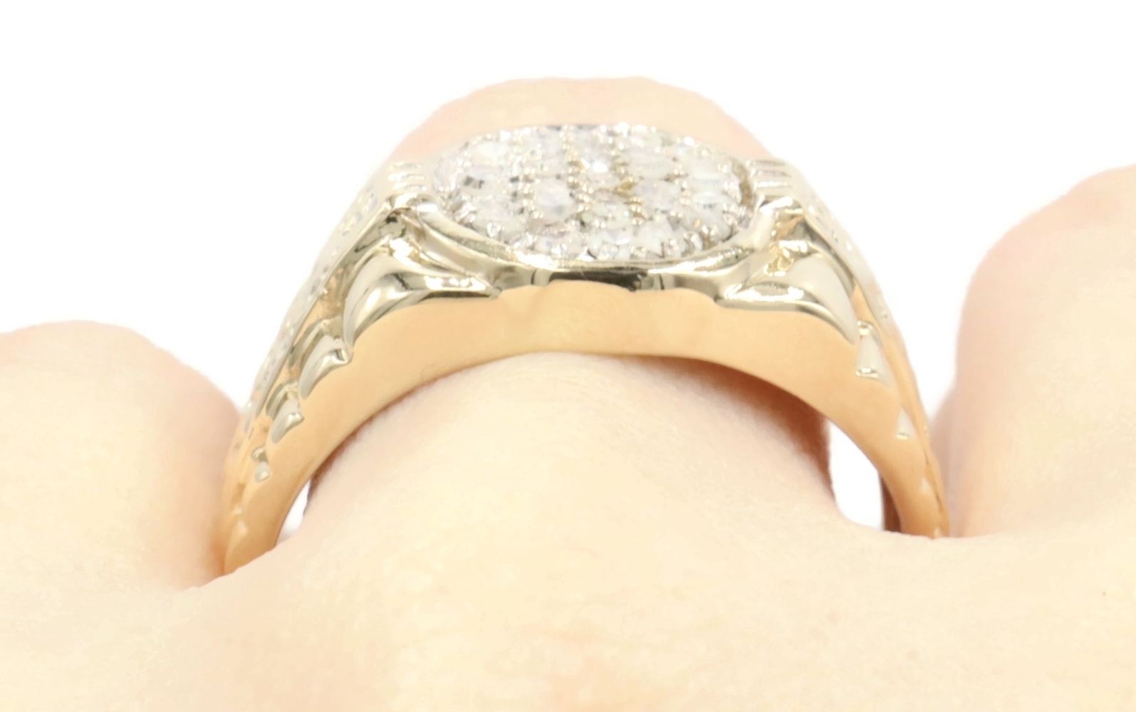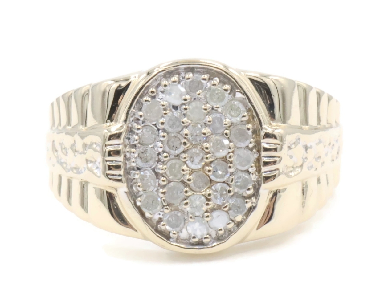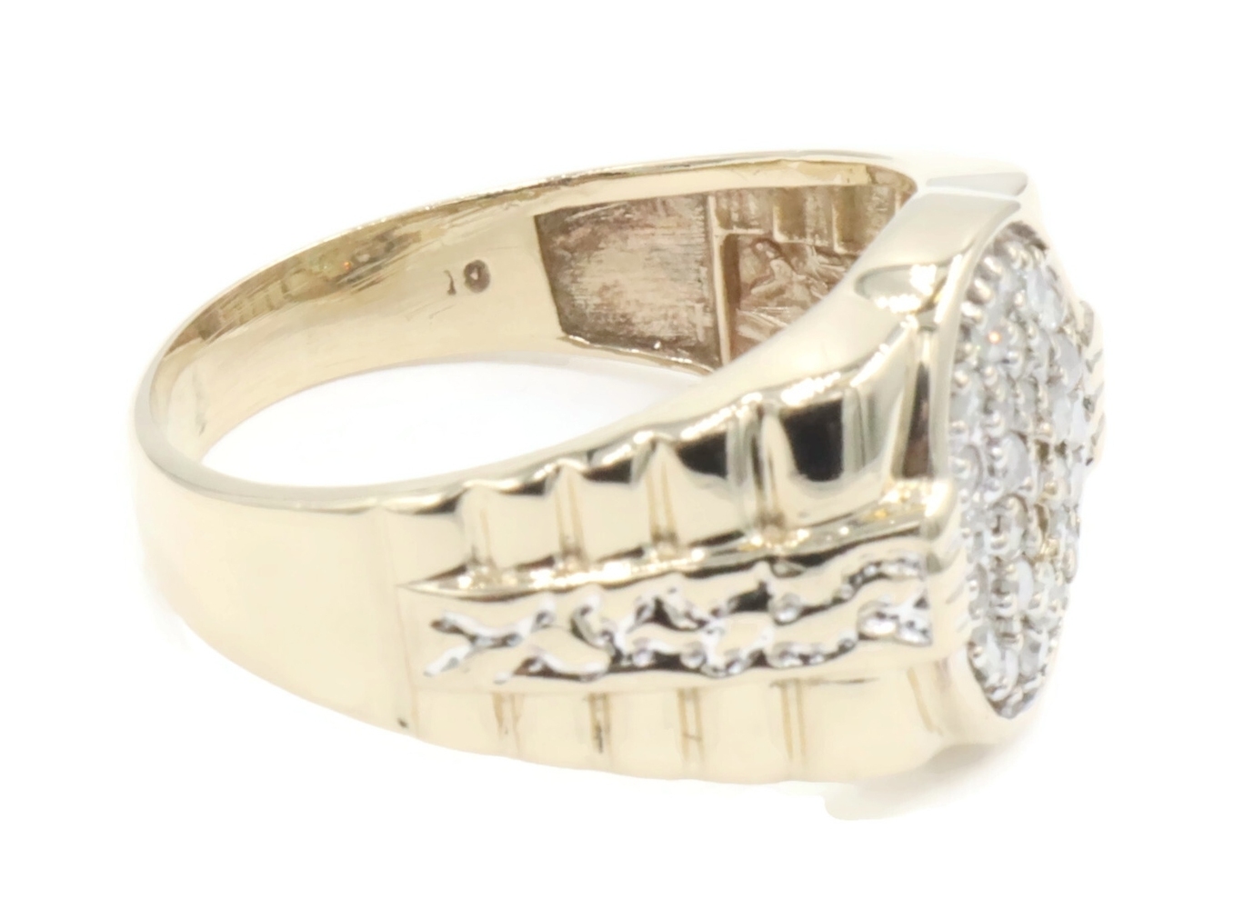 Men's 0.50 Ctw Round Diamond Oval Cluster 10KT Yellow Gold Watch Band Ring 5.31g | USA Pawn