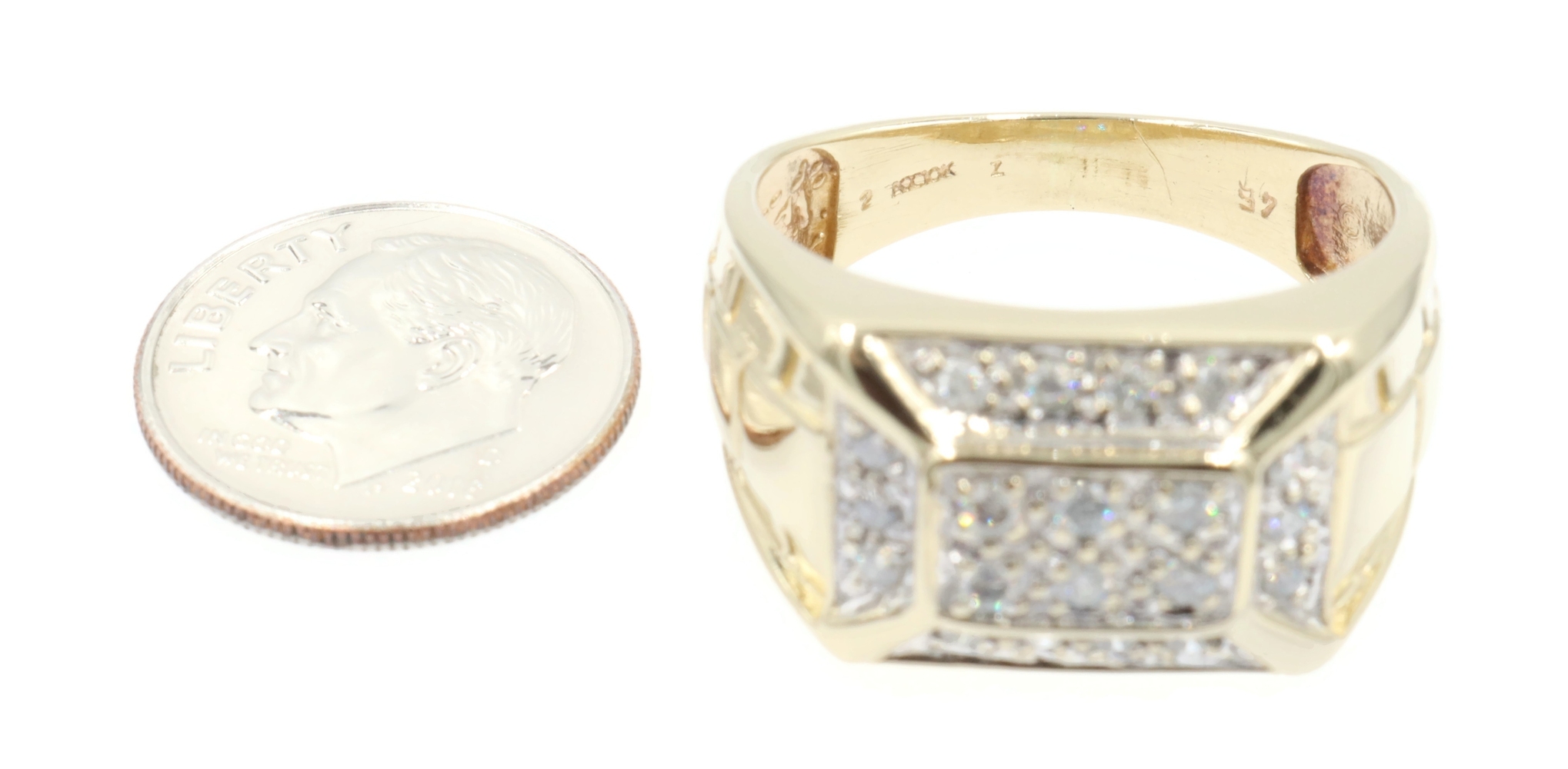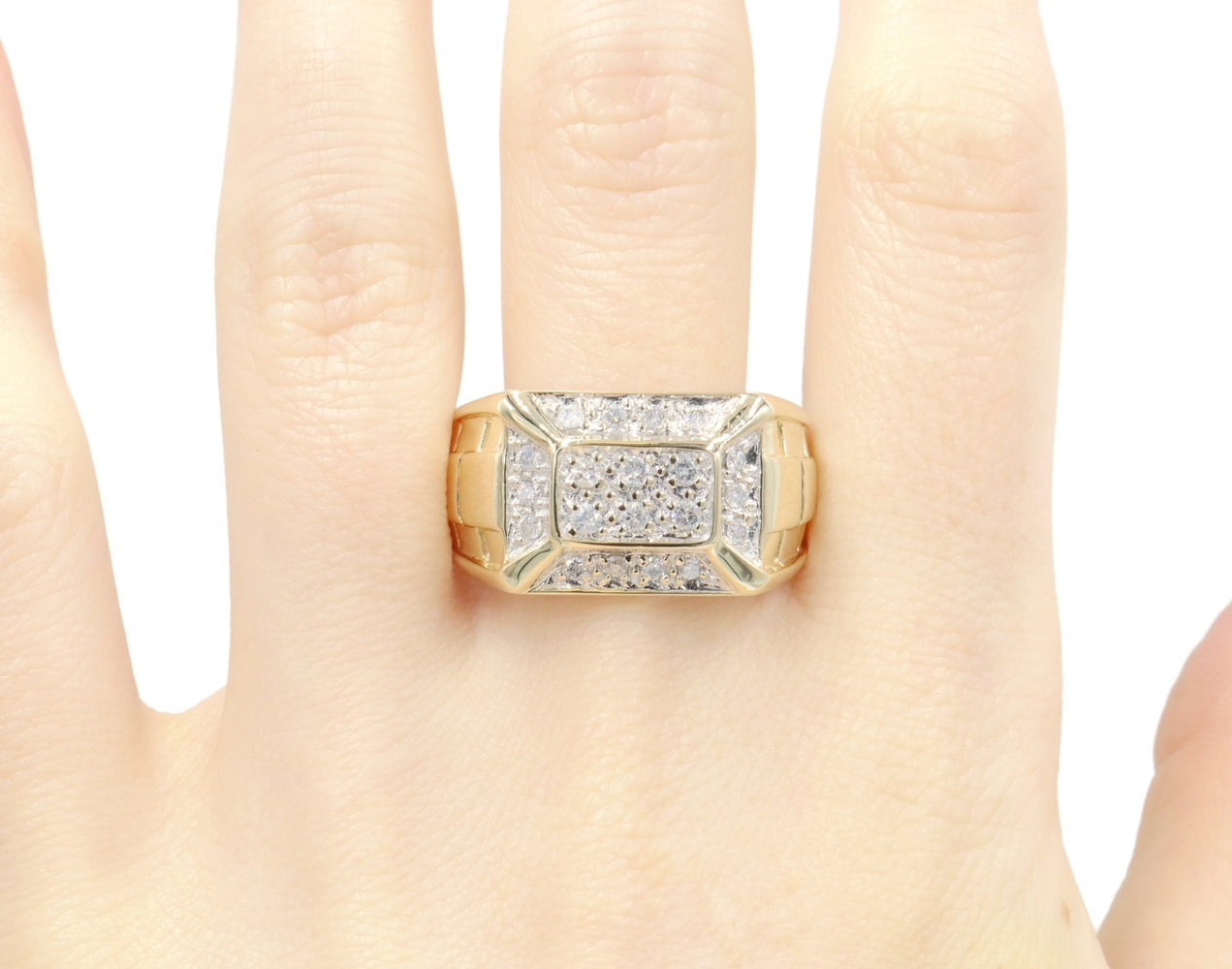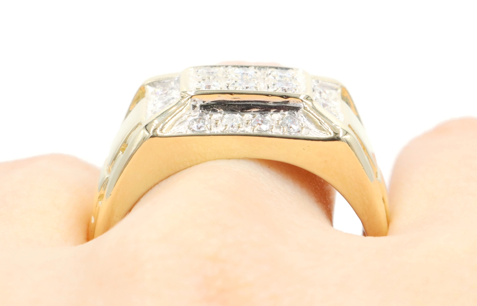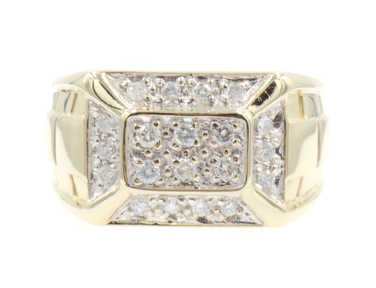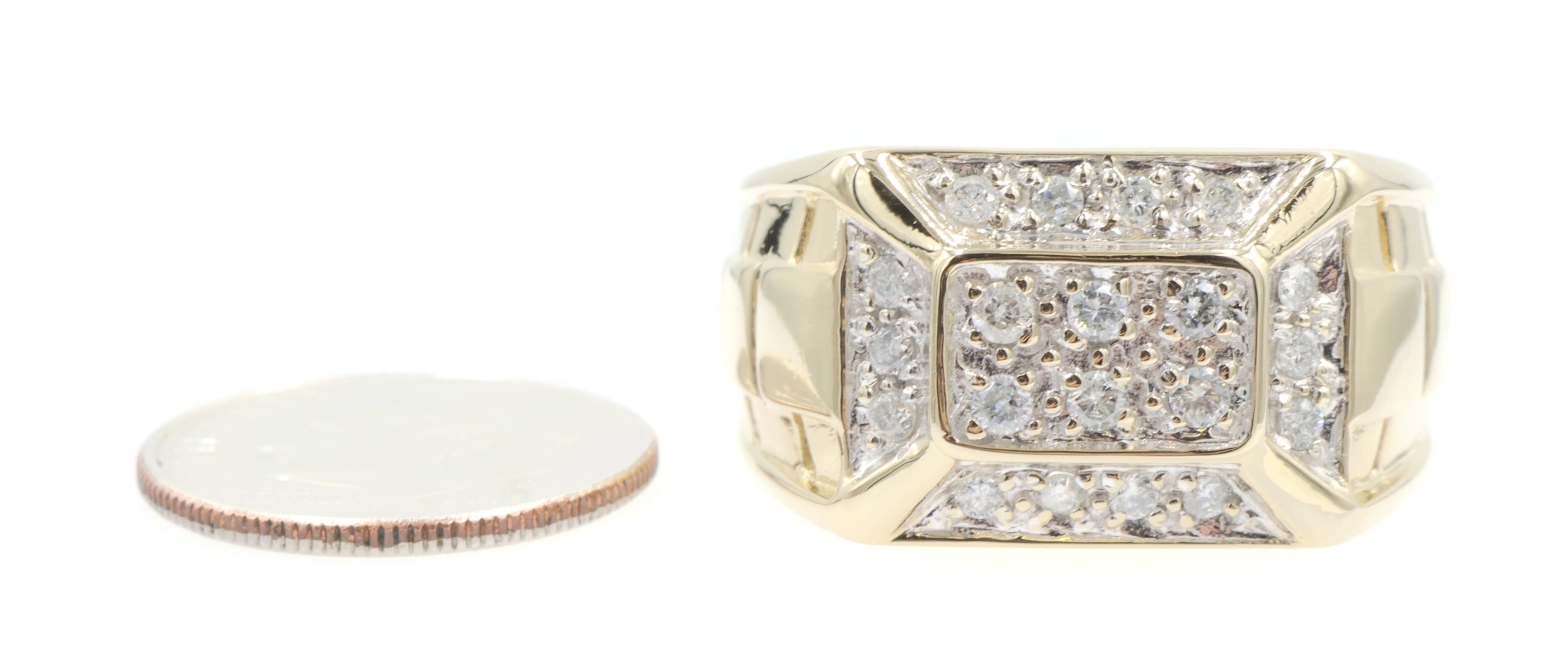 Men's 0.60 Ctw Round Diamond 10KT Yellow Gold Watch Band Cluster Statement Ring. This ring is a size 11.