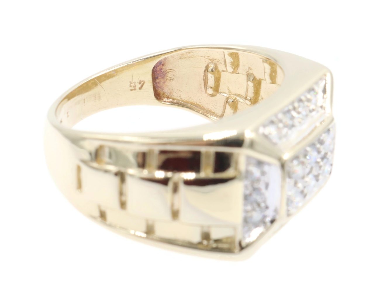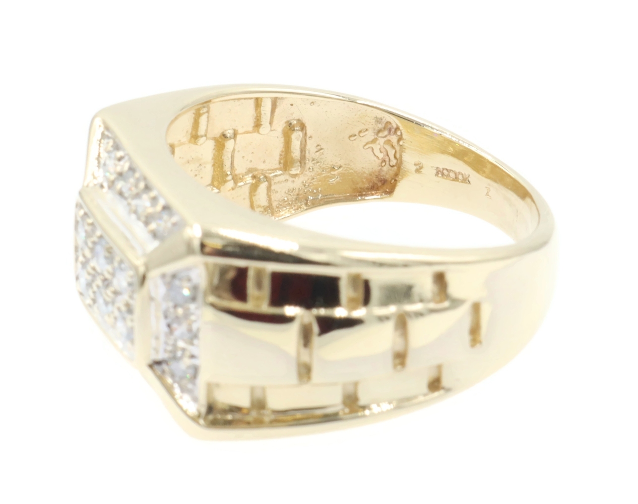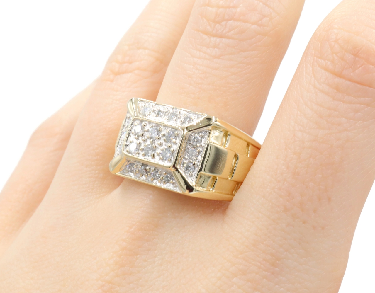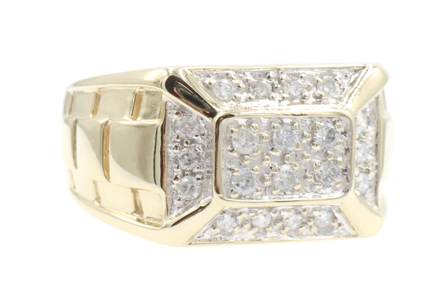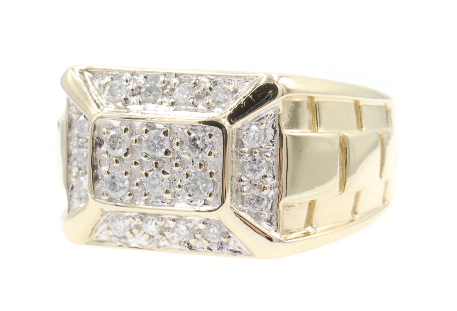 Men's 0.60 Ctw Round Diamond 10KT Yellow Gold Watch Band Cluster Statement Ring. This ring is a size 11.