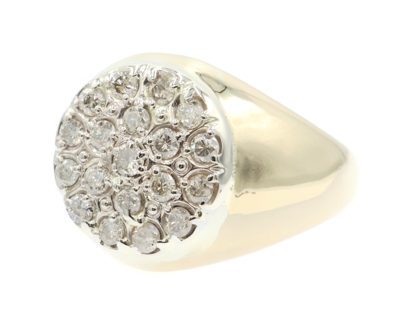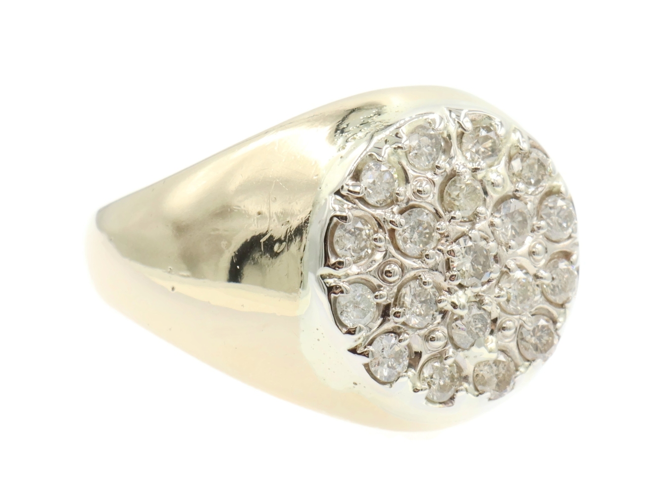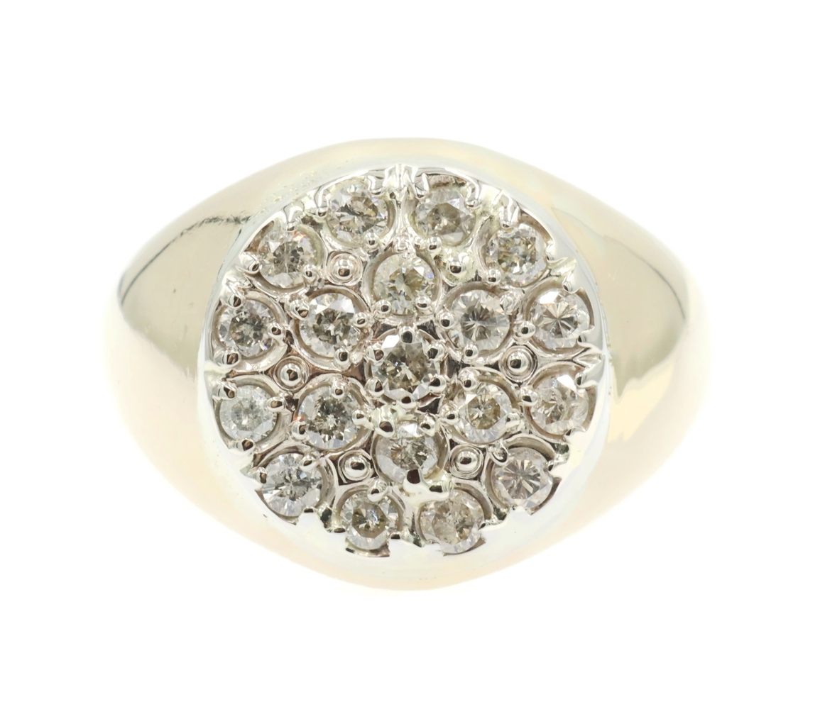Men's 0.95 Ctw Round Diamond Cluster 17.6mm 14KT Yellow Gold Statement Ring 12g. This ring is a size 12.