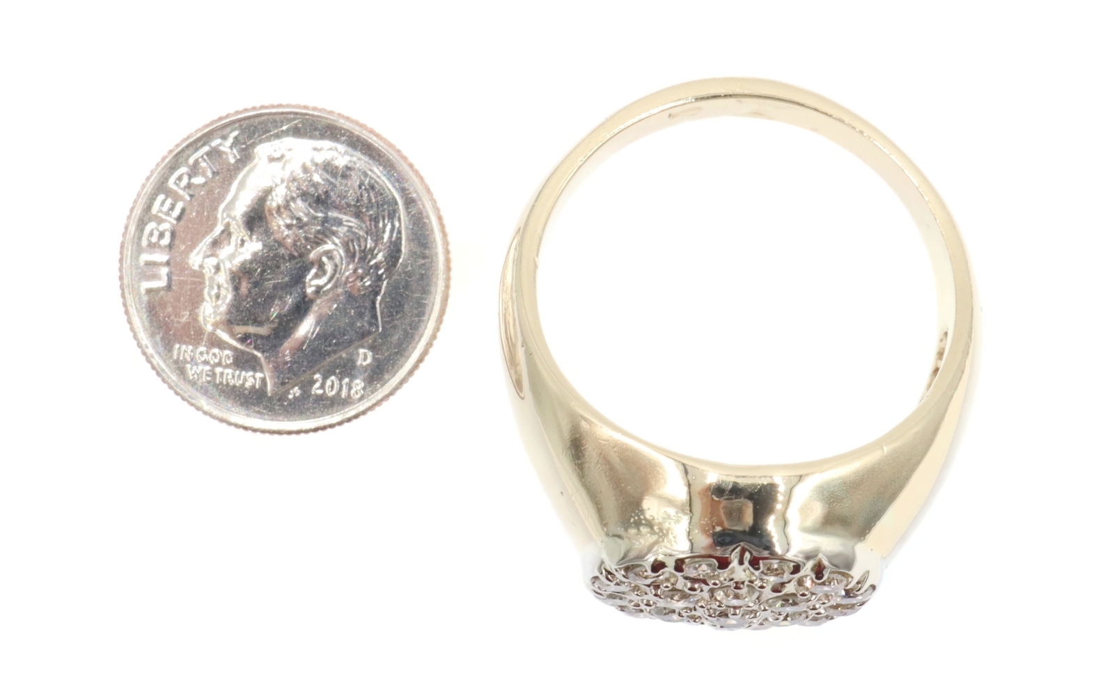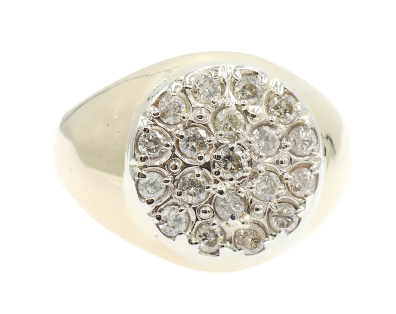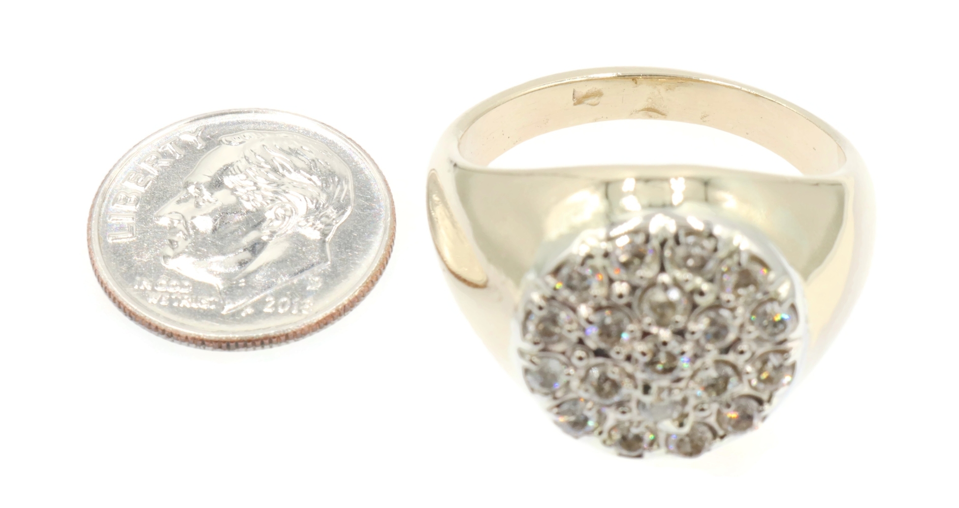 Men's 0.95 Ctw Round Diamond Cluster 17.6mm 14KT Yellow Gold Statement Ring 12g. This ring is a size 12.