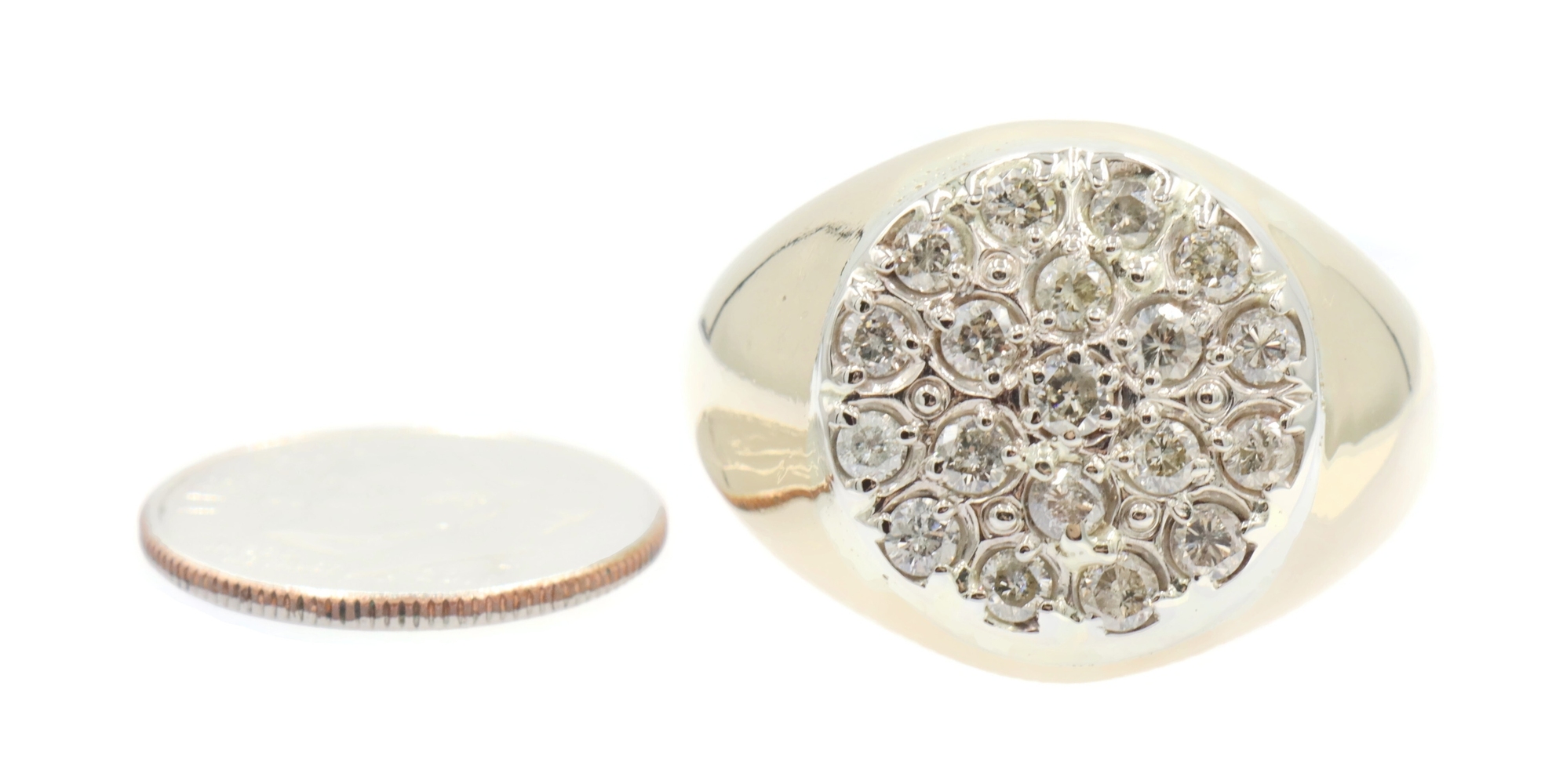 Men's 0.95 Ctw Round Diamond Cluster 17.6mm 14KT Yellow Gold Statement Ring 12g | USA Pawn