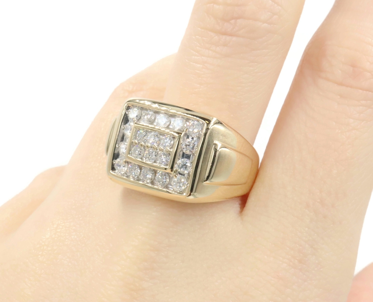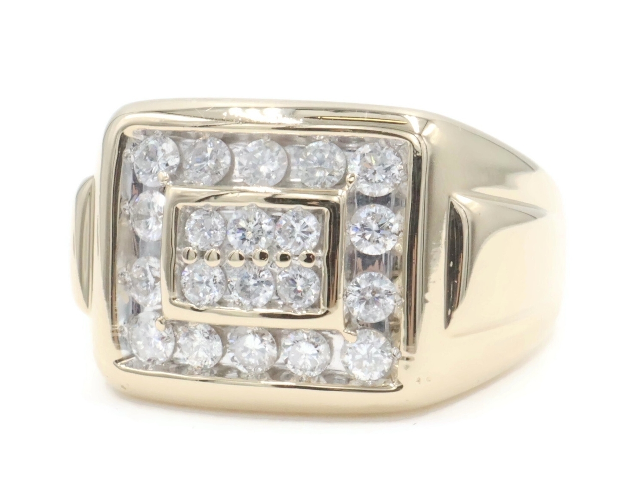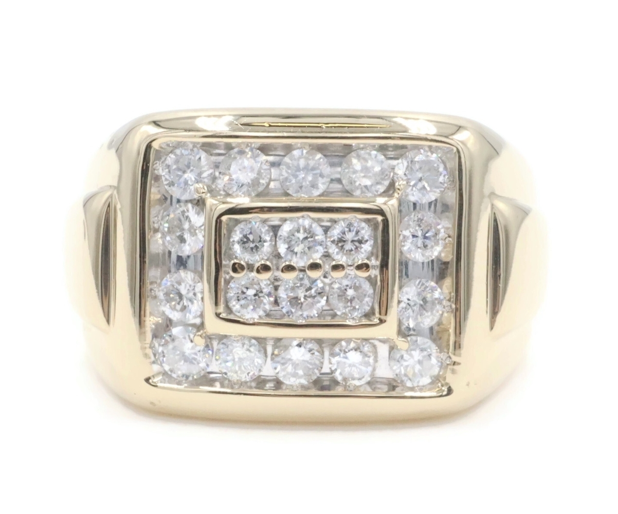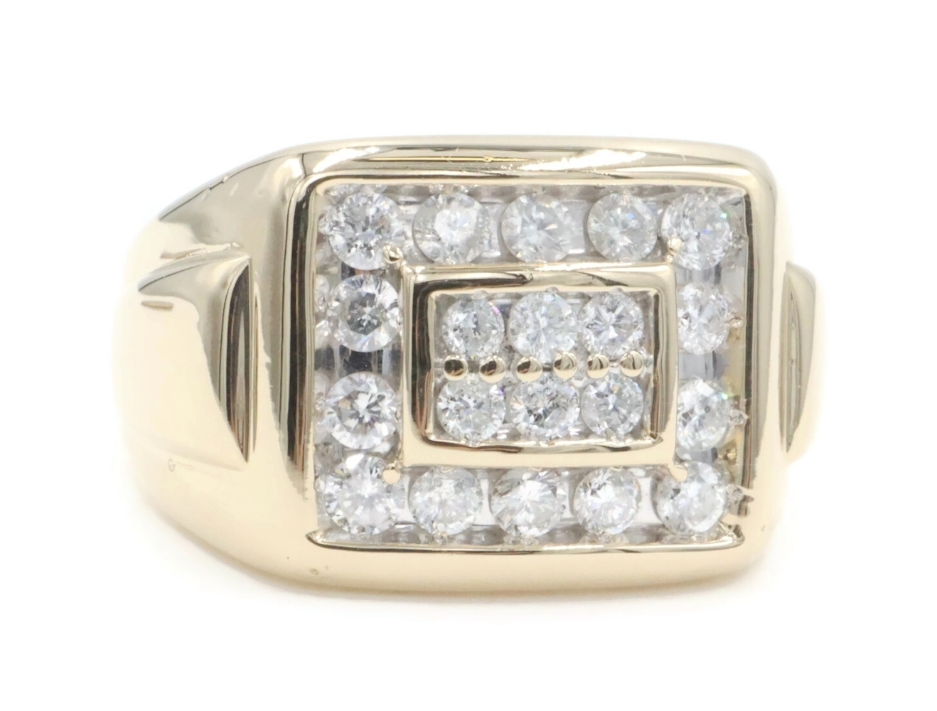 Men's 1.25 Ctw Round Diamond 14KT Yellow Gold Rectangular Cluster Ring NDI 12.3g | USA Pawn