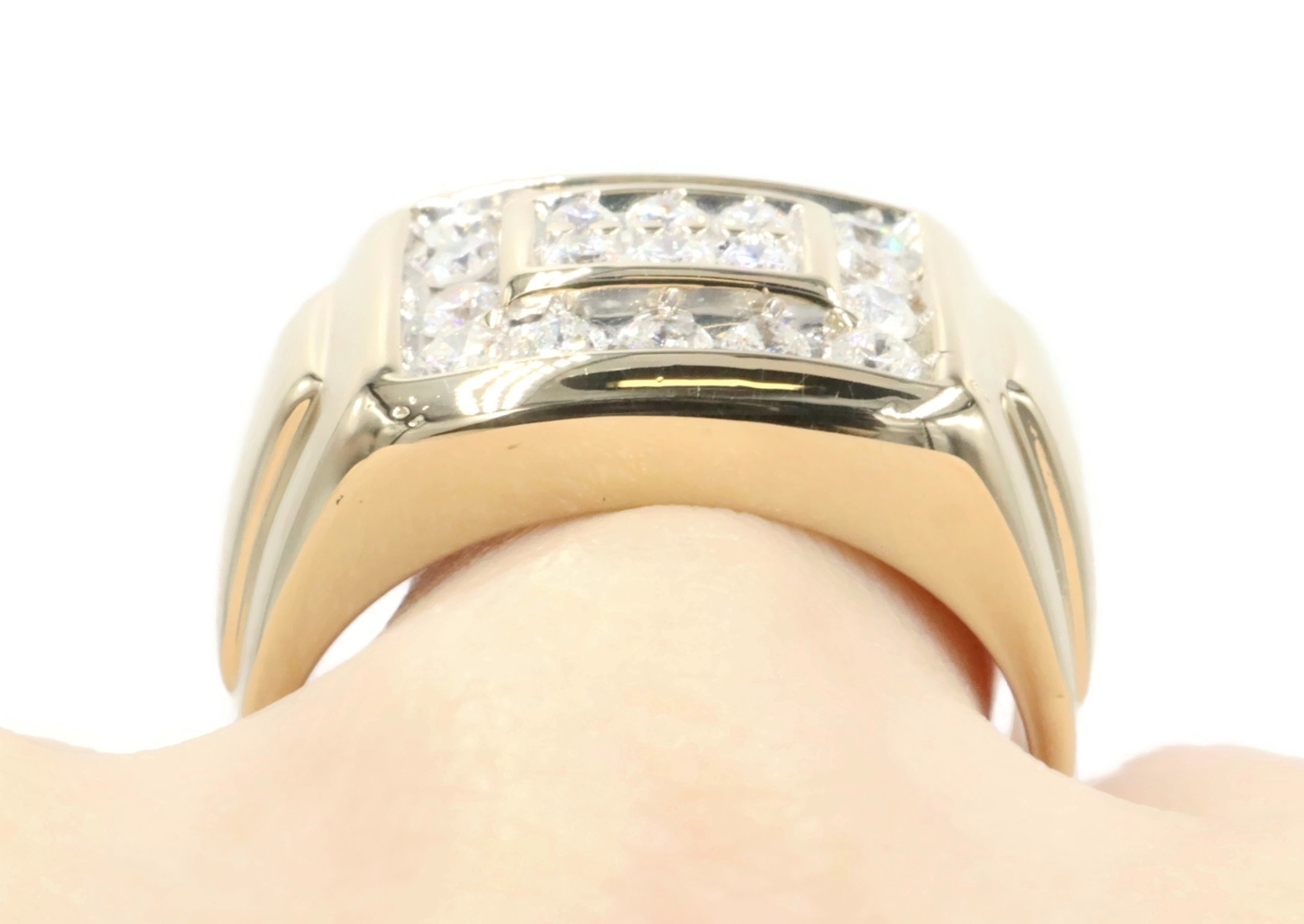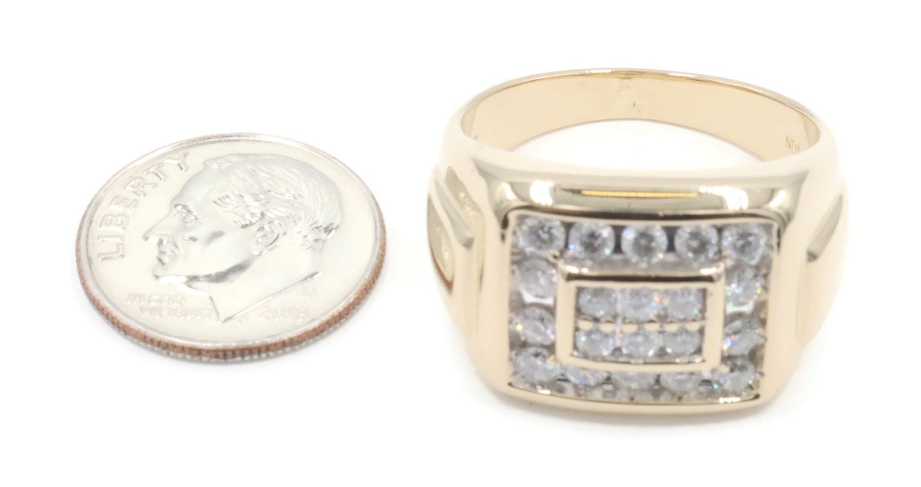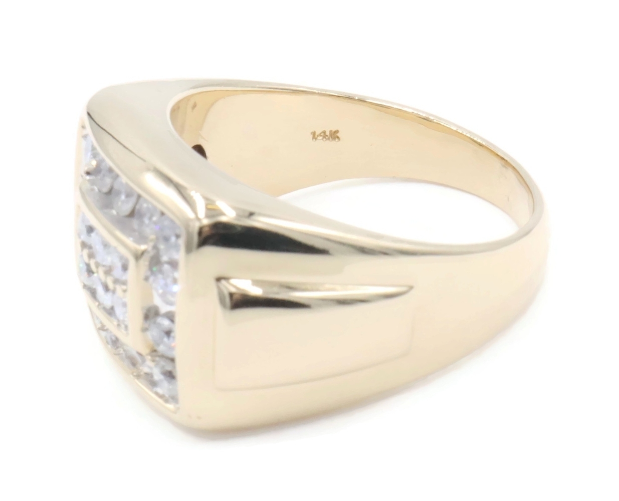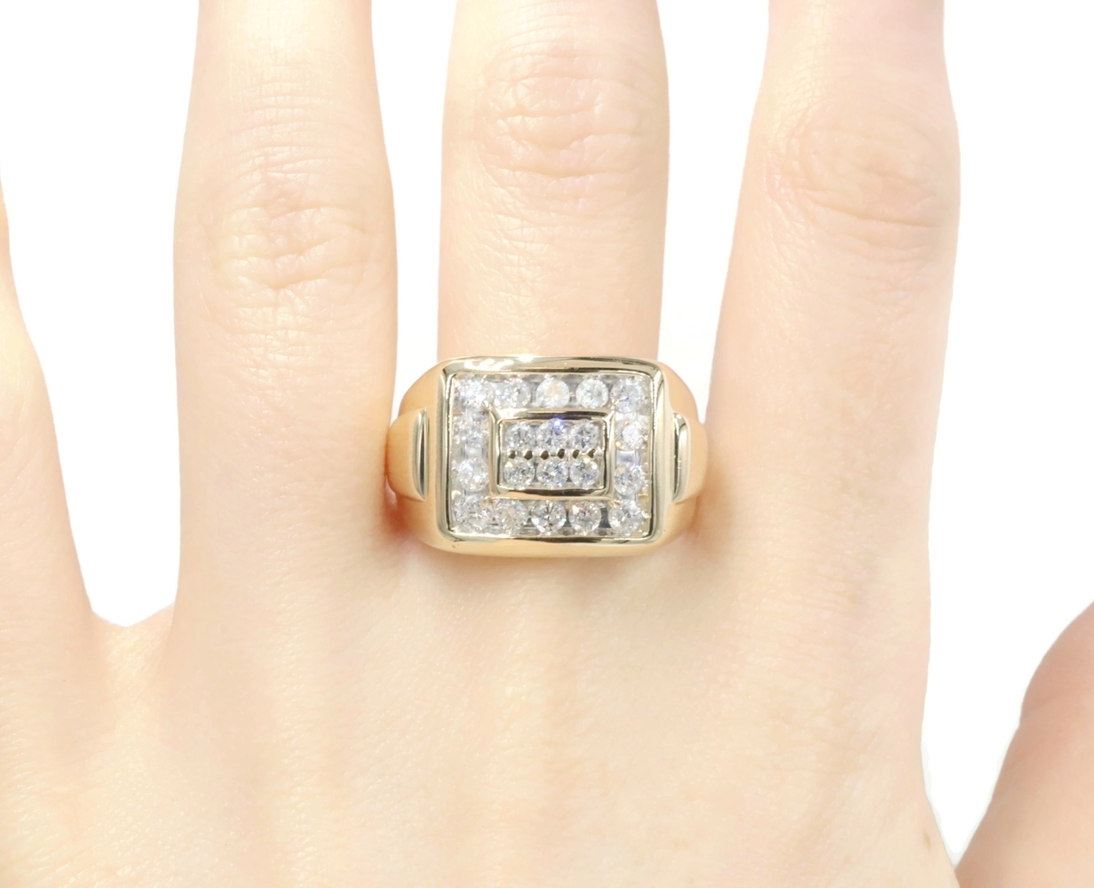Men's 1.25 Ctw Round Diamond 14KT Yellow Gold Rectangular Cluster Ring NDI 12.3g | USA Pawn