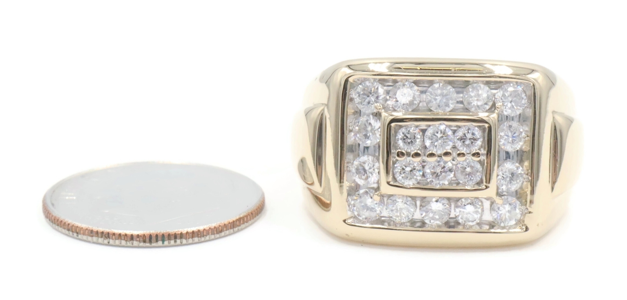 Men's 1.25 Ctw Round Diamond 14KT Yellow Gold Rectangular Cluster Ring NDI 12.3g. This ring is a size 10.