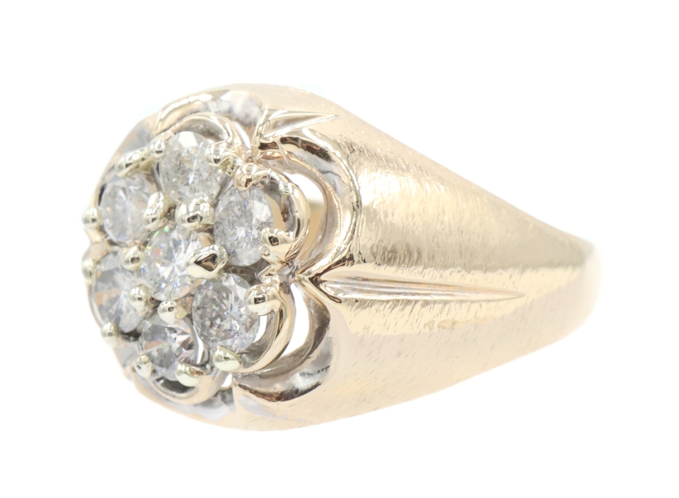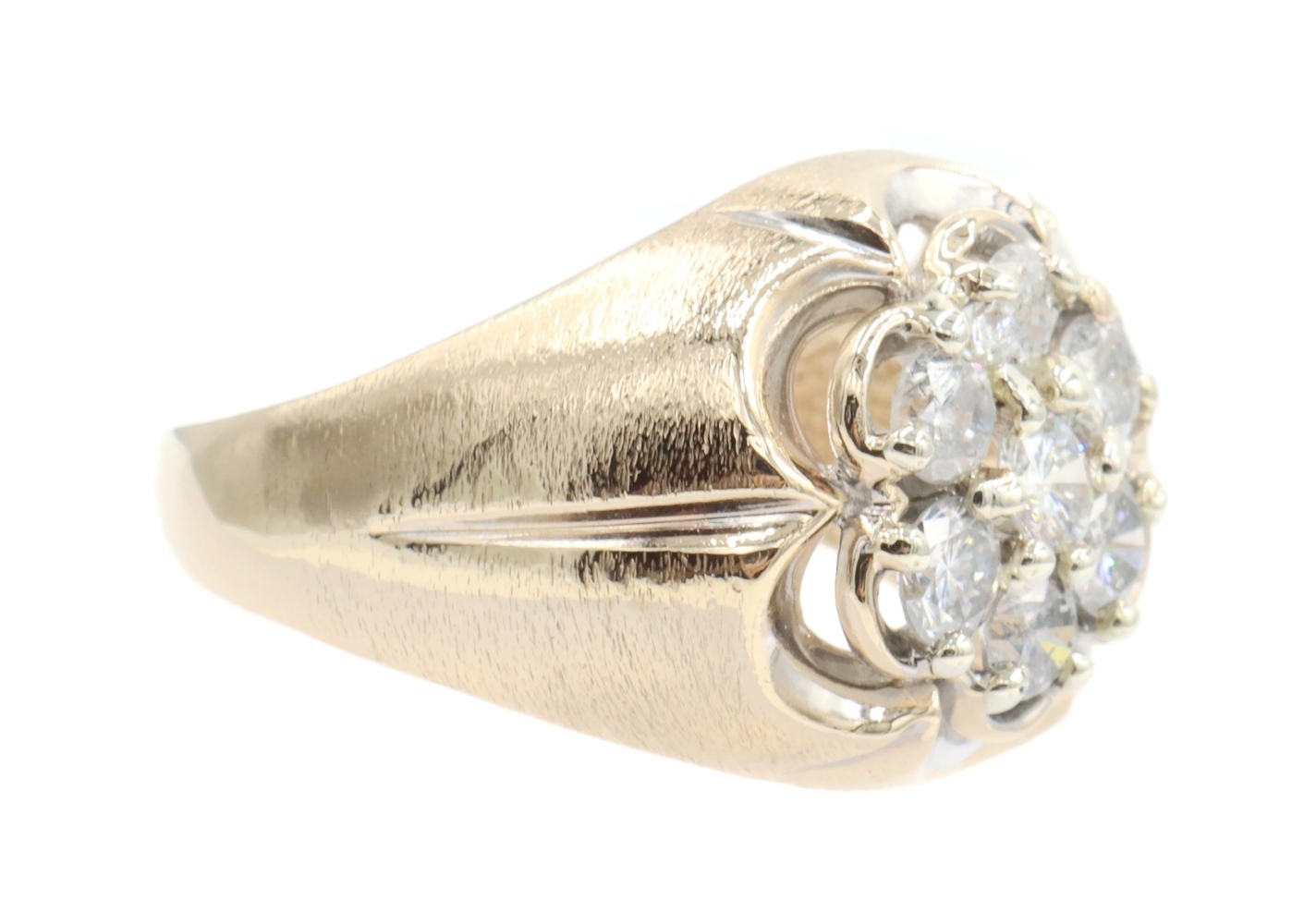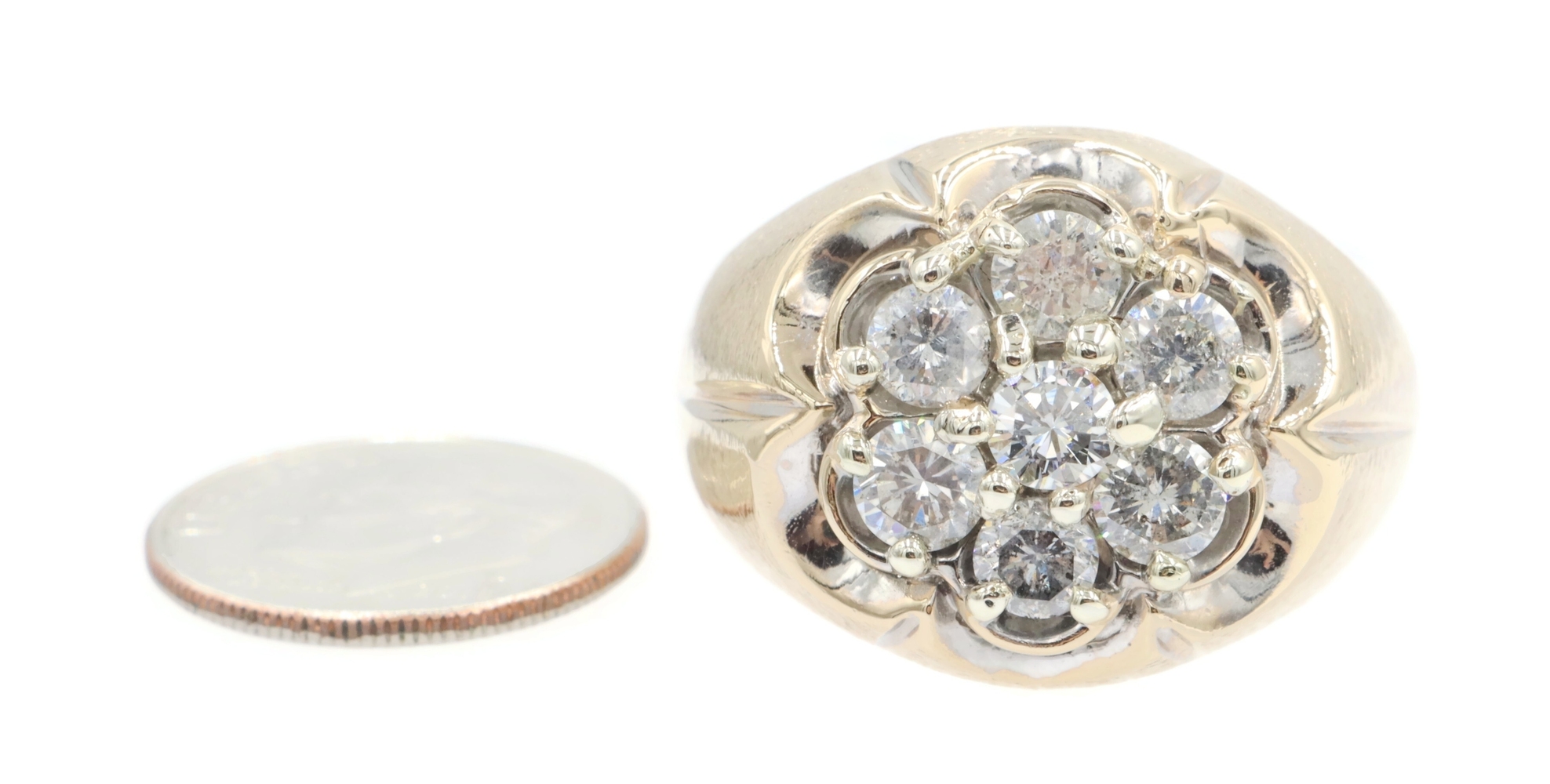 Men's 1.75 Ctw Round Diamond 10KT Yellow Gold Textured Kentucky Cluster Ring 11g. This ring is a size 13.