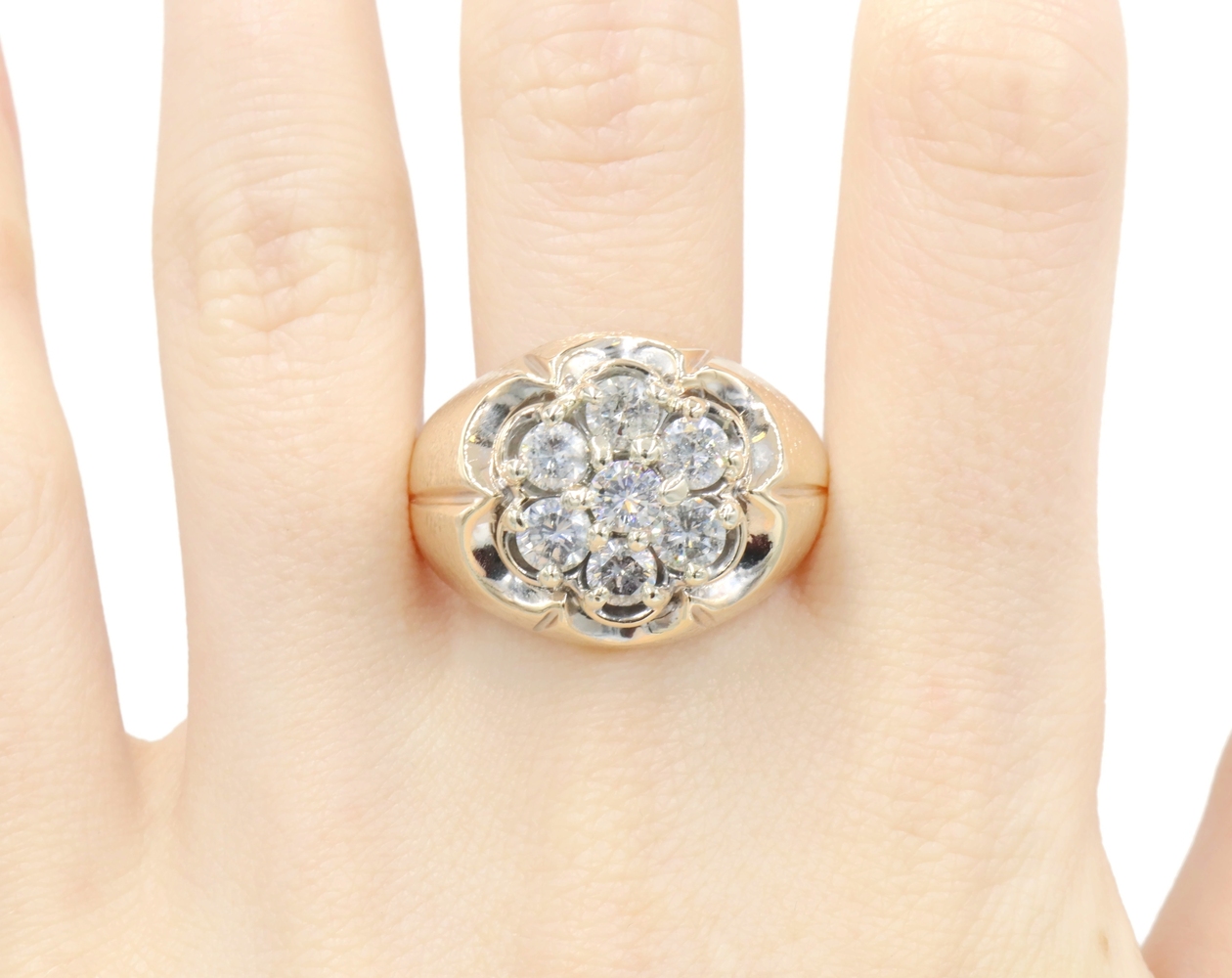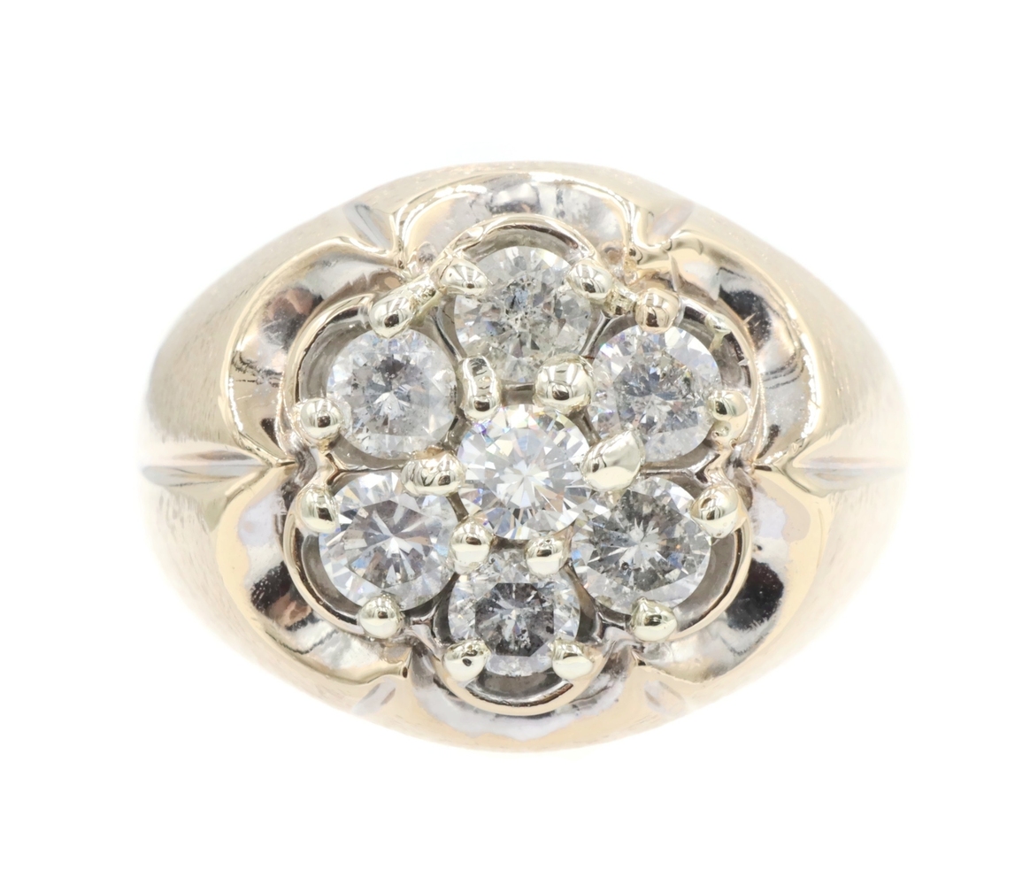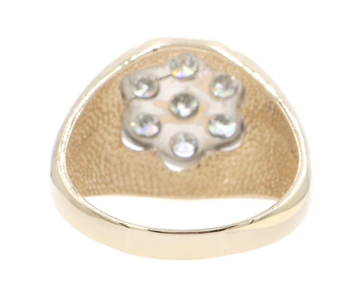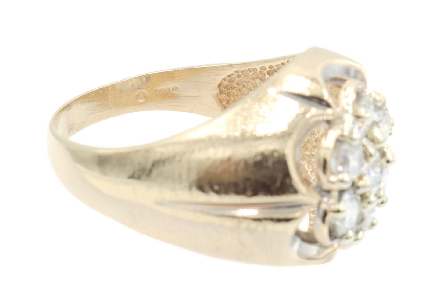 Men's 1.75 Ctw Round Diamond 10KT Yellow Gold Textured Kentucky Cluster Ring 11g. This ring is a size 13.