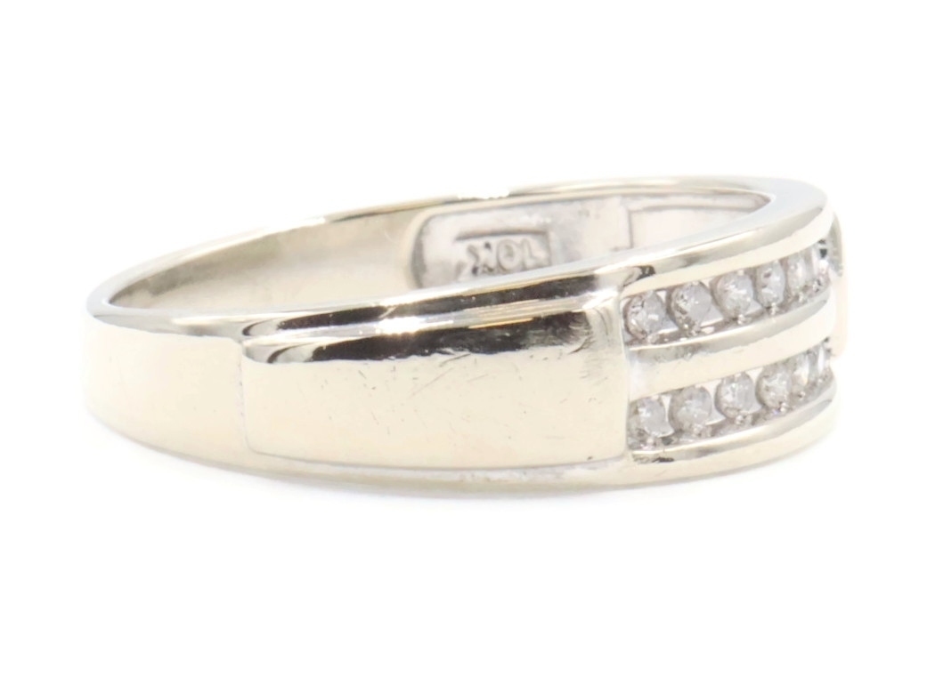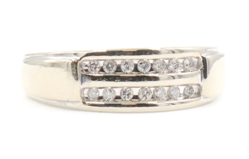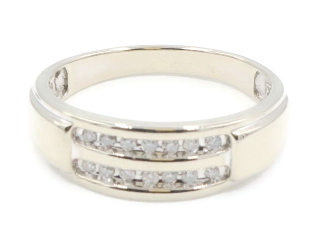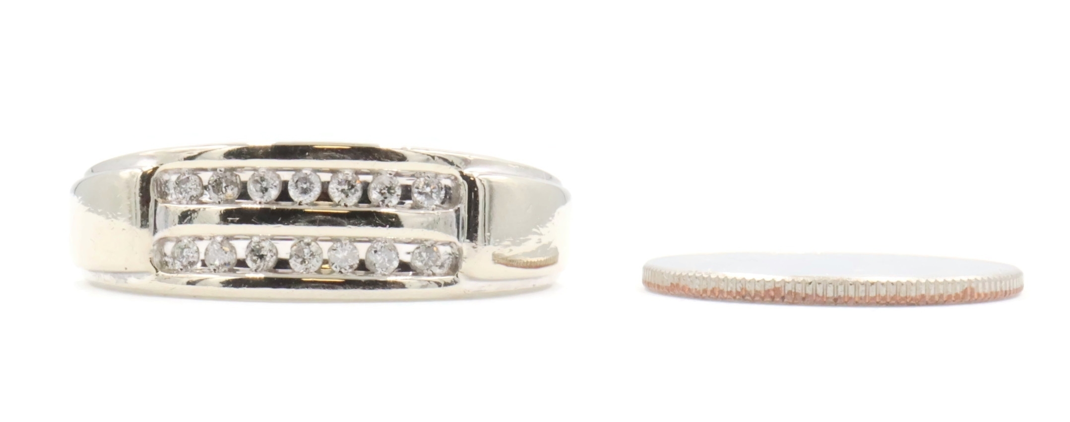 Men's 10KT White Gold Two Row 0.16 ctw Round Diamond 7.3mm Wide Estate Band Ring | USA Pawn