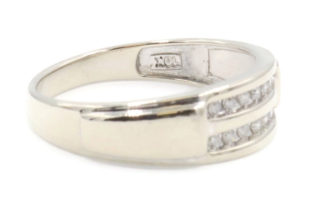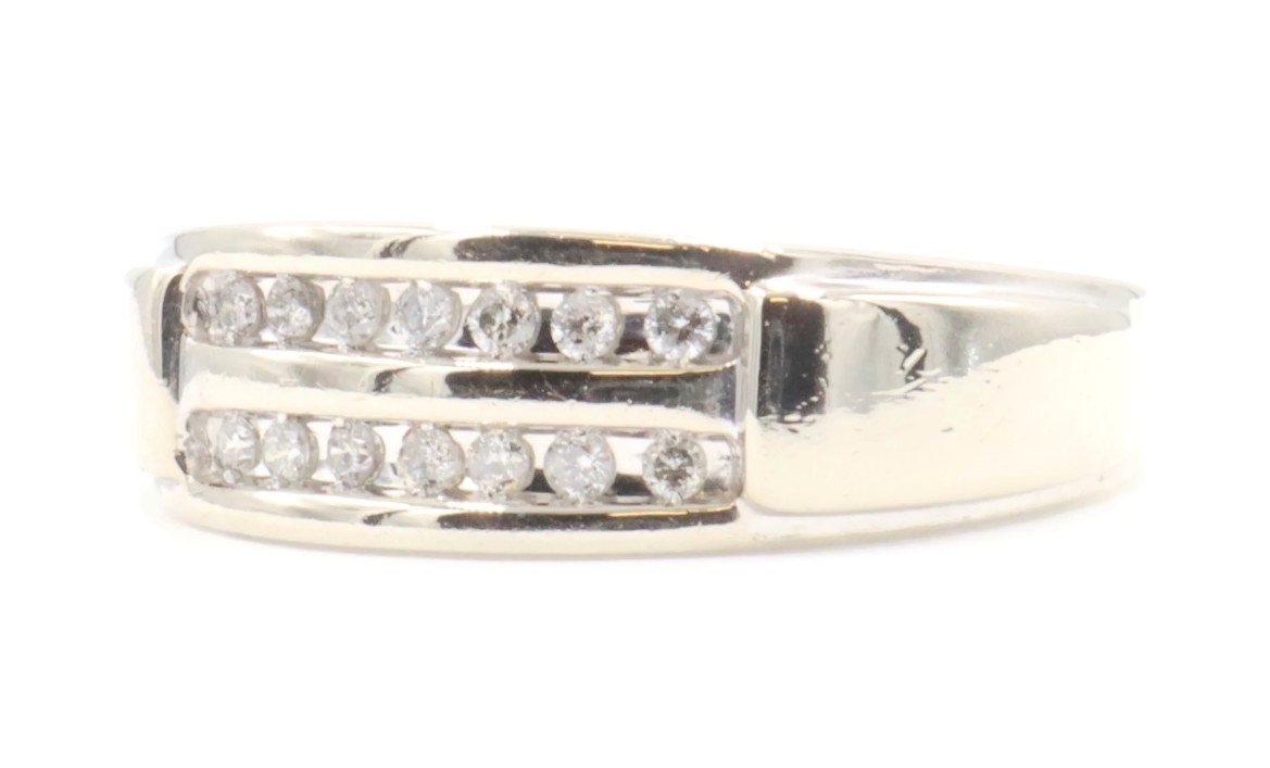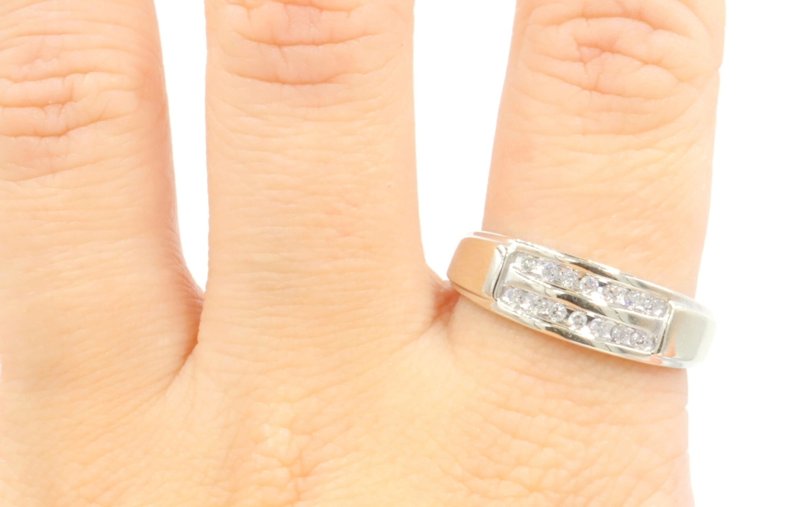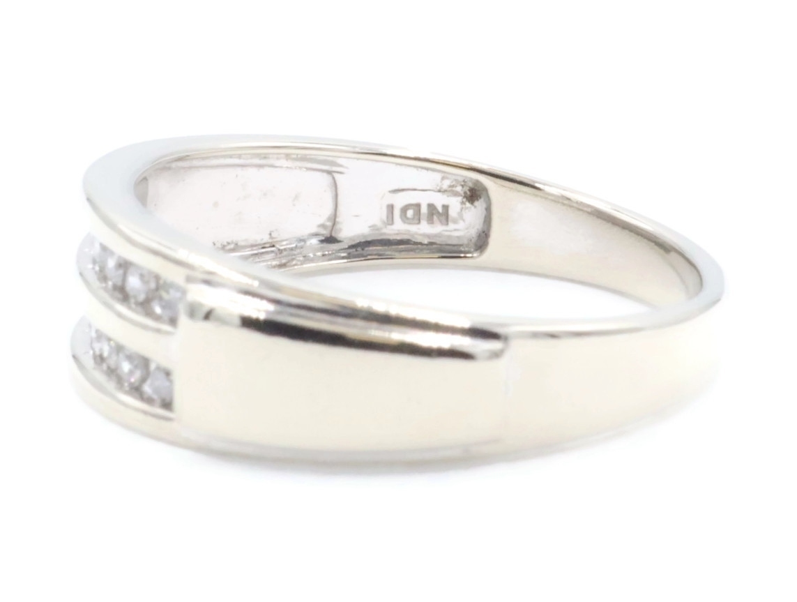Men's 10KT White Gold Two Row 0.16 ctw Round Diamond 7.3mm Wide Estate Band Ring | USA Pawn