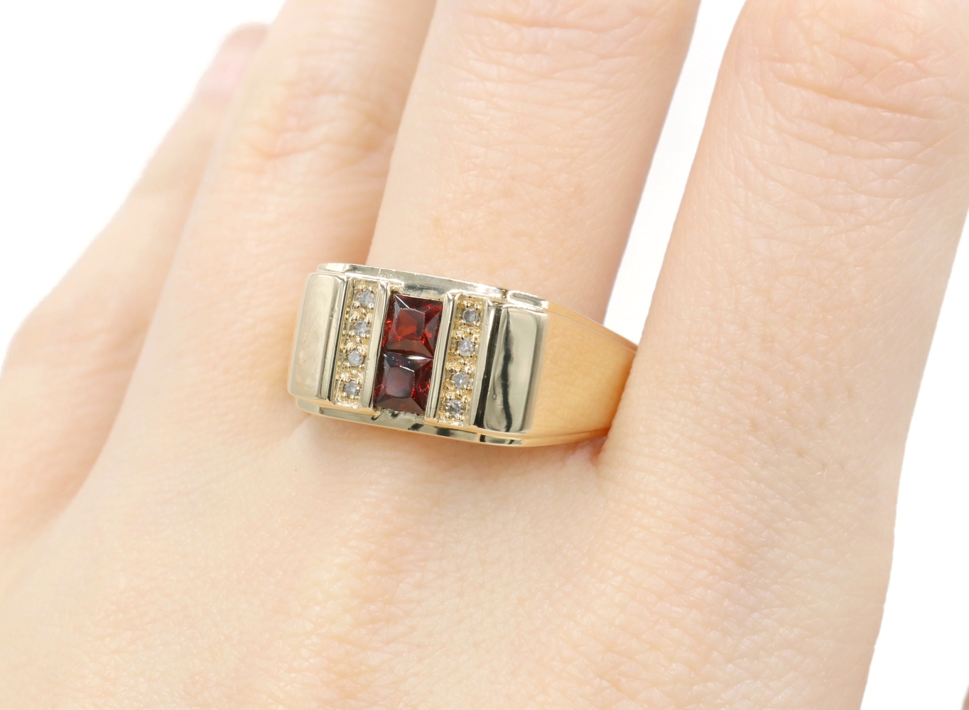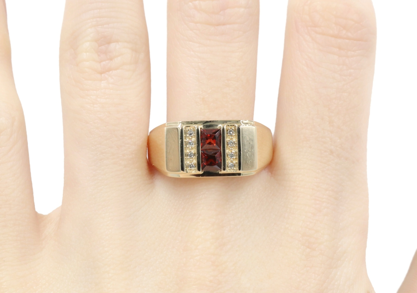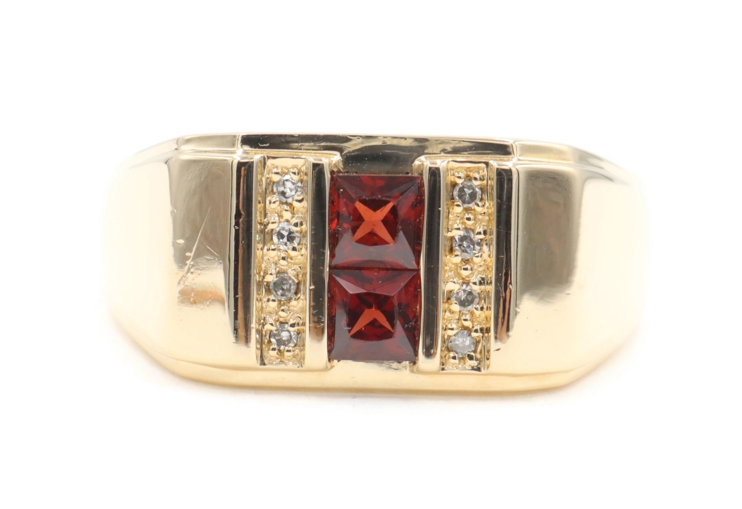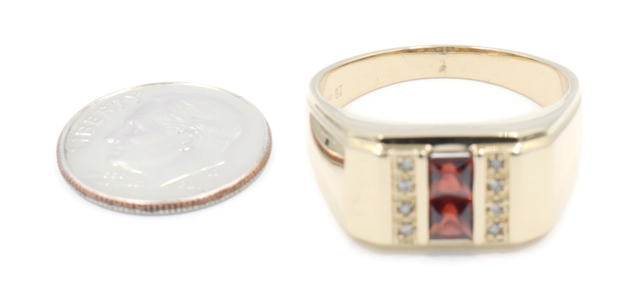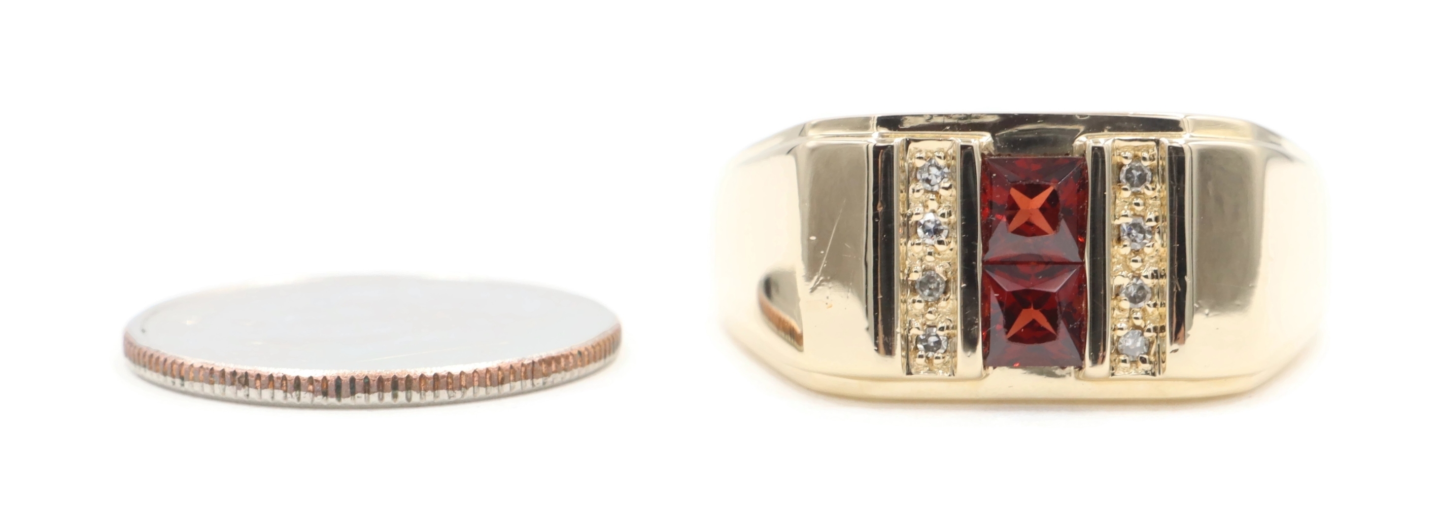 Men's 10KT Yellow Gold 0.36 Ctw Princess Cut Garnet & Round Diamond Ring 6.30g | USA Pawn