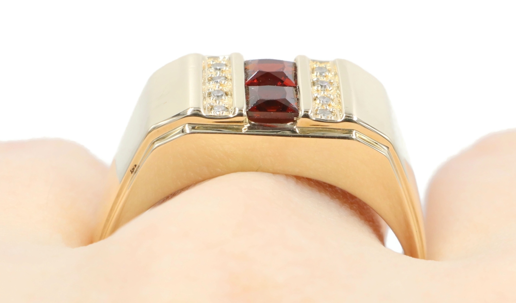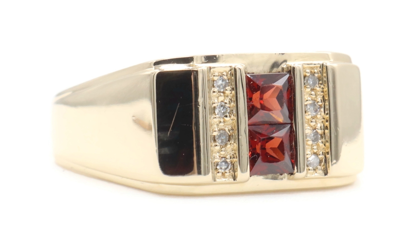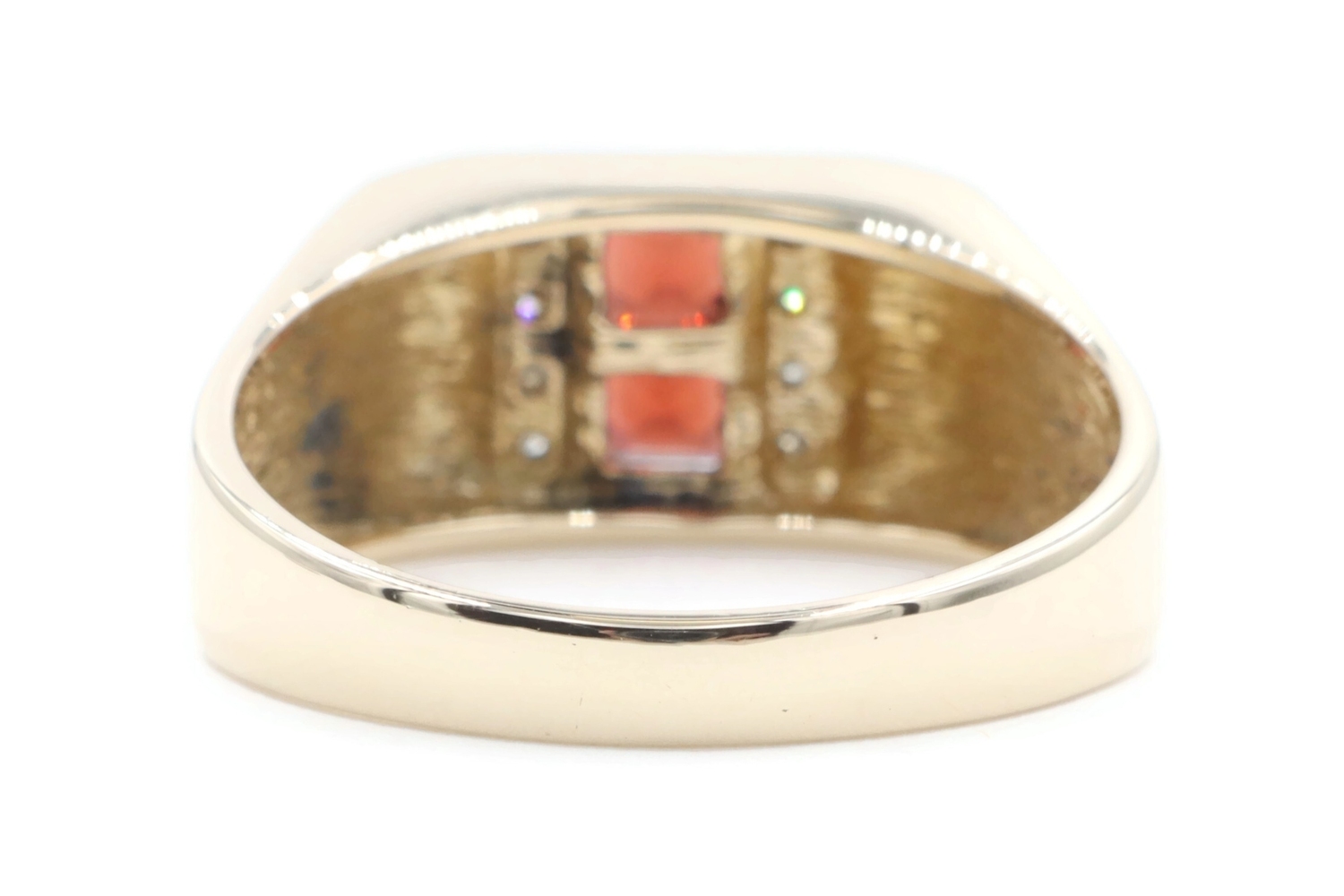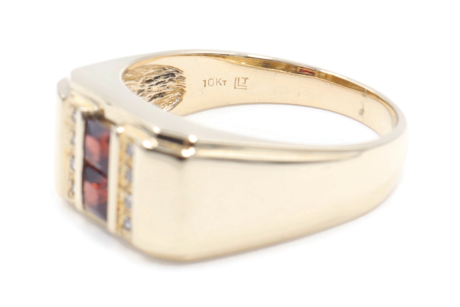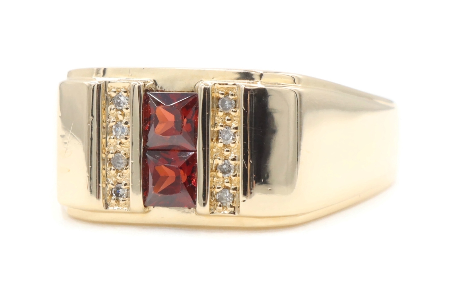 Men's 10KT Yellow Gold 0.36 Ctw Princess Cut Garnet & Round Diamond Ring 6.30g | USA Pawn