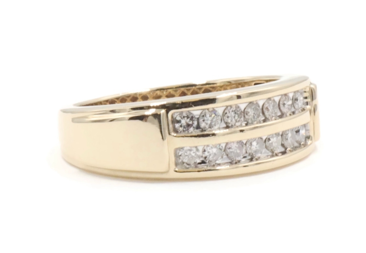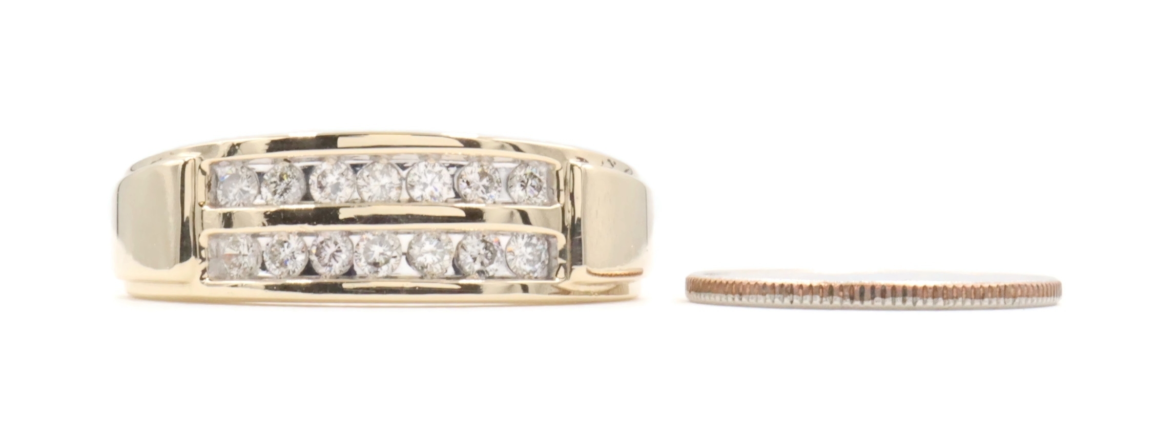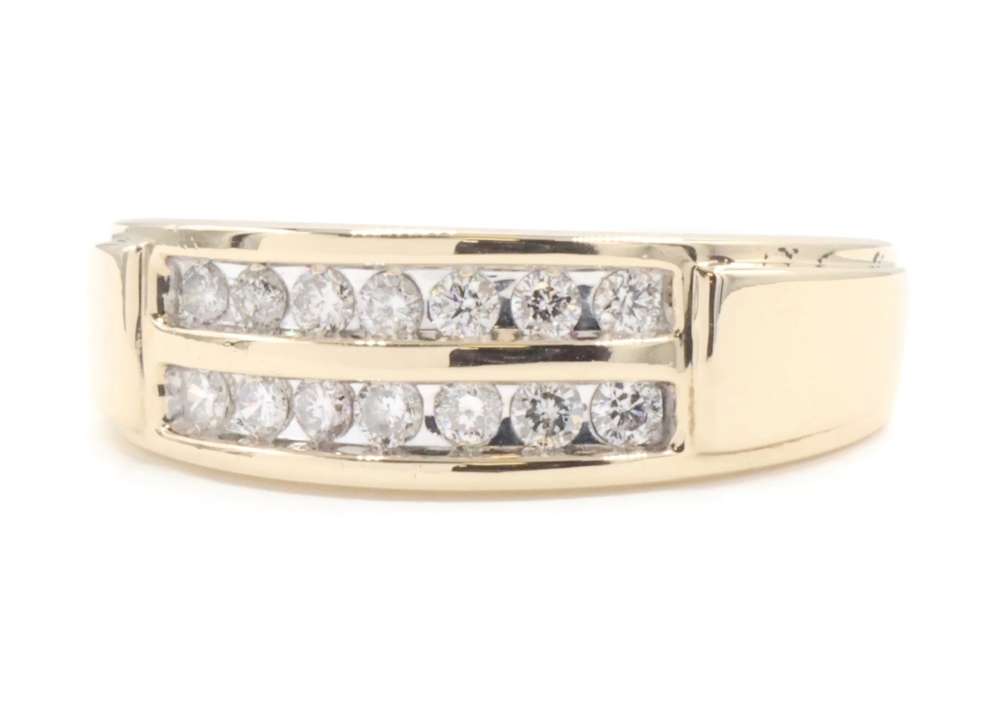 Men's 10KT Yellow Gold Two Row 0.70 ctw Round Diamond 7.9mm Estate Band Ring | USA Pawn