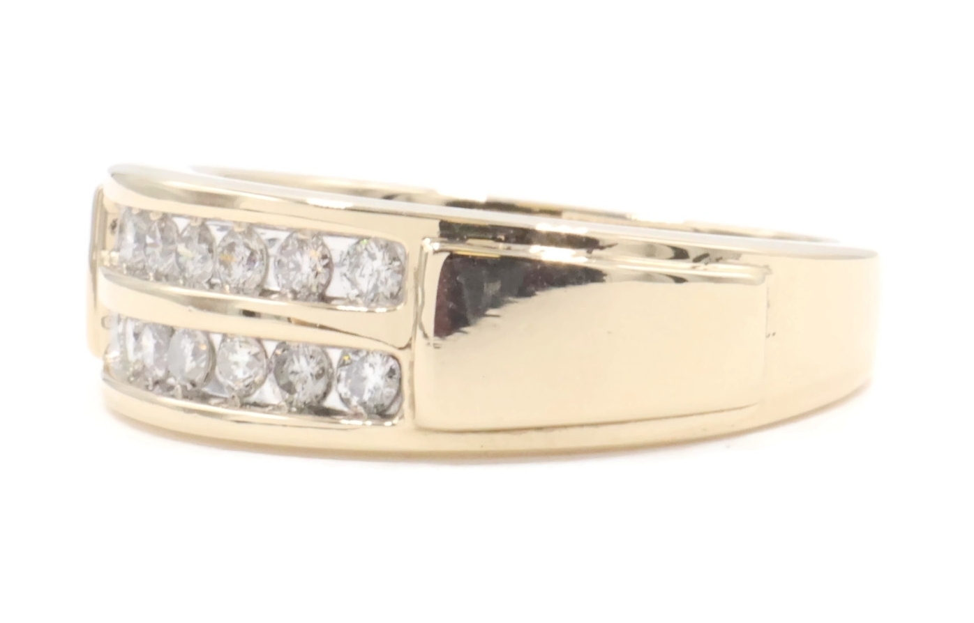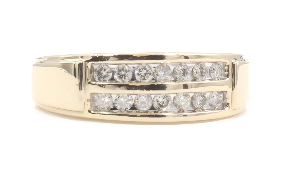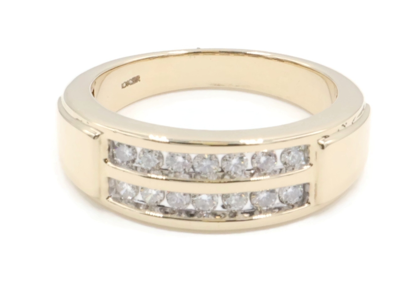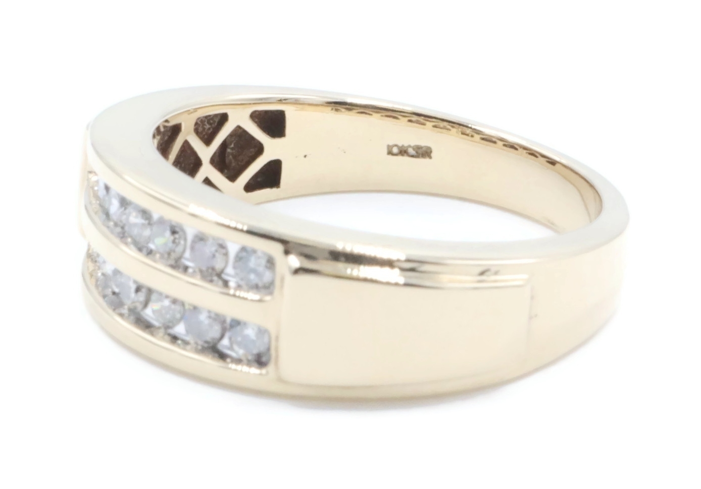 Men's 10KT Yellow Gold Two Row 0.70 ctw Round Diamond 7.9mm Estate Band Ring | USA Pawn