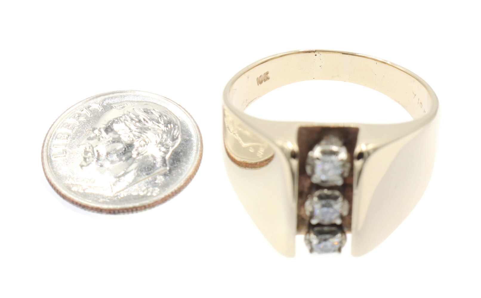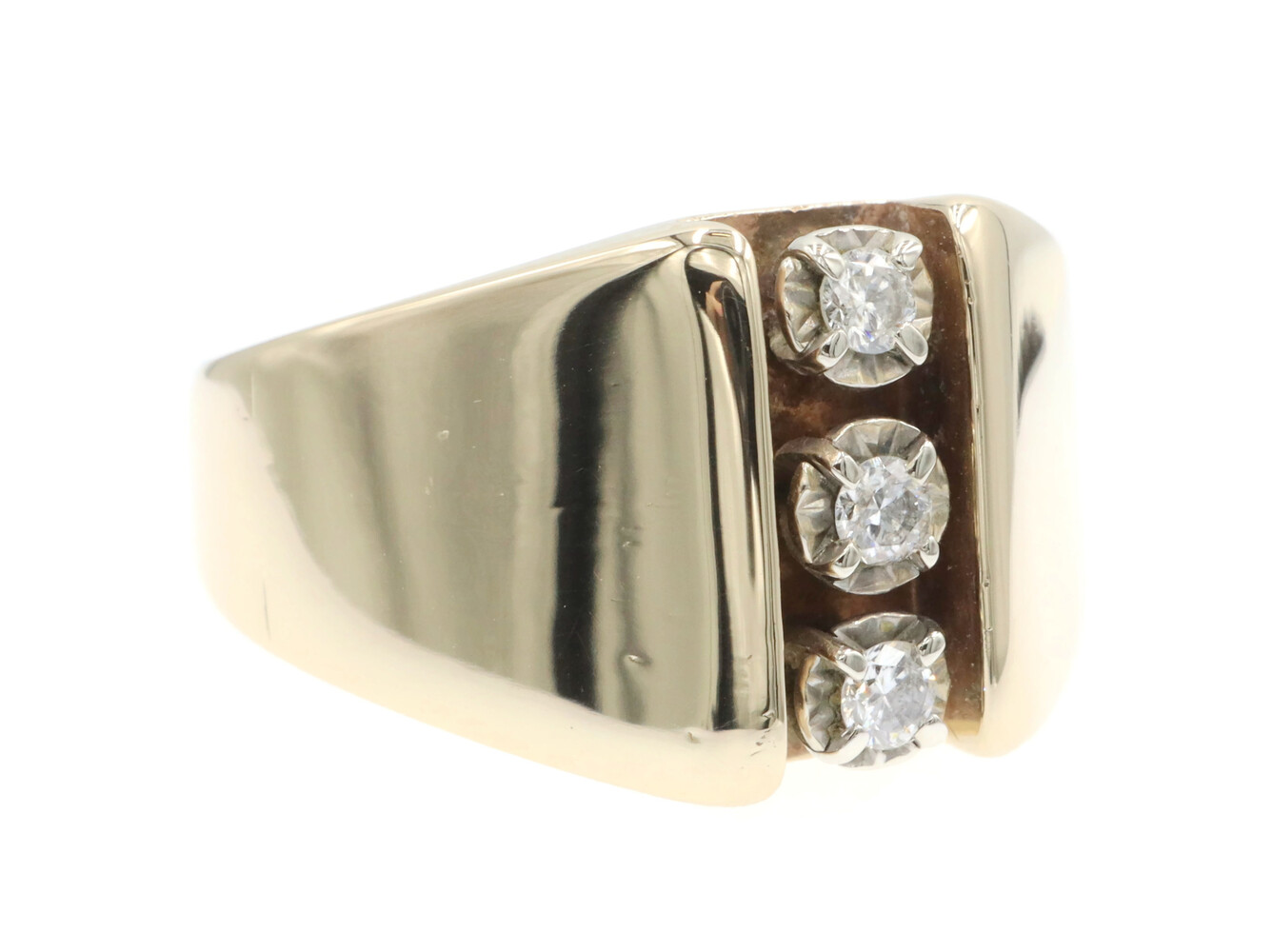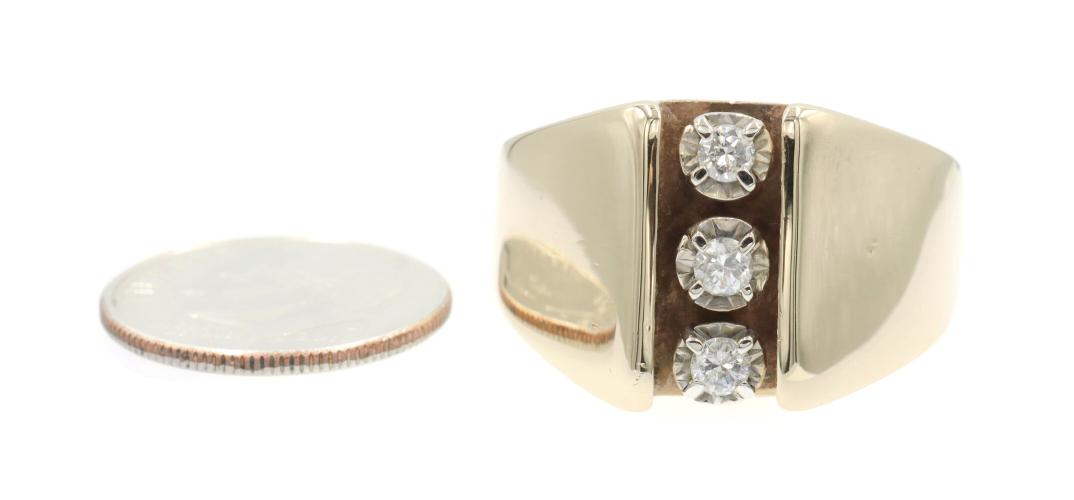 Men's 3-Stone 0.21 Ctw Round Diamond 10KT Yellow Gold Statement Estate Ring 9.3g. This ring is a size 11 1/4.
