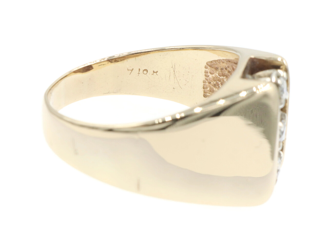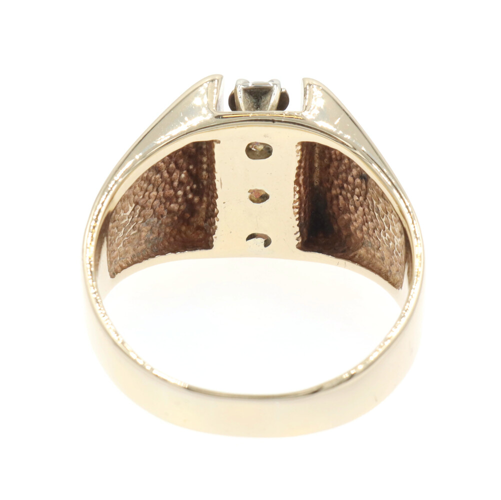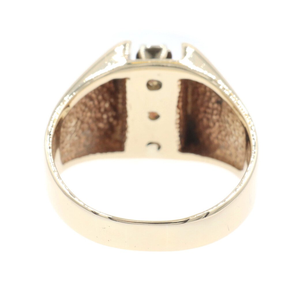 Men's 3-Stone 0.21 Ctw Round Diamond 10KT Yellow Gold Statement Estate Ring 9.3g. This ring is a size 11 1/4.