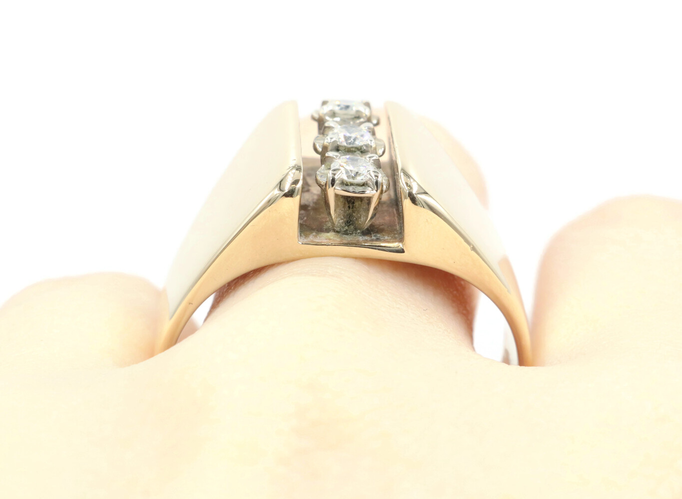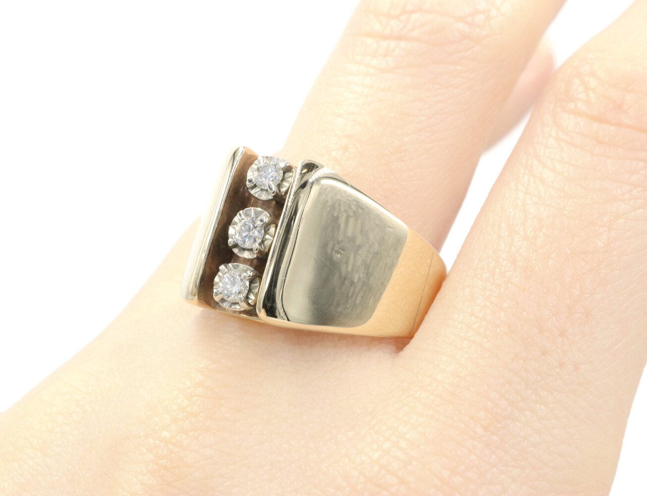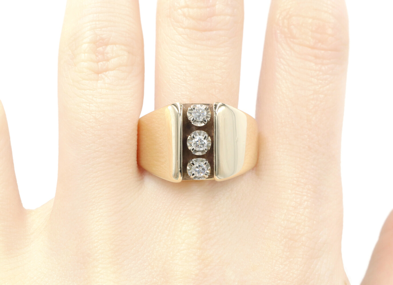 Men's 3-Stone 0.21 Ctw Round Diamond 10KT Yellow Gold Statement Estate Ring 9.3g | USA Pawn