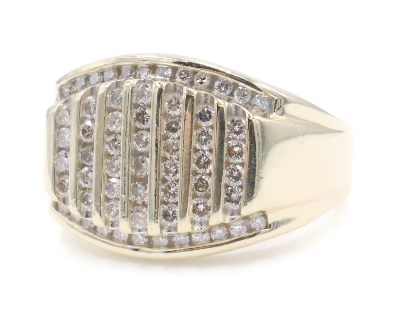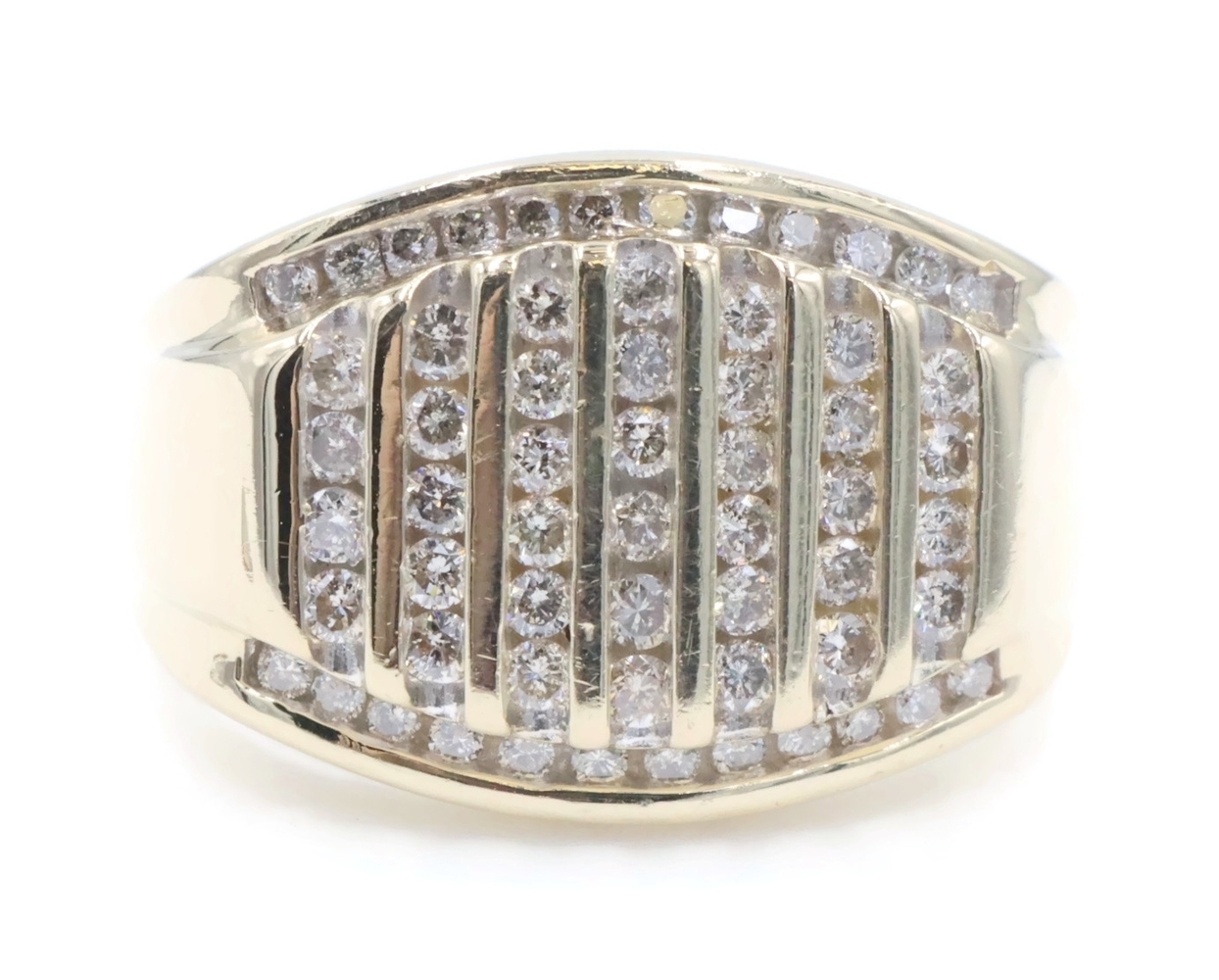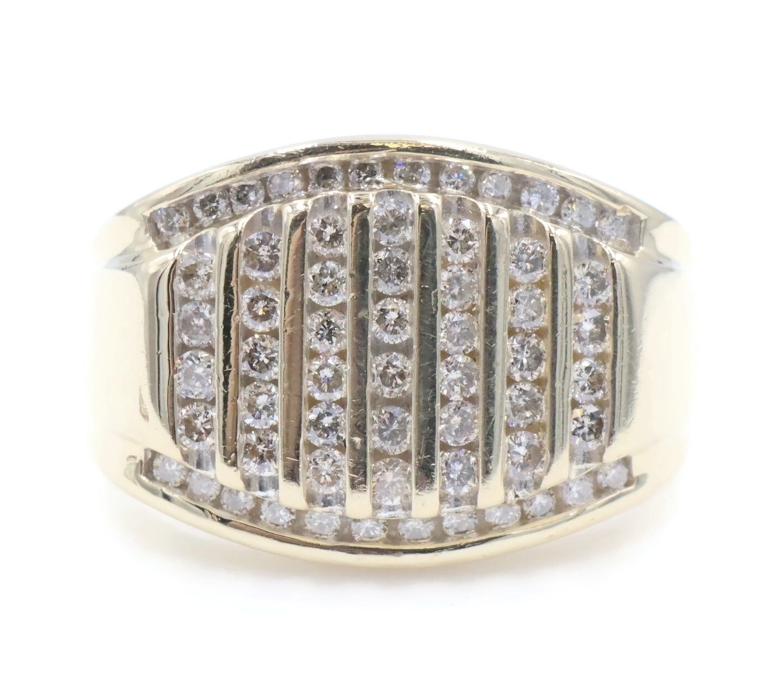 Men's 7-Row Channel 1.18 Ctw Round Diamond 14KT Yellow Gold Statement Ring 11.9g | USA Pawn