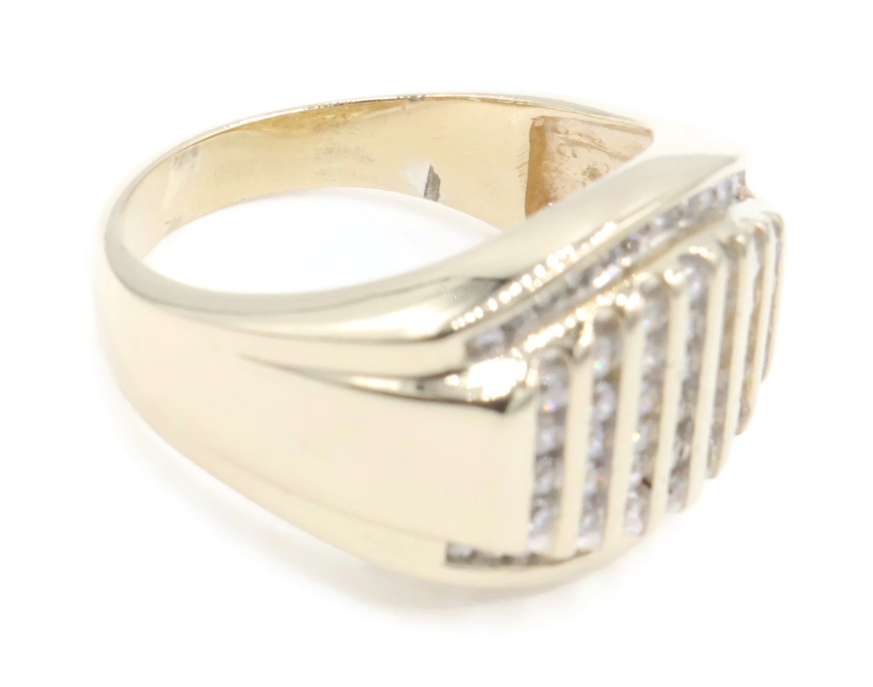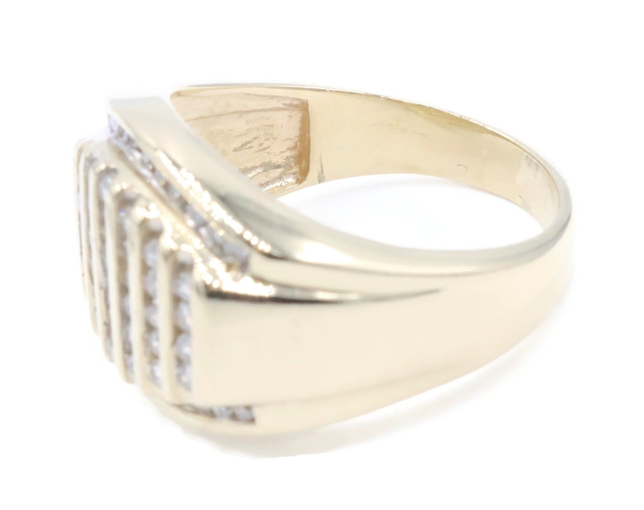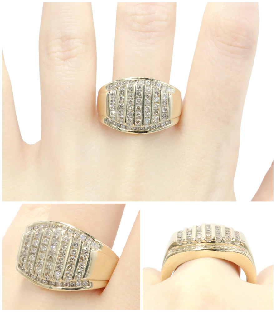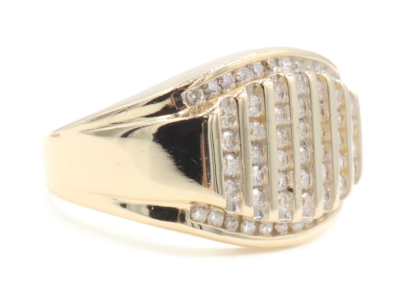 Men's 7-Row Channel 1.18 Ctw Round Diamond 14KT Yellow Gold Statement Ring 11.9g | USA Pawn