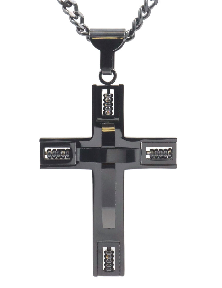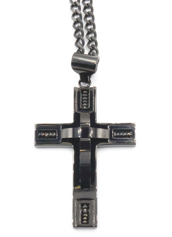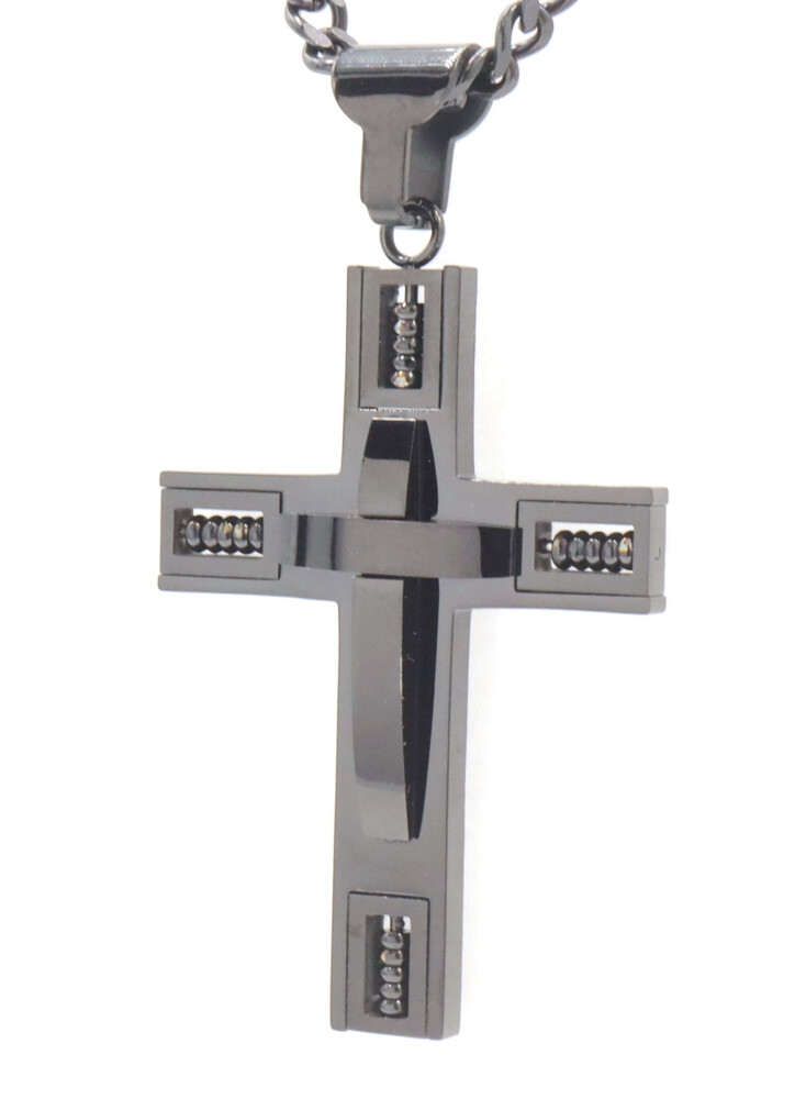 Men's Black Stainless Steel 2 3/4" Large Cross Pendant on 24" Curb Link Necklace | USA Pawn