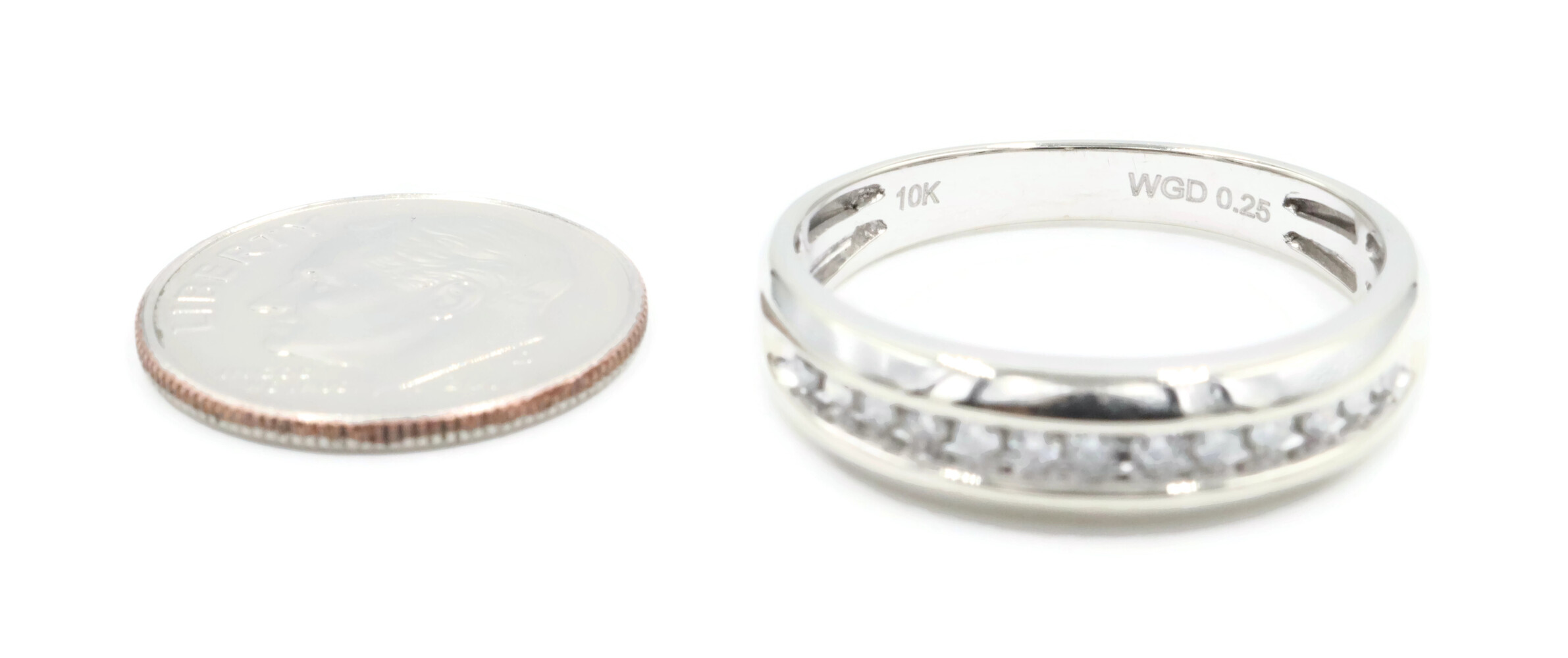 Men's Channel-Set 0.25 Ctw Round Diamond 10KT White Gold Wedding Band Ring WGD. This ring is a size 10.