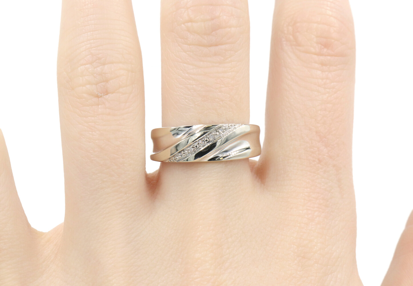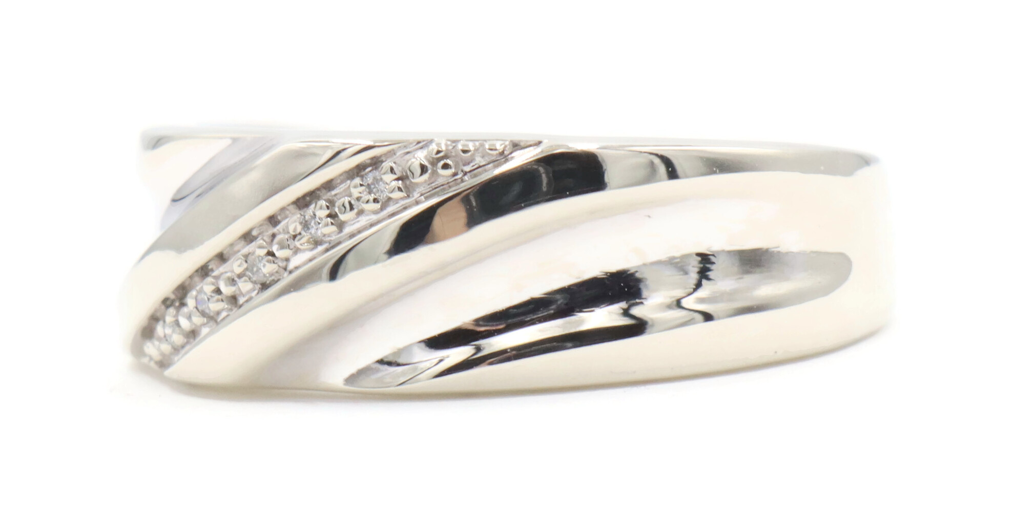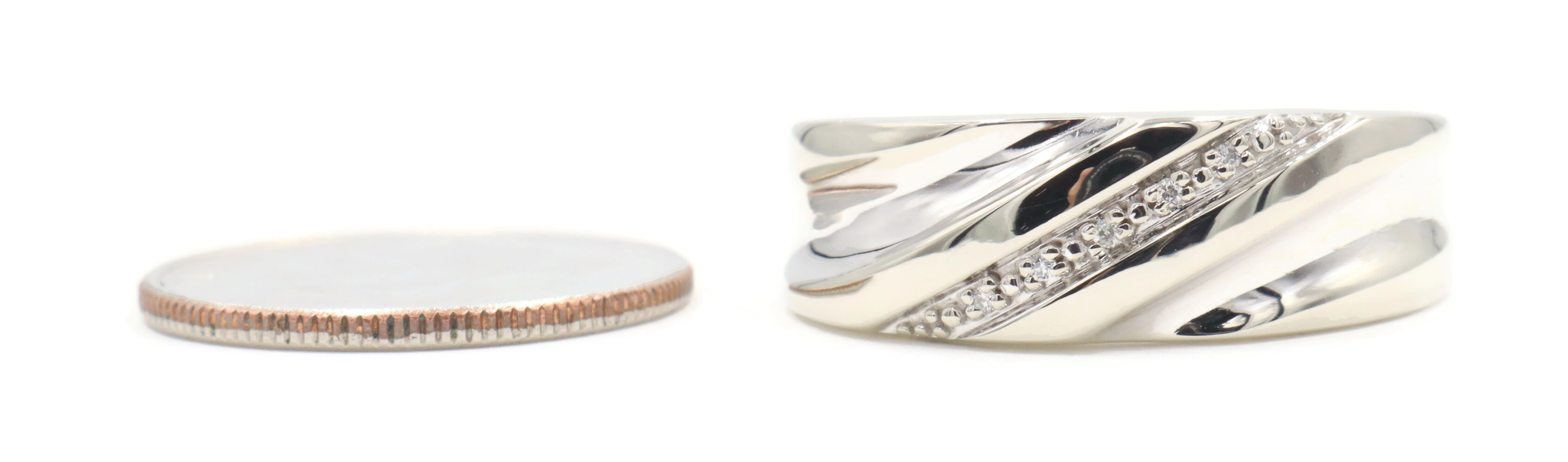 Men's Diagonal 0.03 Ctw Round Diamond 10KT White Gold Wedding Band Ring MGW 3.6g | USA Pawn