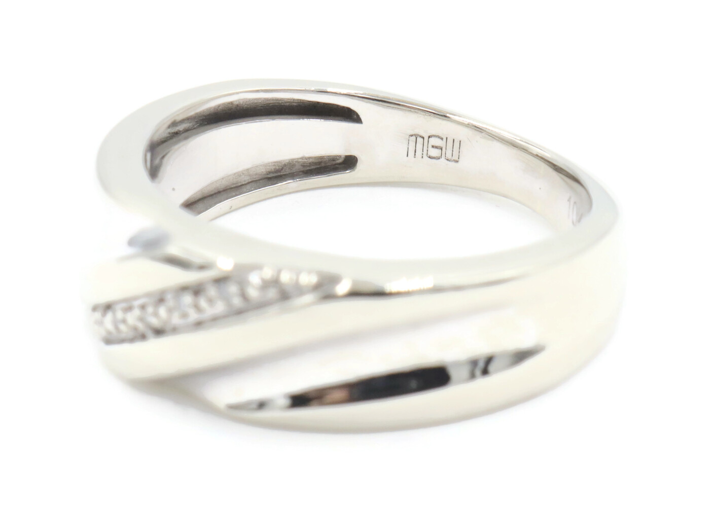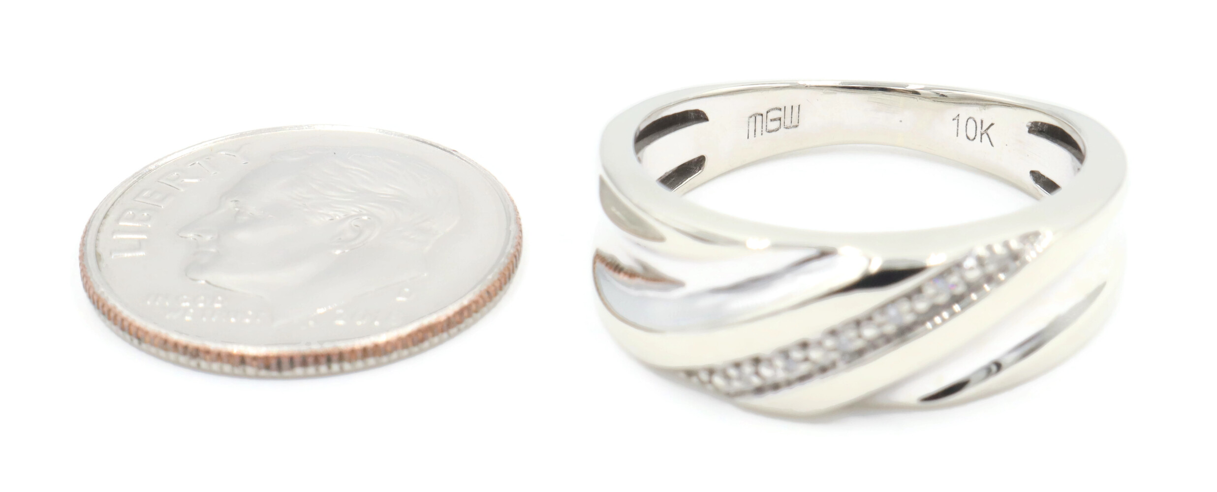 Men's Diagonal 0.03 Ctw Round Diamond 10KT White Gold Wedding Band Ring MGW 3.6g. This ring is a size 7.