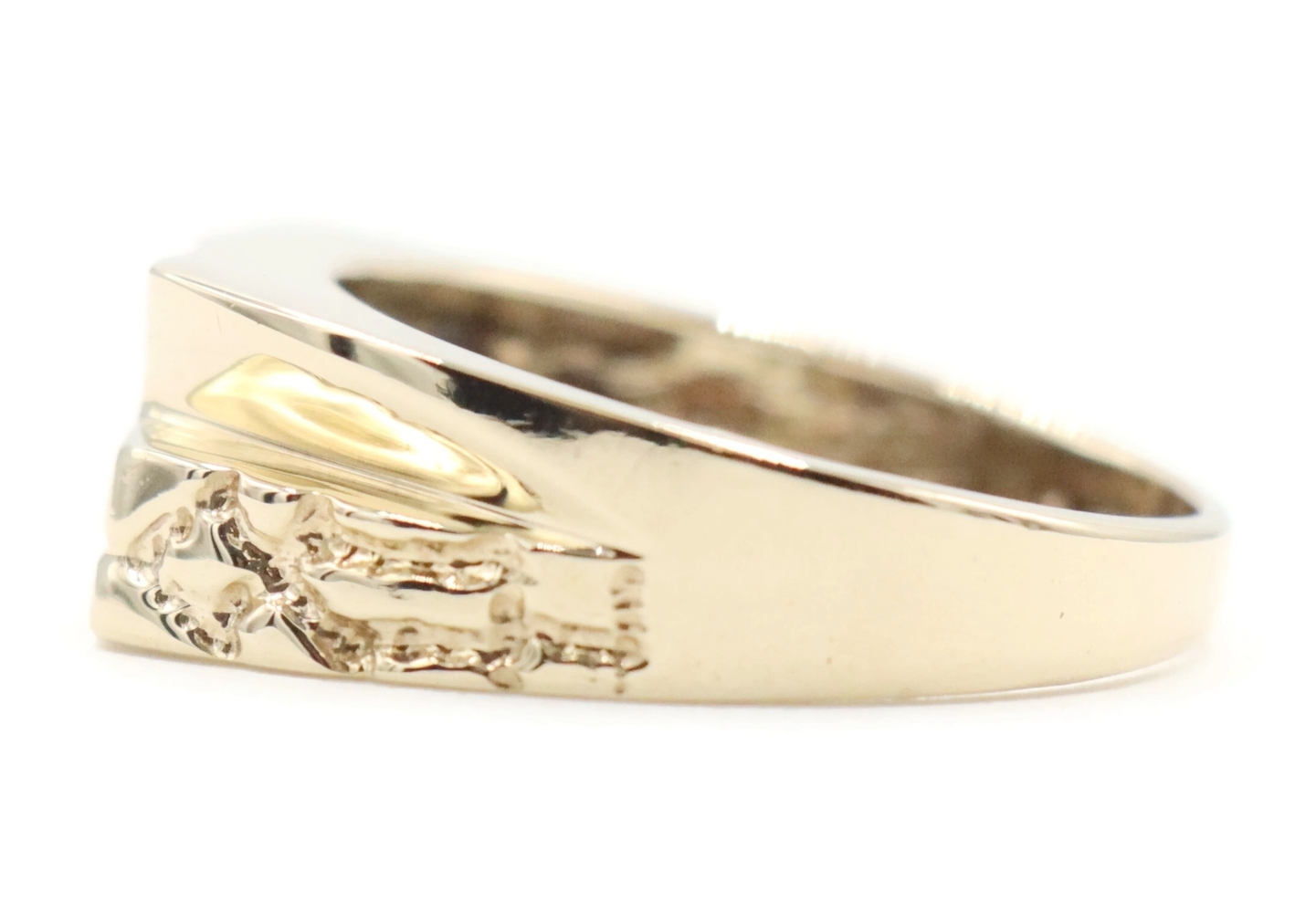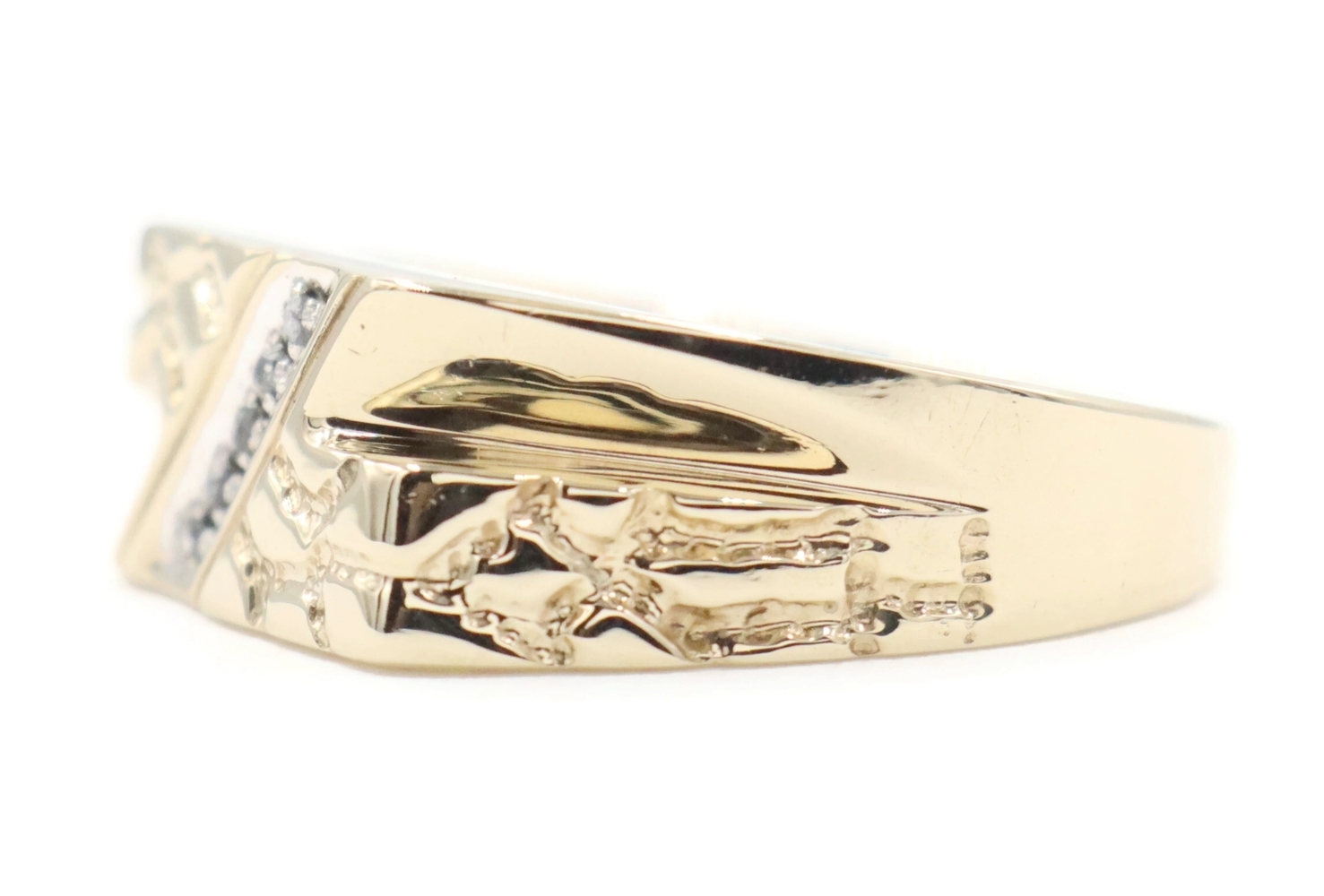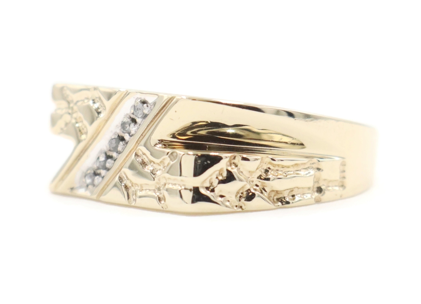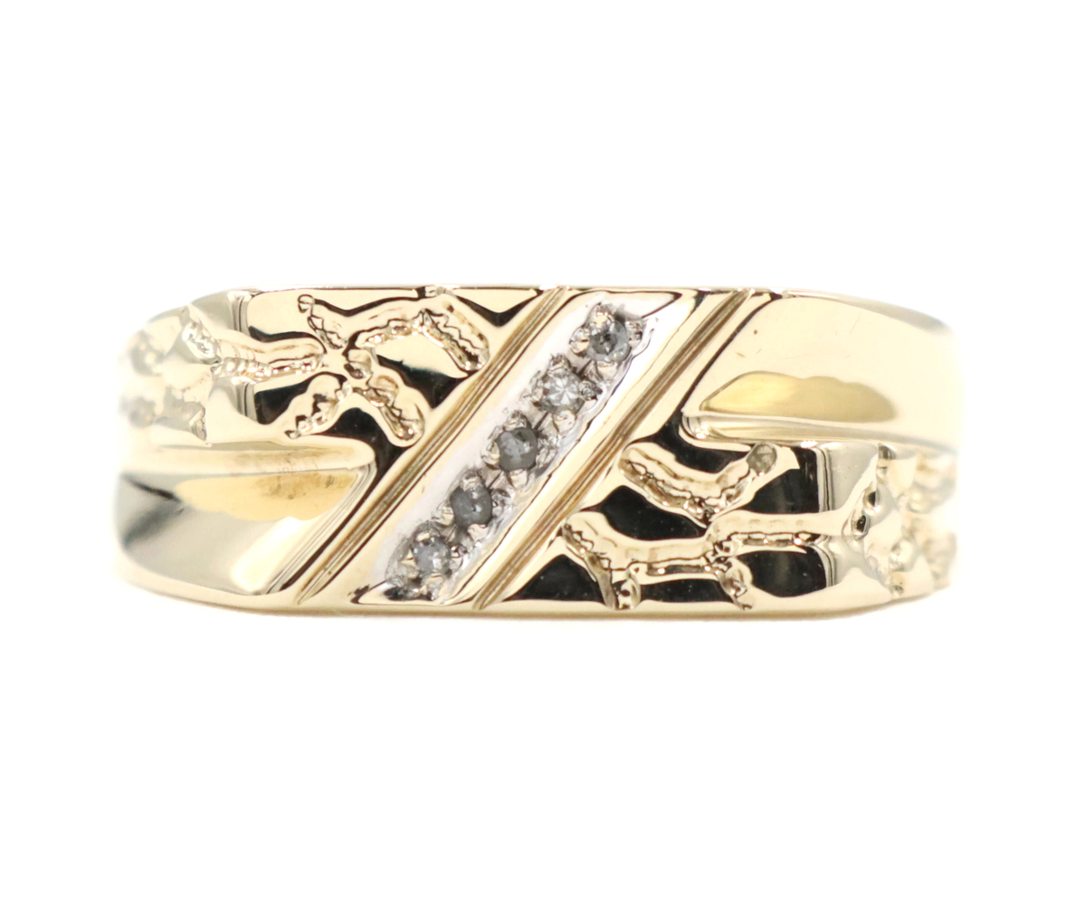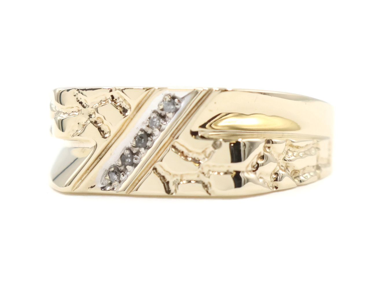 Men's Diagonal 0.05 Ctw Round Single Cut Diamond 10KT Yellow Gold Nugget Ring | USA Pawn