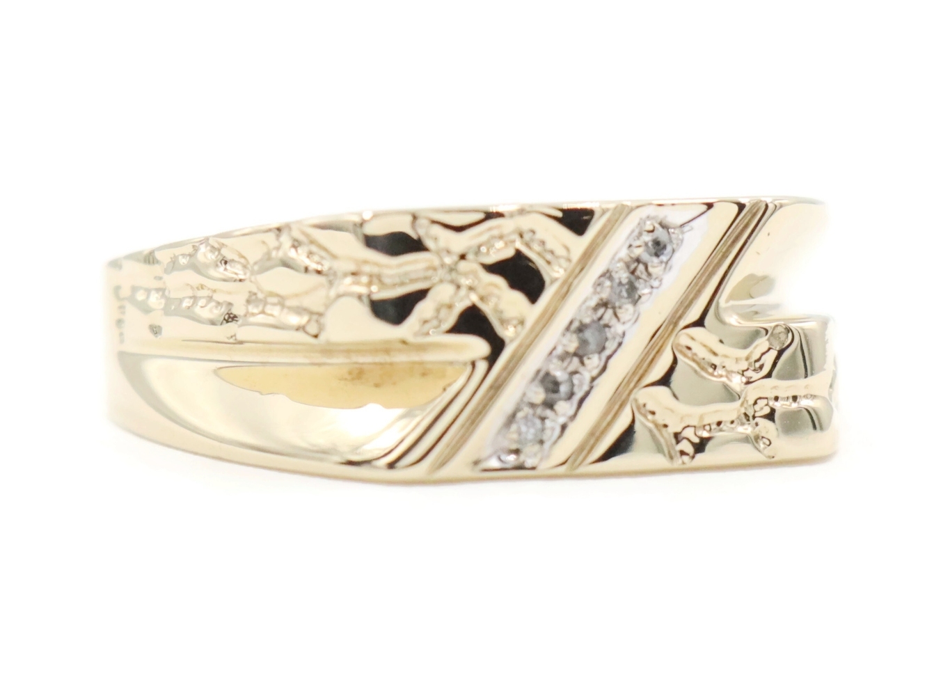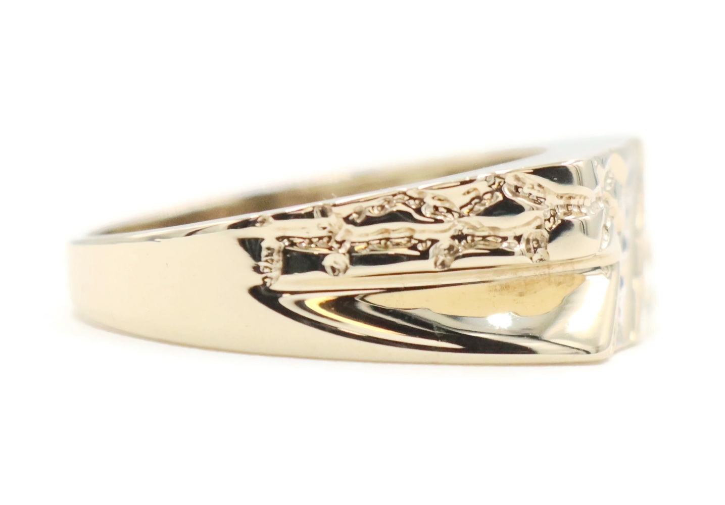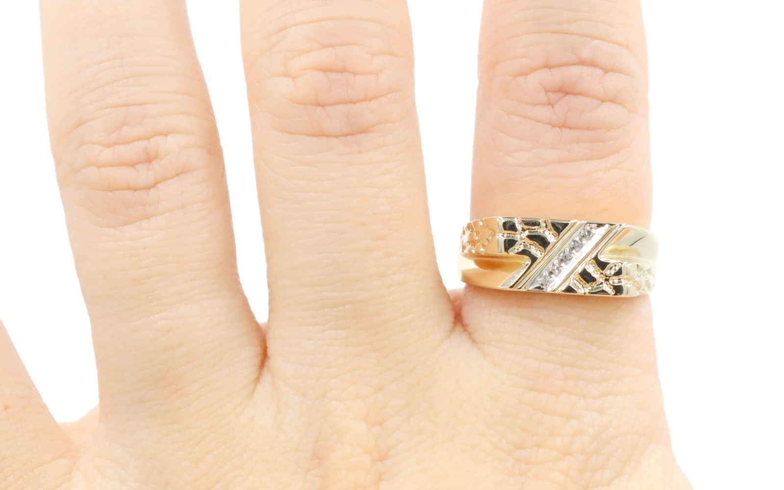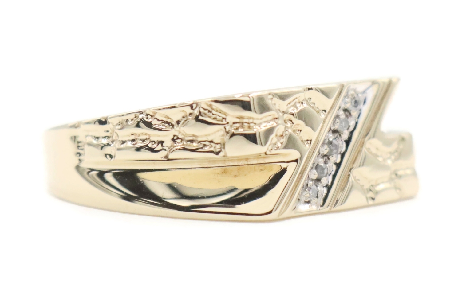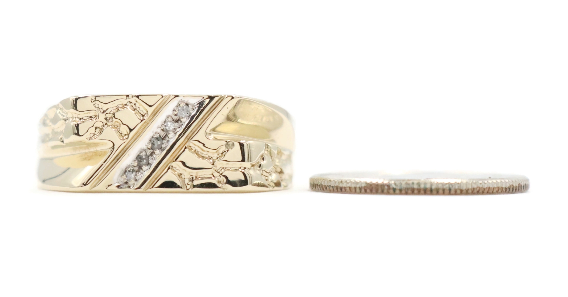 Men's Diagonal 0.05 Ctw Round Single Cut Diamond 10KT Yellow Gold Nugget Ring | USA Pawn