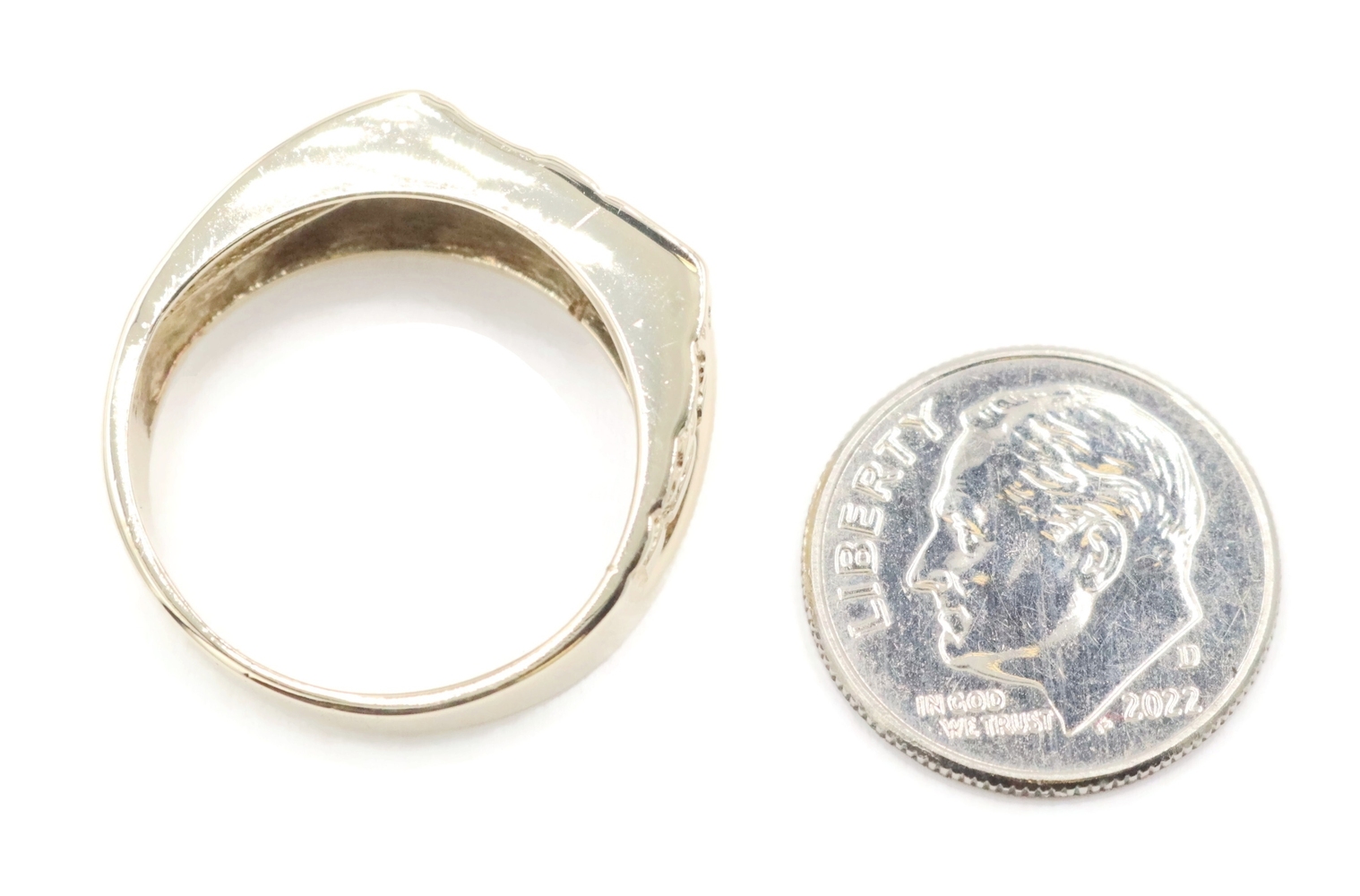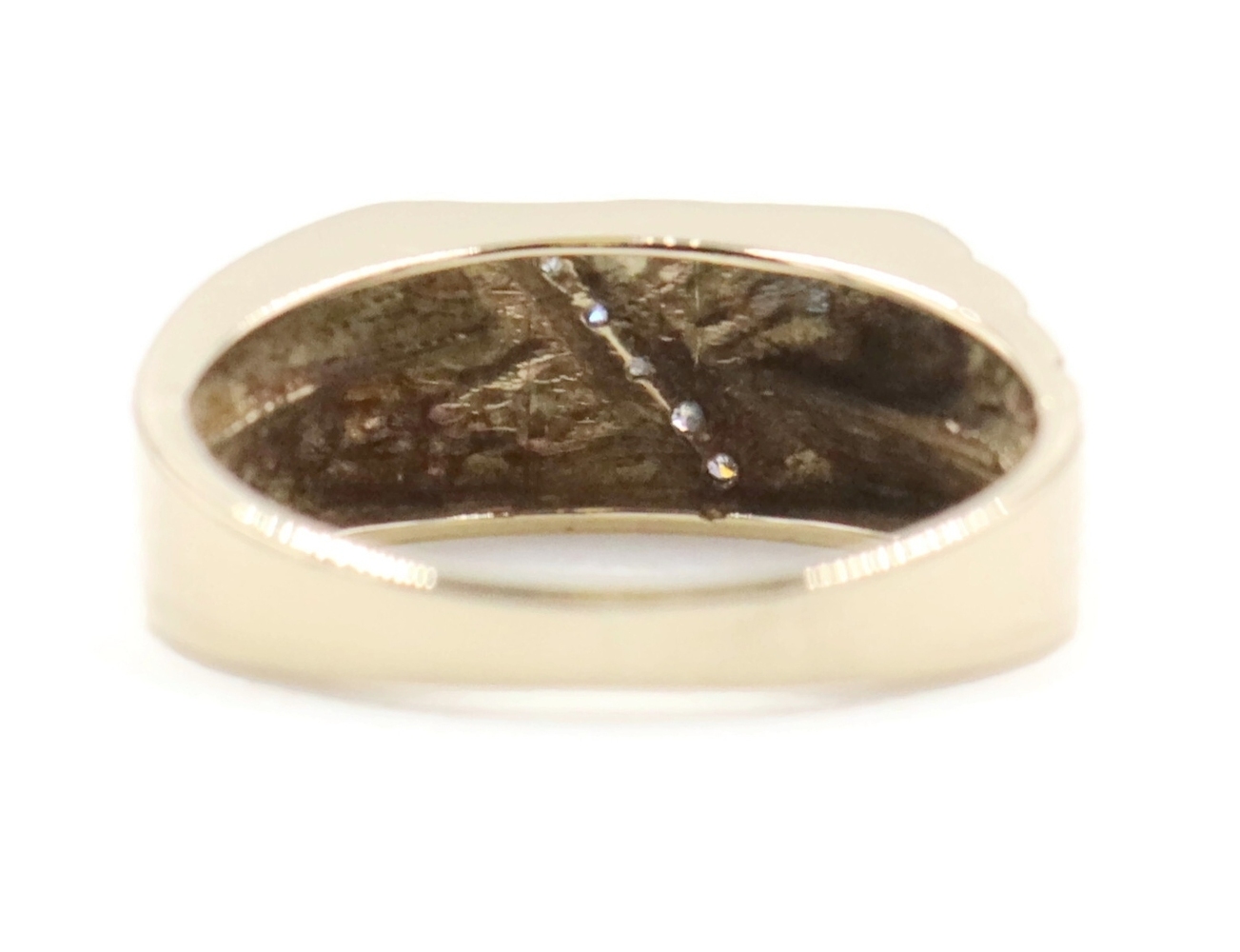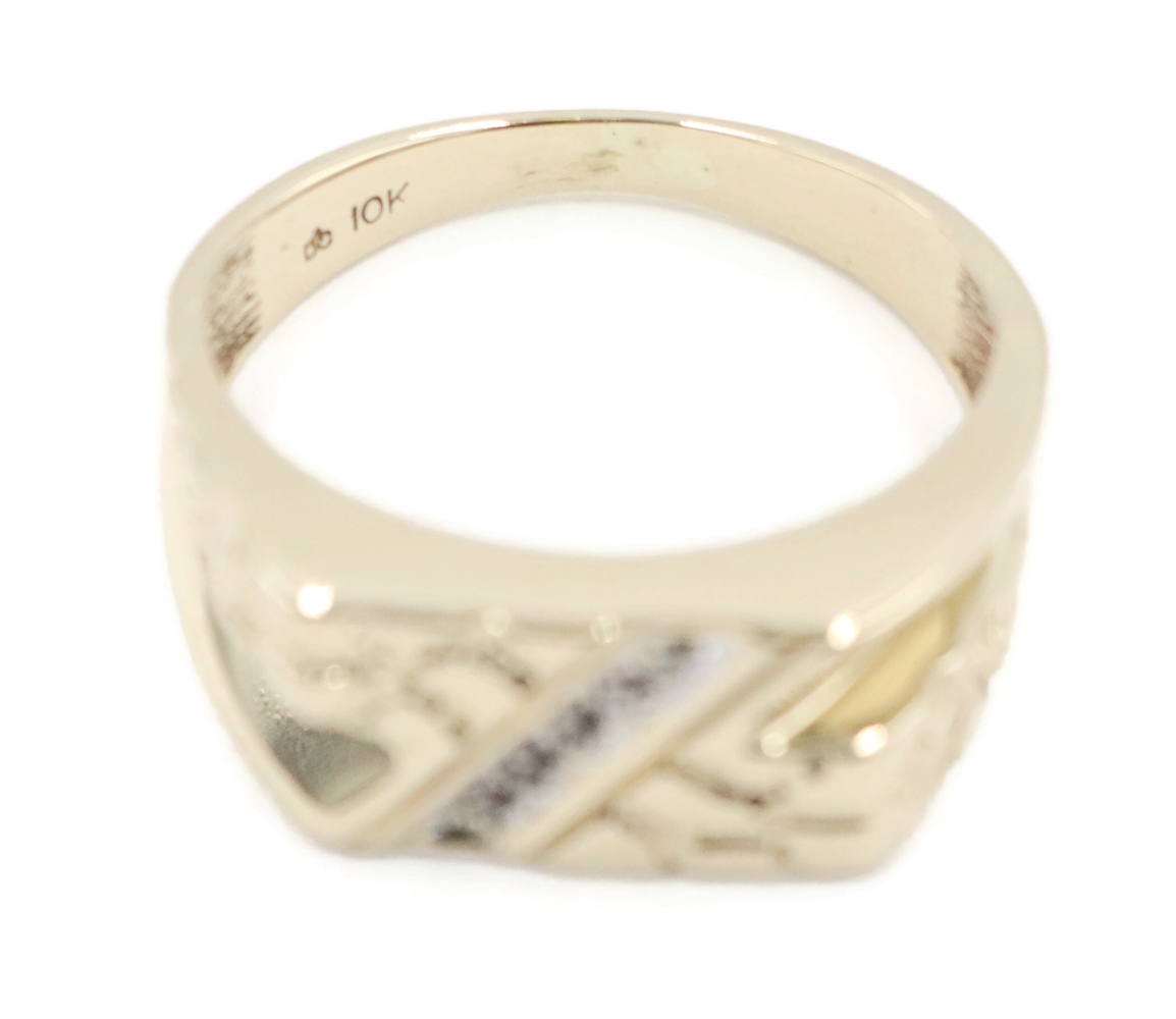 Men's Diagonal 0.05 Ctw Round Single Cut Diamond 10KT Yellow Gold Nugget Ring. This ring is a size 8 1/4.