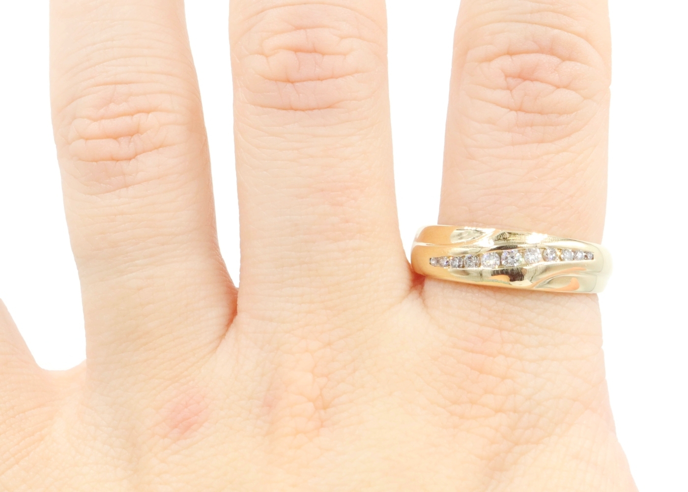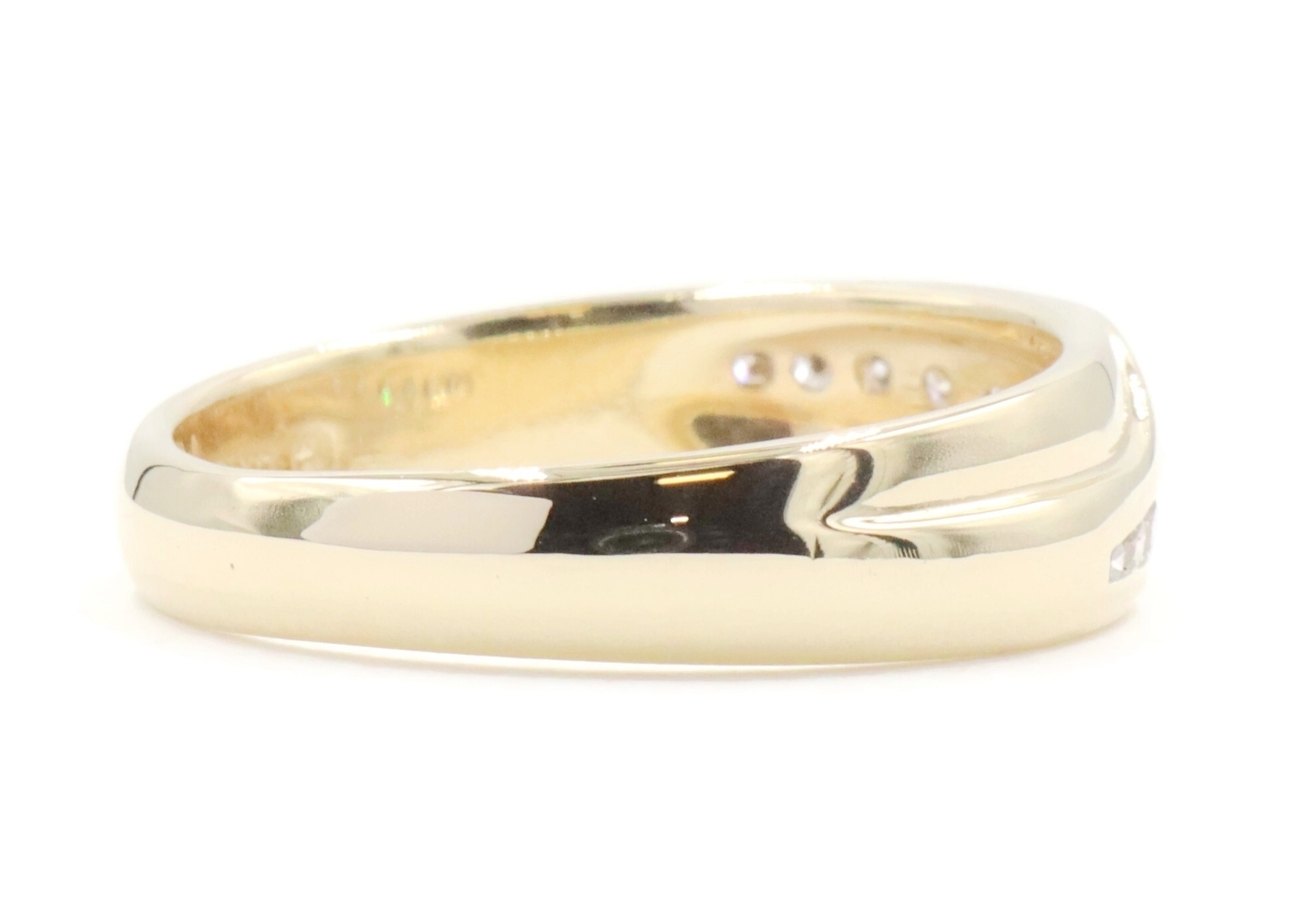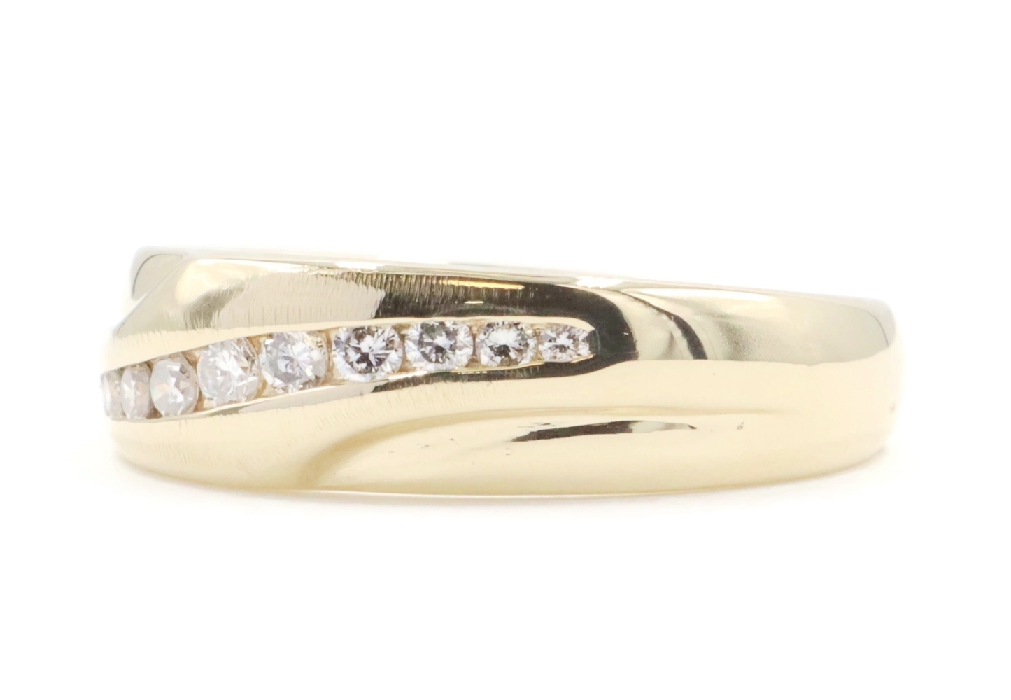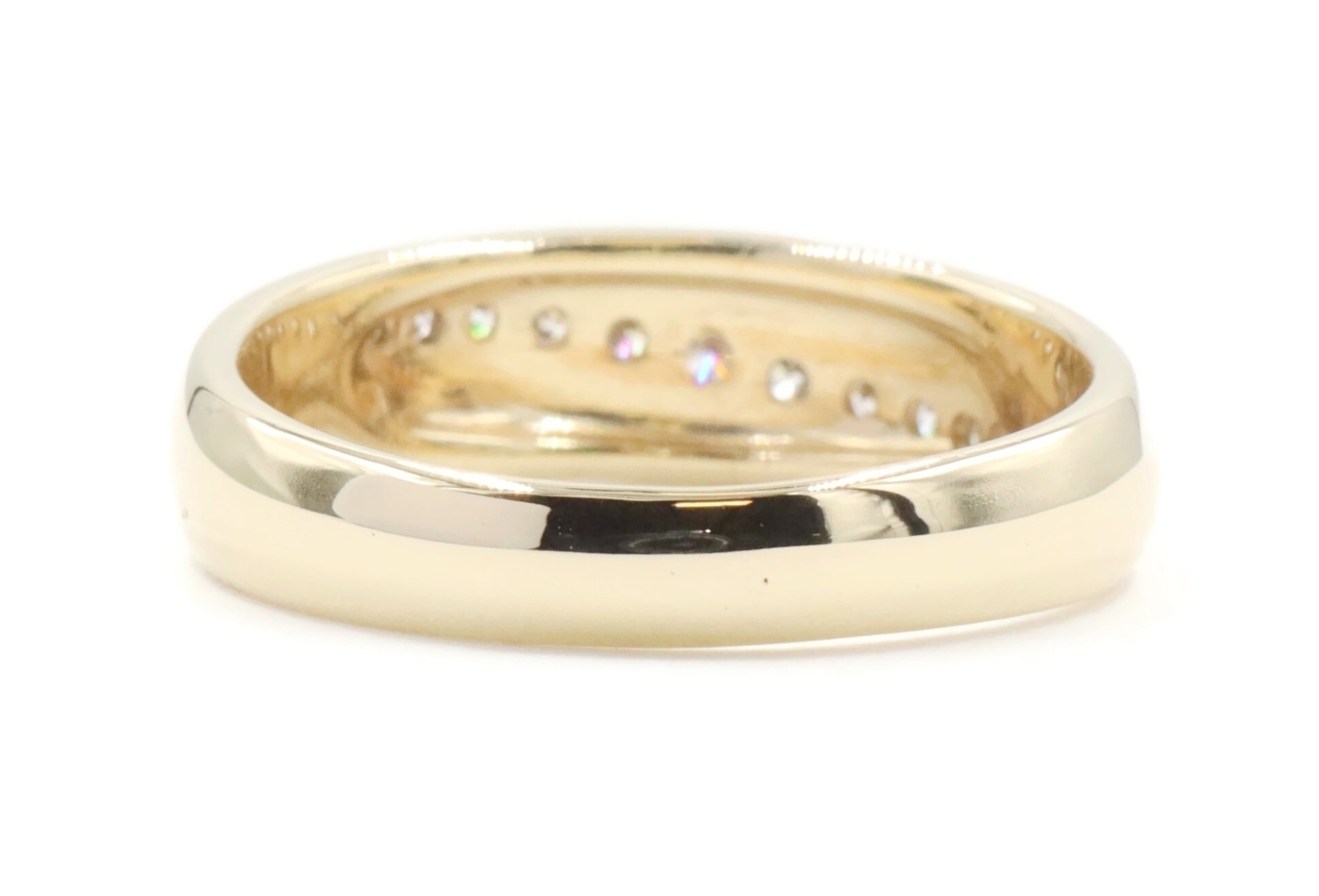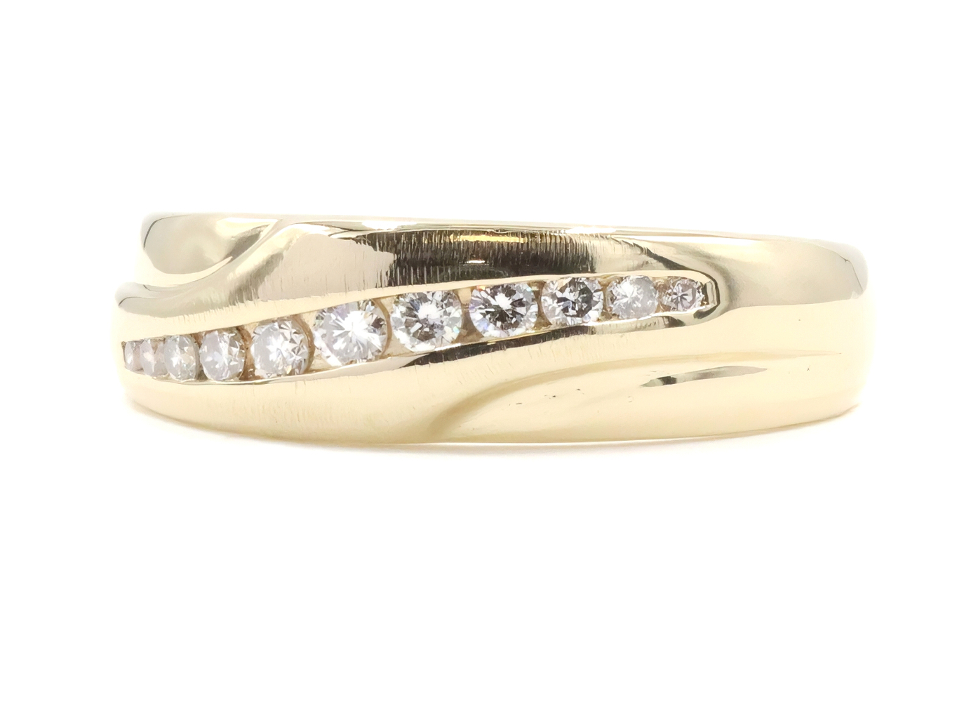 Men's Diagonal 0.30 Ctw Round Diamond 14KT Gold Textured Channel Wedding Band. This ring is a size 10 1/2.