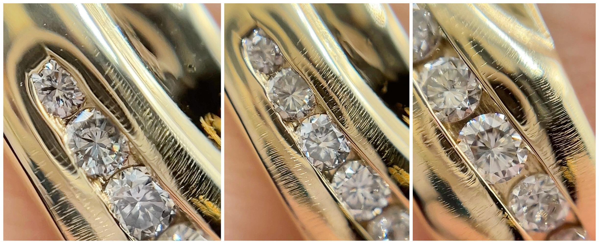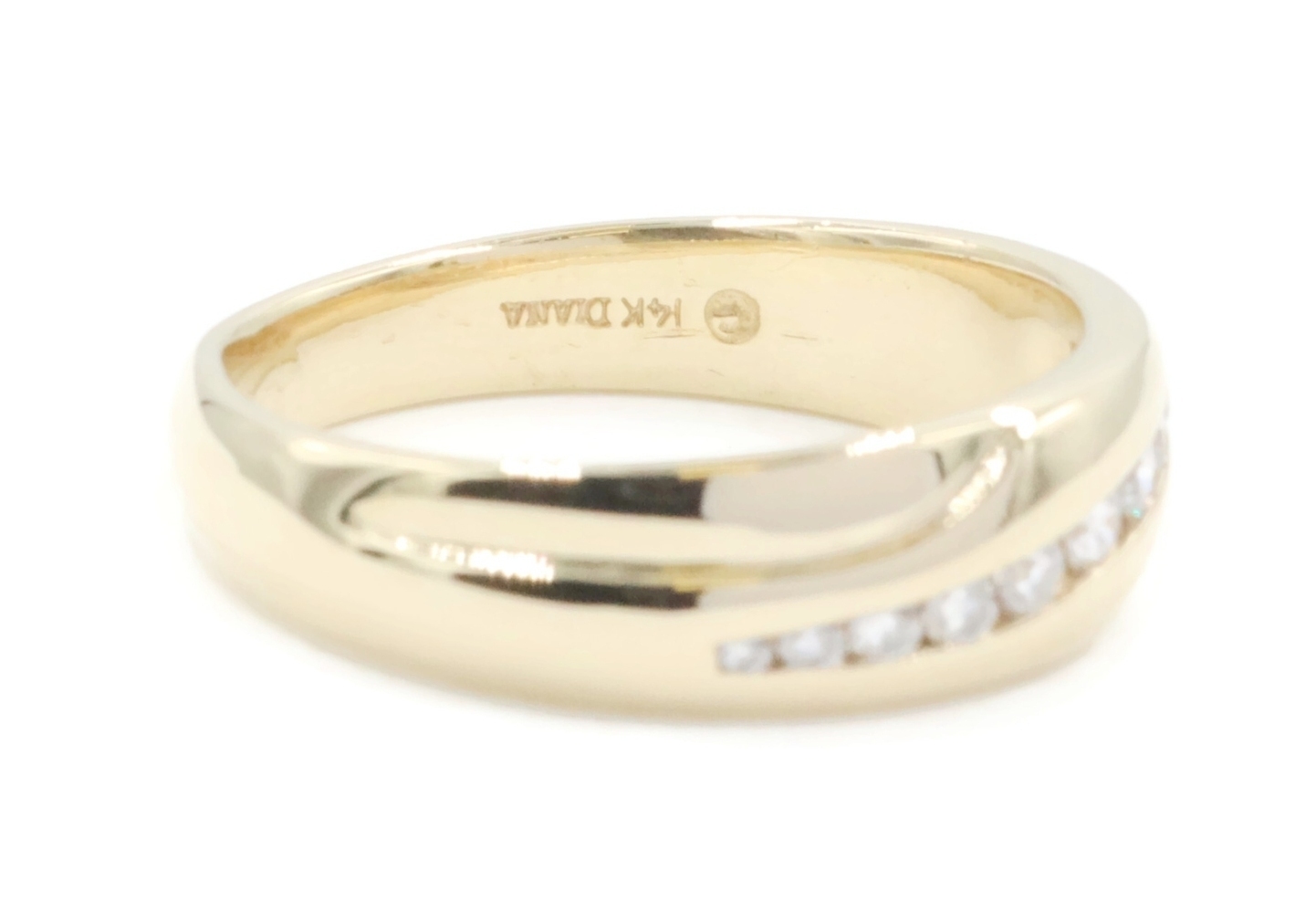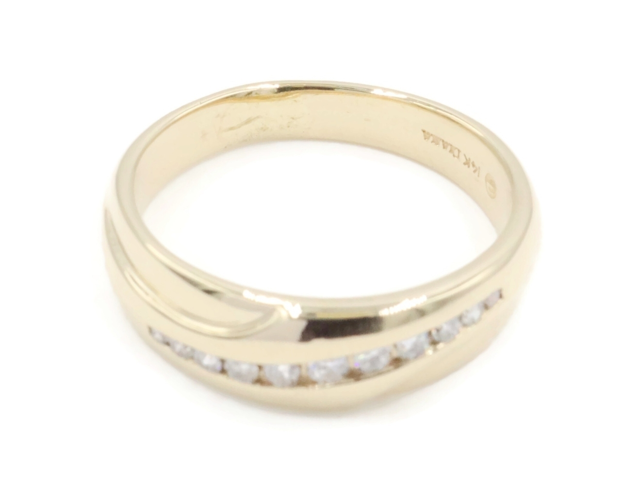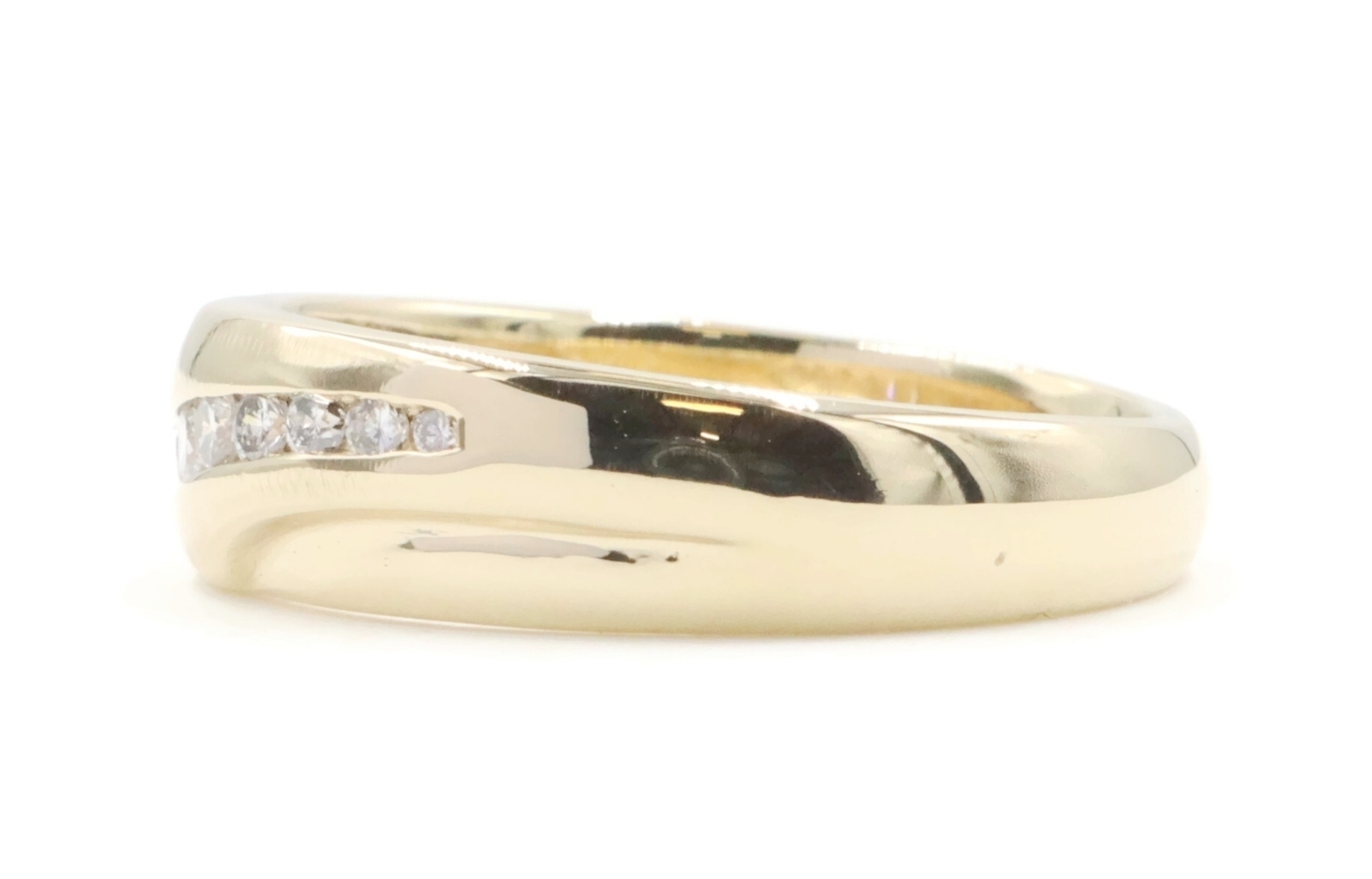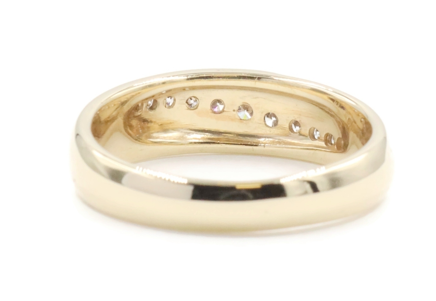 Men's Diagonal 0.30 Ctw Round Diamond 14KT Gold Textured Channel Wedding Band. This ring is a size 10 1/2.