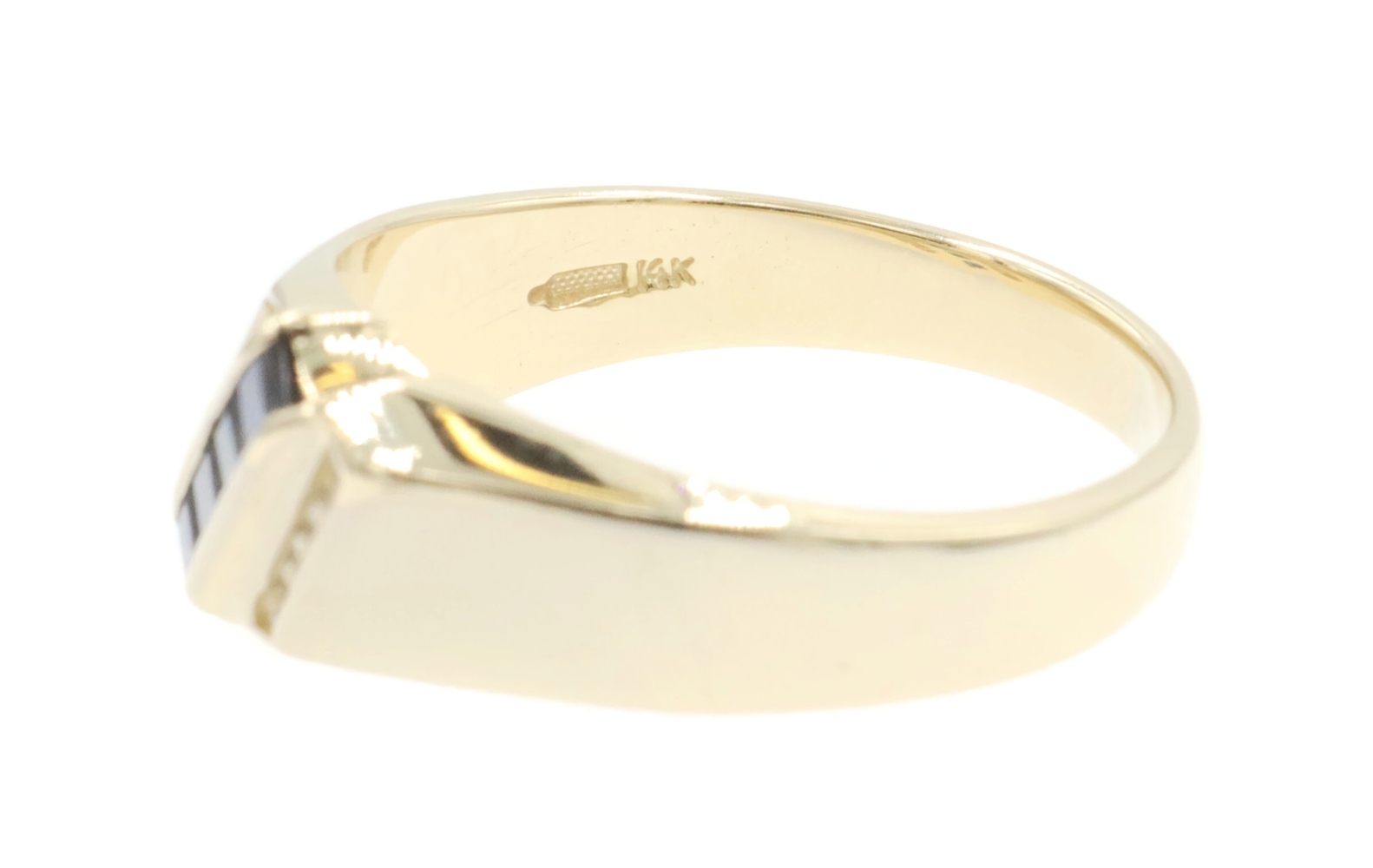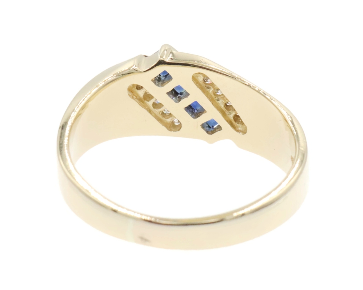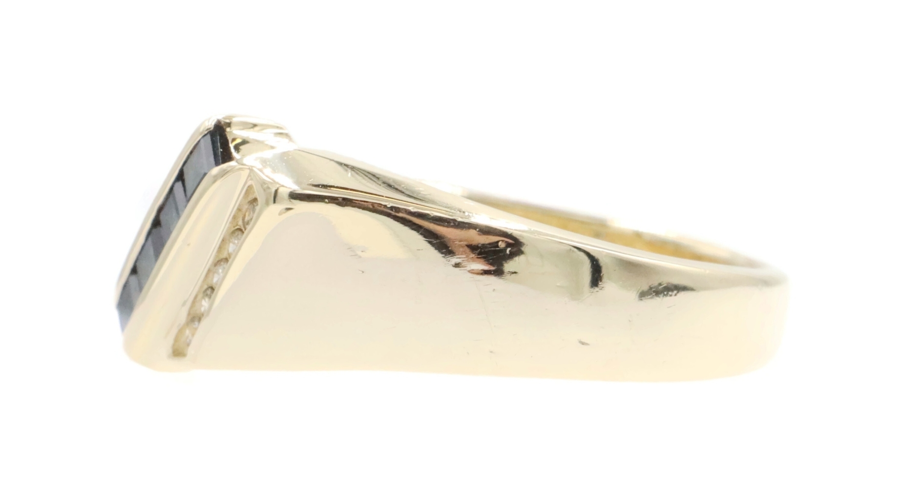 Men's Diagonal 0.40 Ctw Lab-Created Sapphire & Natural Diamond 14KT Gold Ring. This ring is a size 11 1/4.