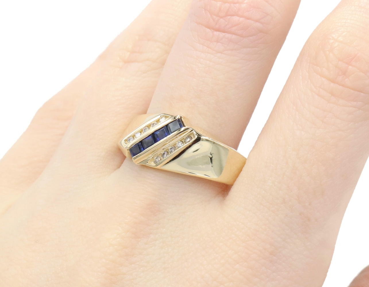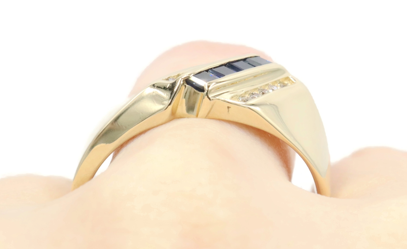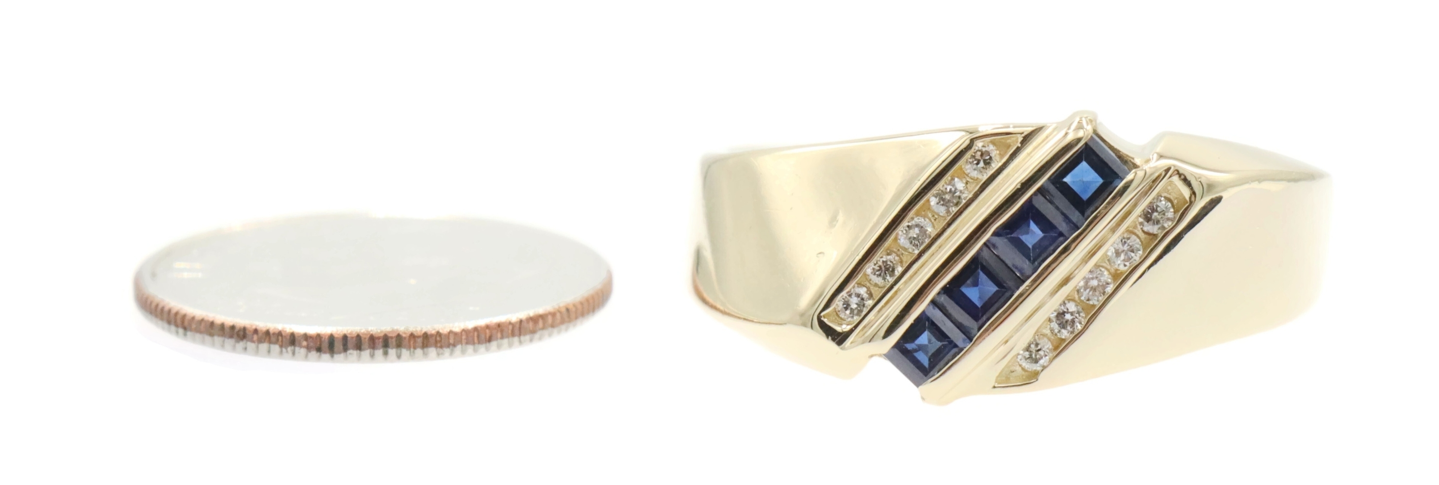 Men's Diagonal 0.40 Ctw Lab-Created Sapphire & Natural Diamond 14KT Gold Ring | USA Pawn
