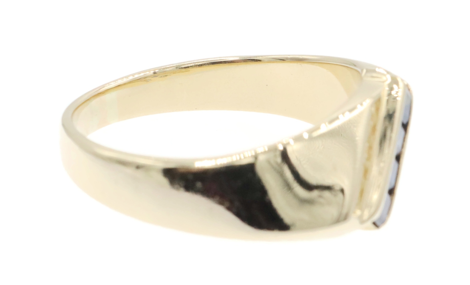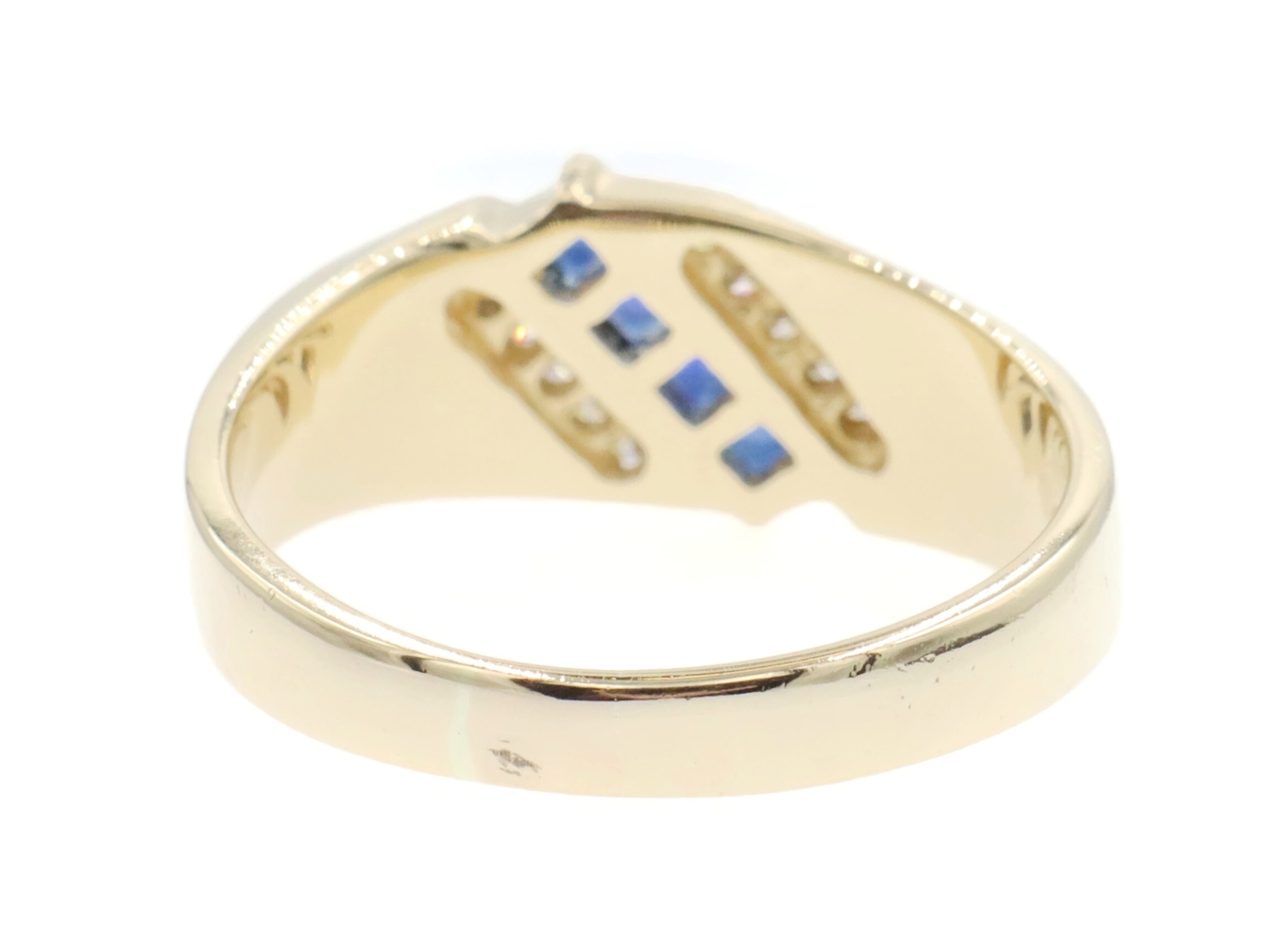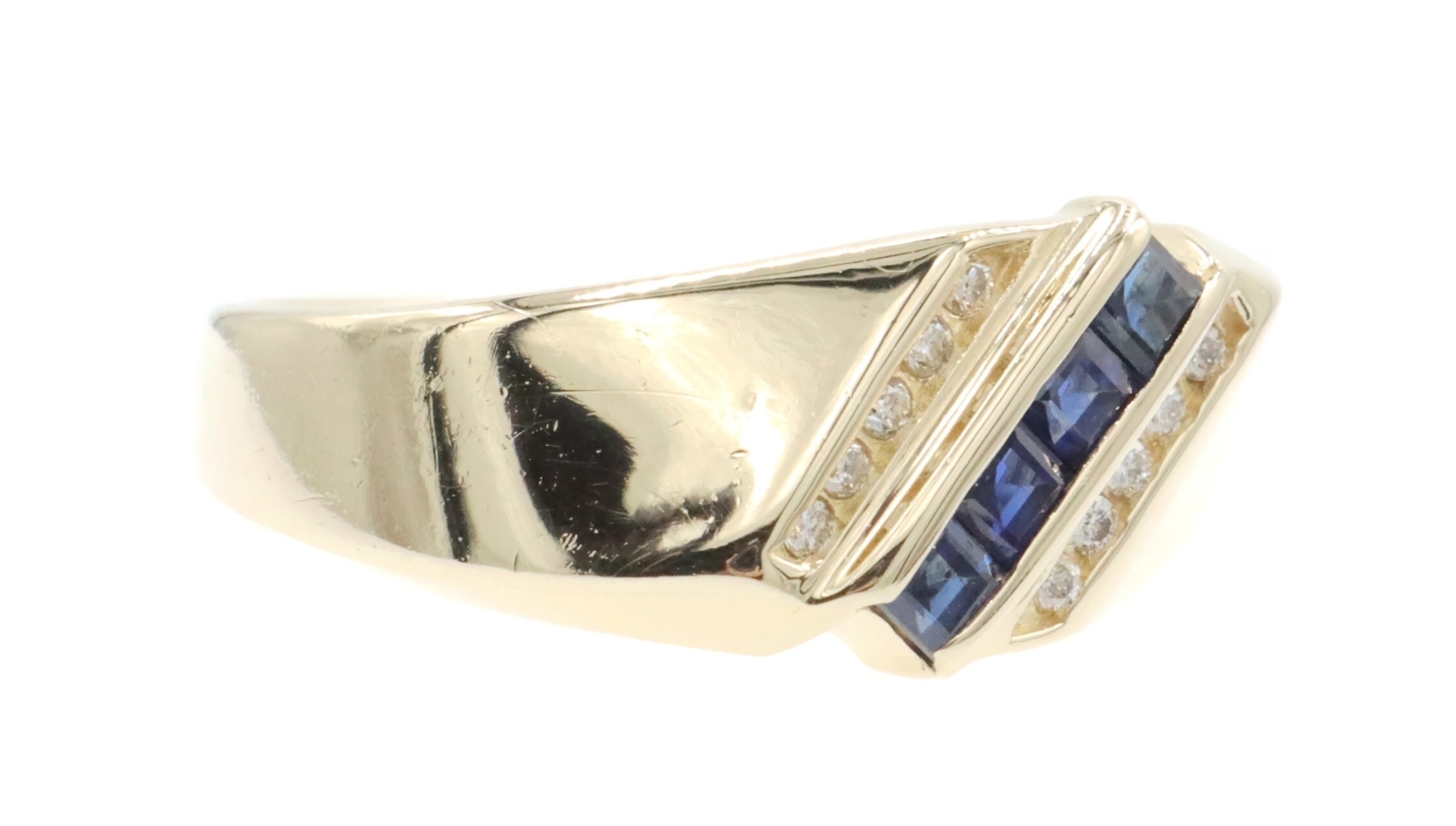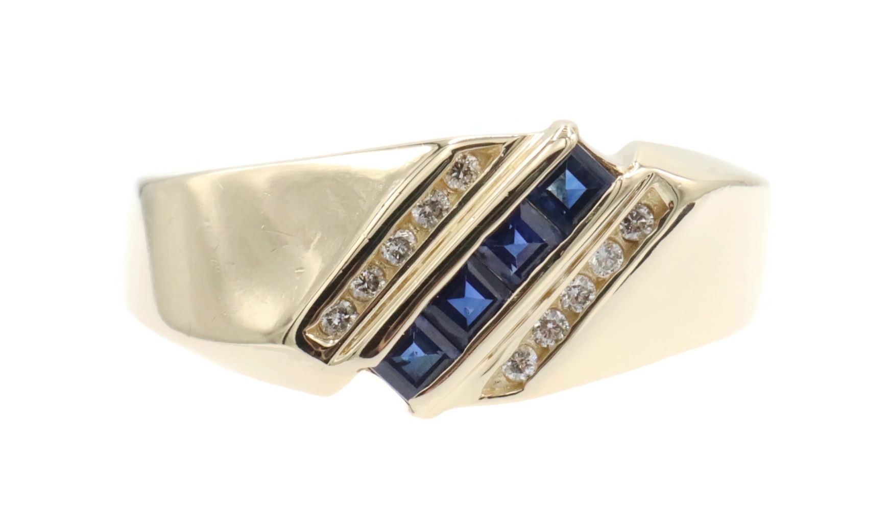 Men's Diagonal 0.40 Ctw Lab-Created Sapphire & Natural Diamond 14KT Gold Ring | USA Pawn