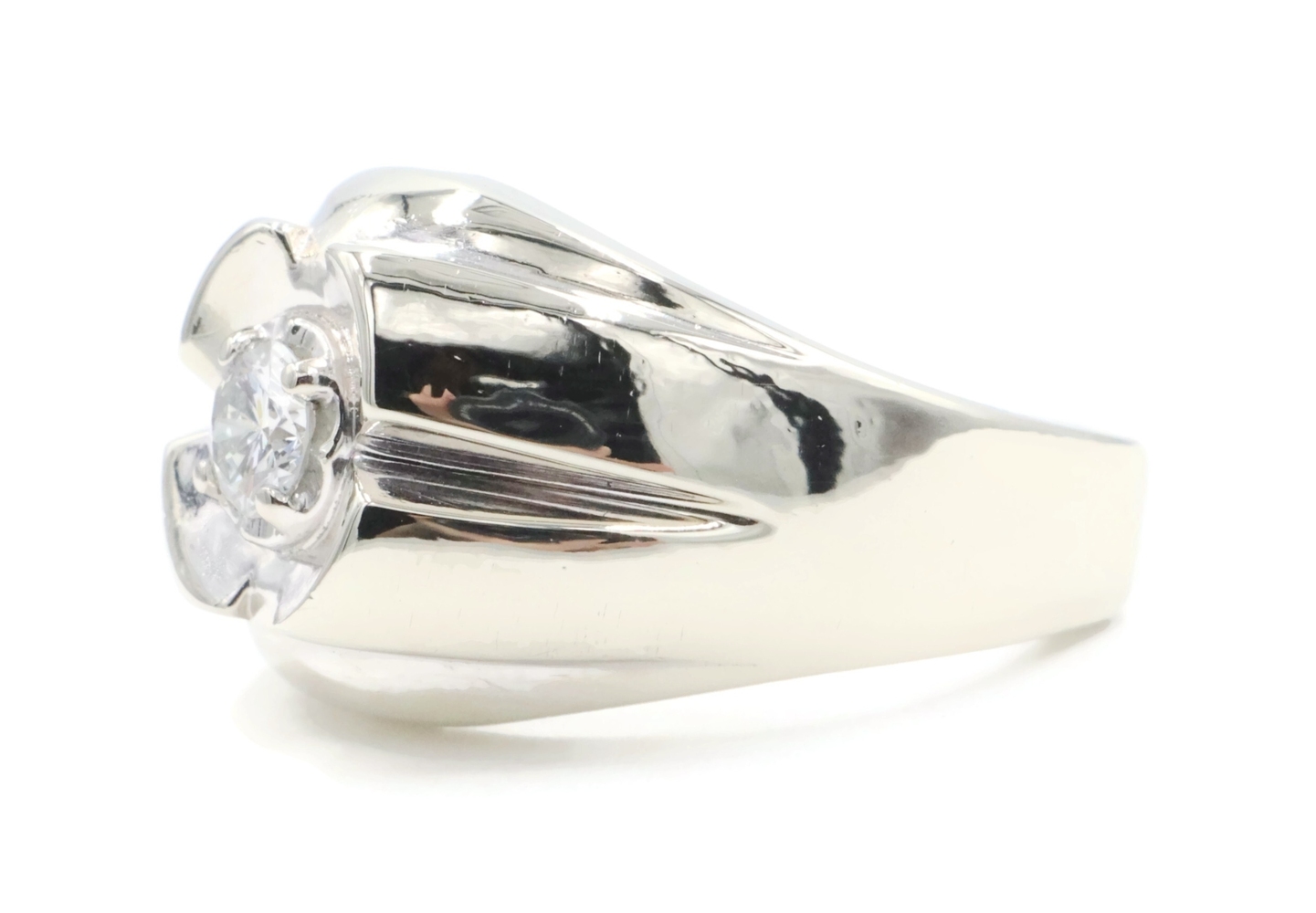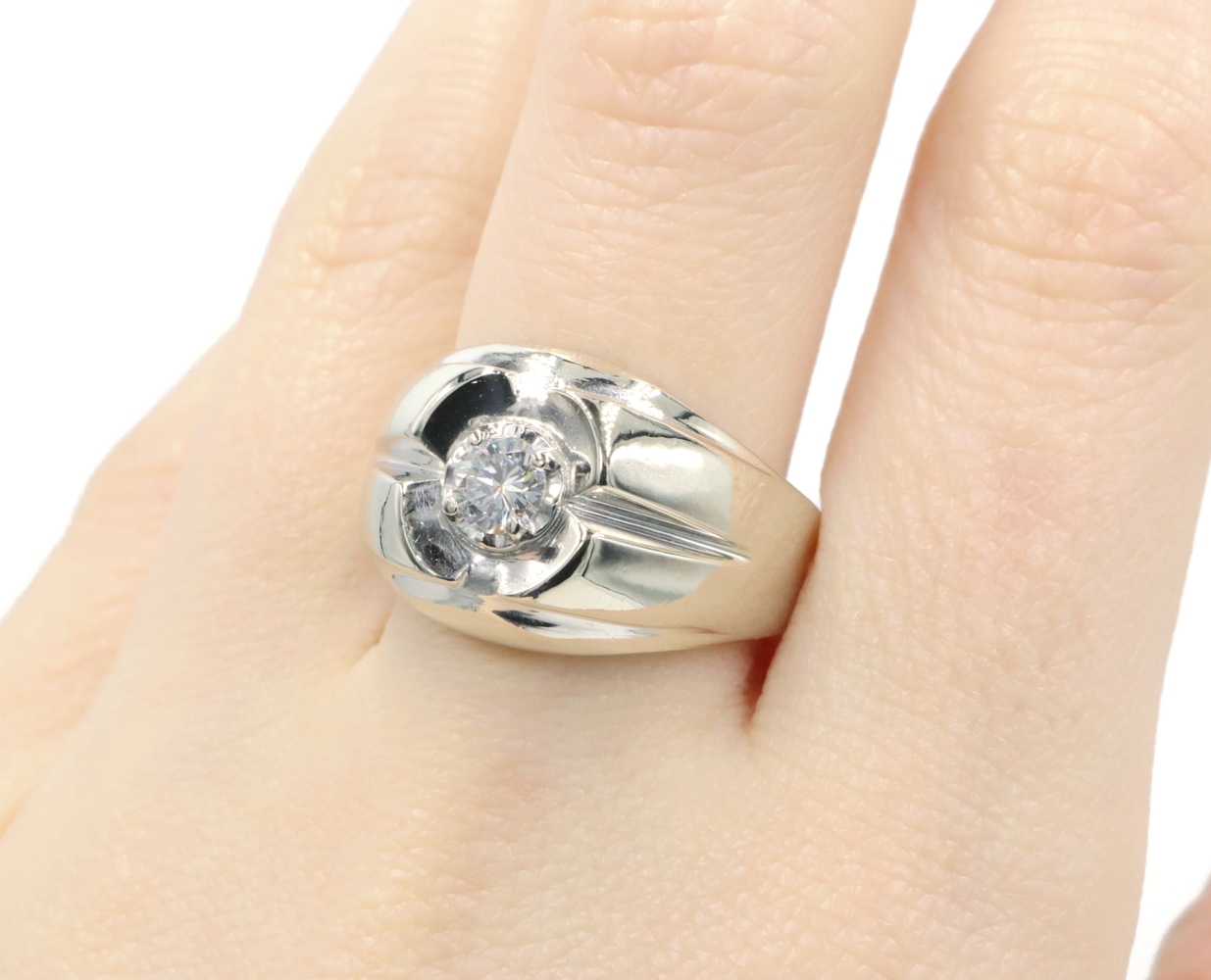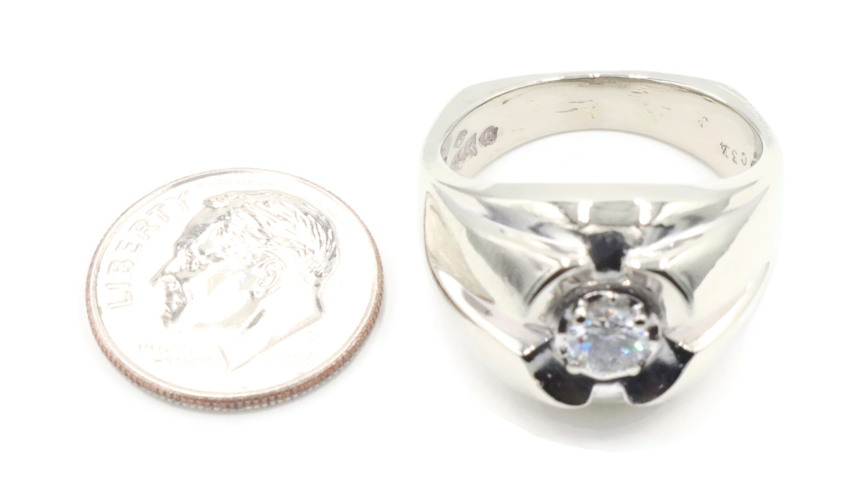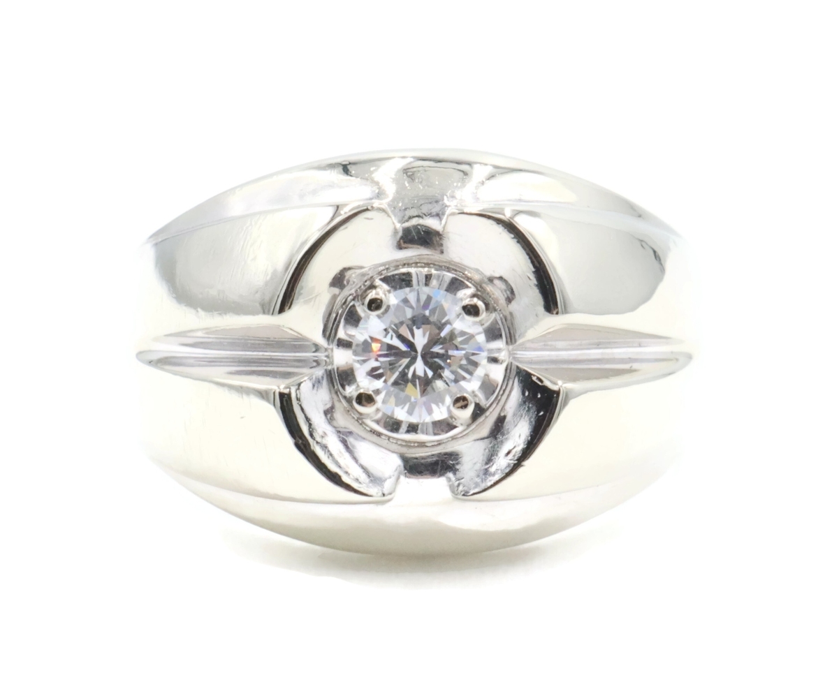 Men's Estate 0.34 Ct Round Diamond 14KT White Gold Solitaire Statement Ring 9.5g | USA Pawn