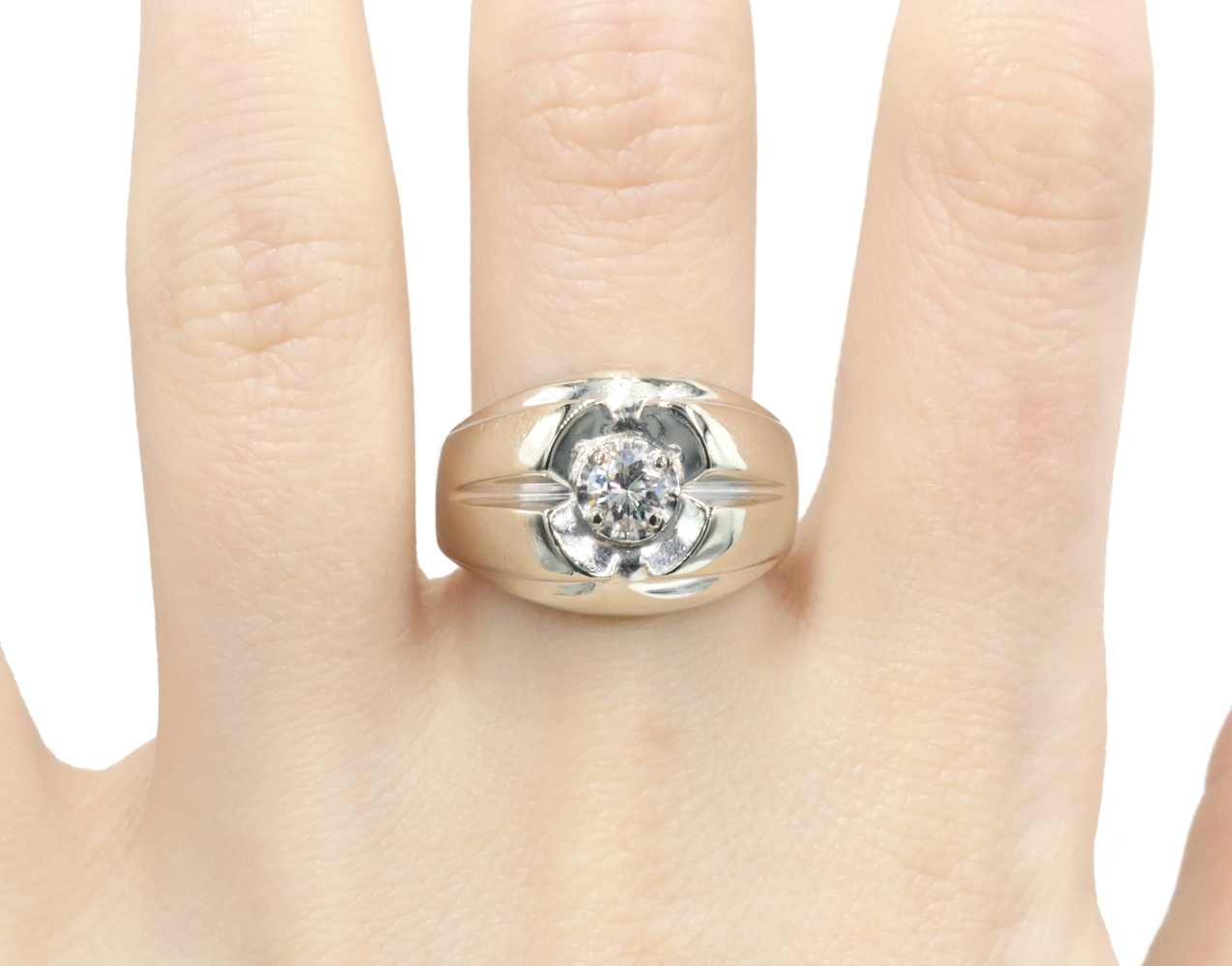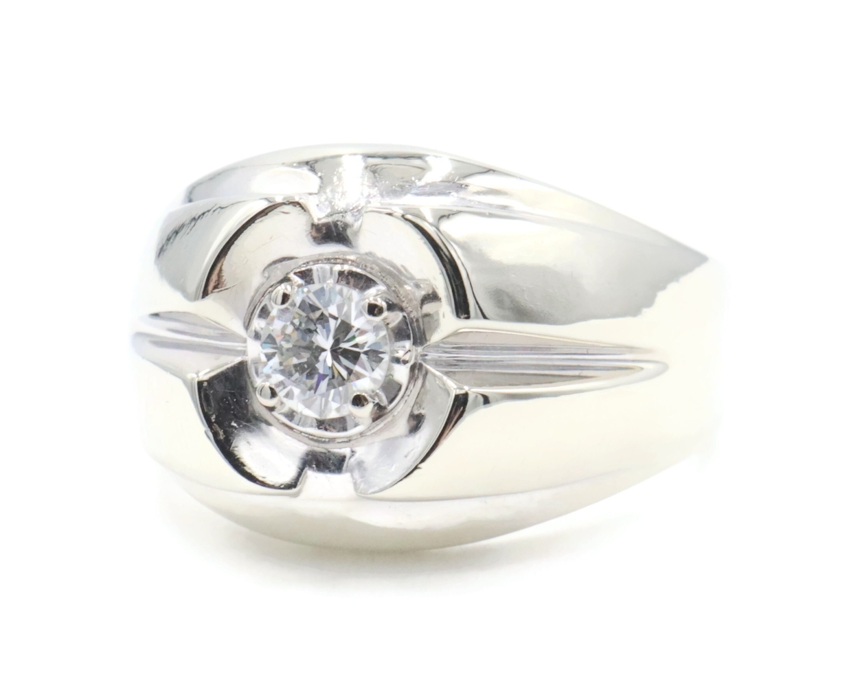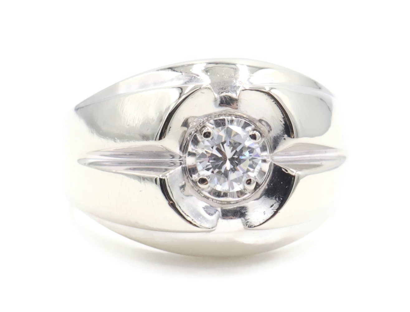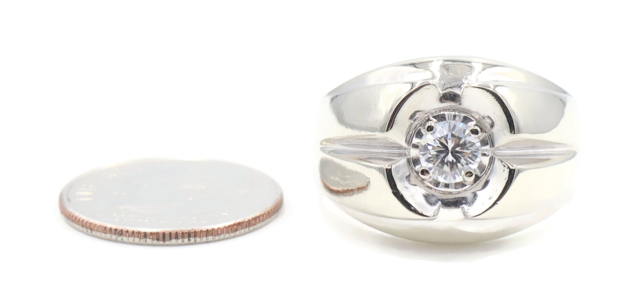 Men's Estate 0.34 Ct Round Diamond 14KT White Gold Solitaire Statement Ring 9.5g | USA Pawn