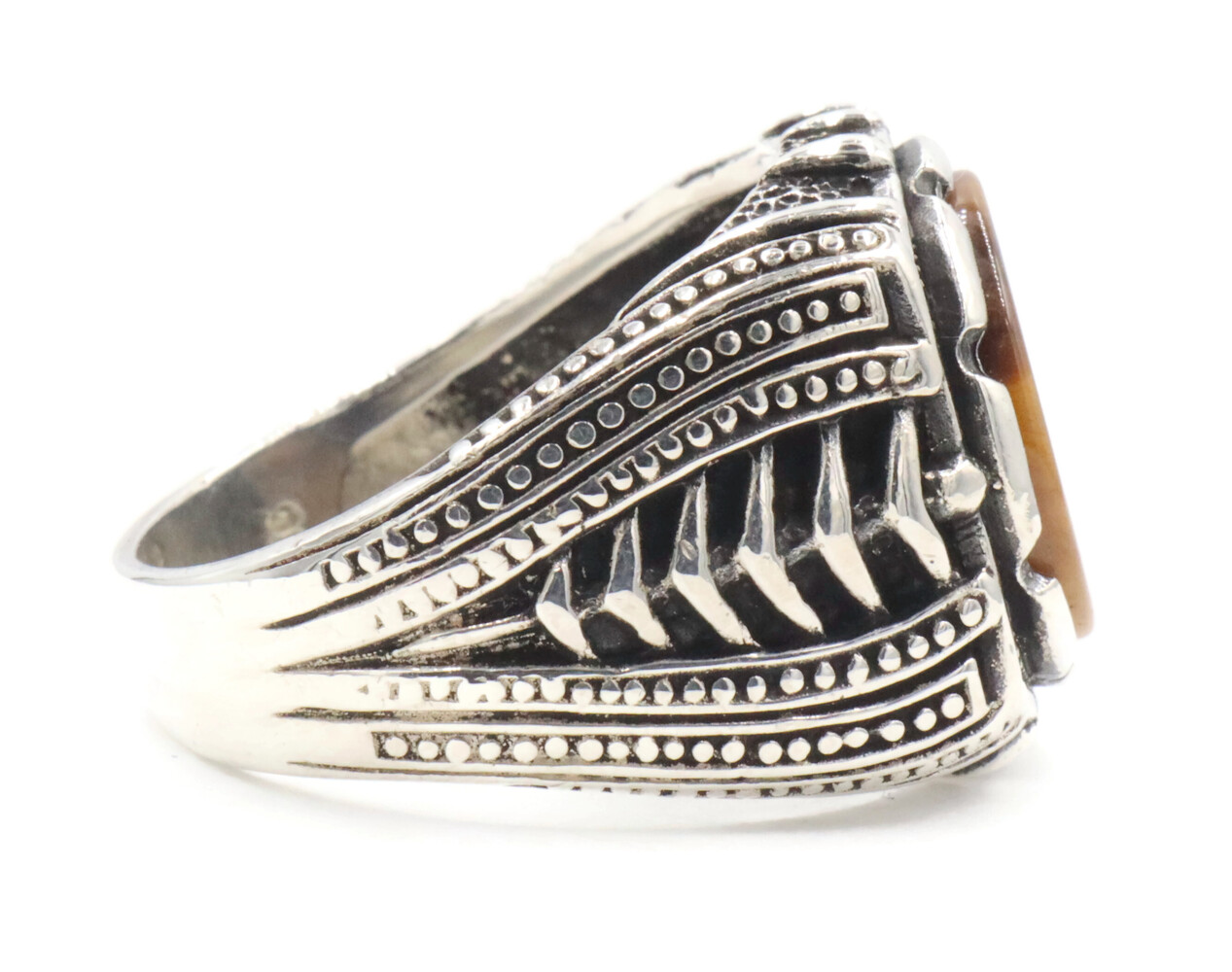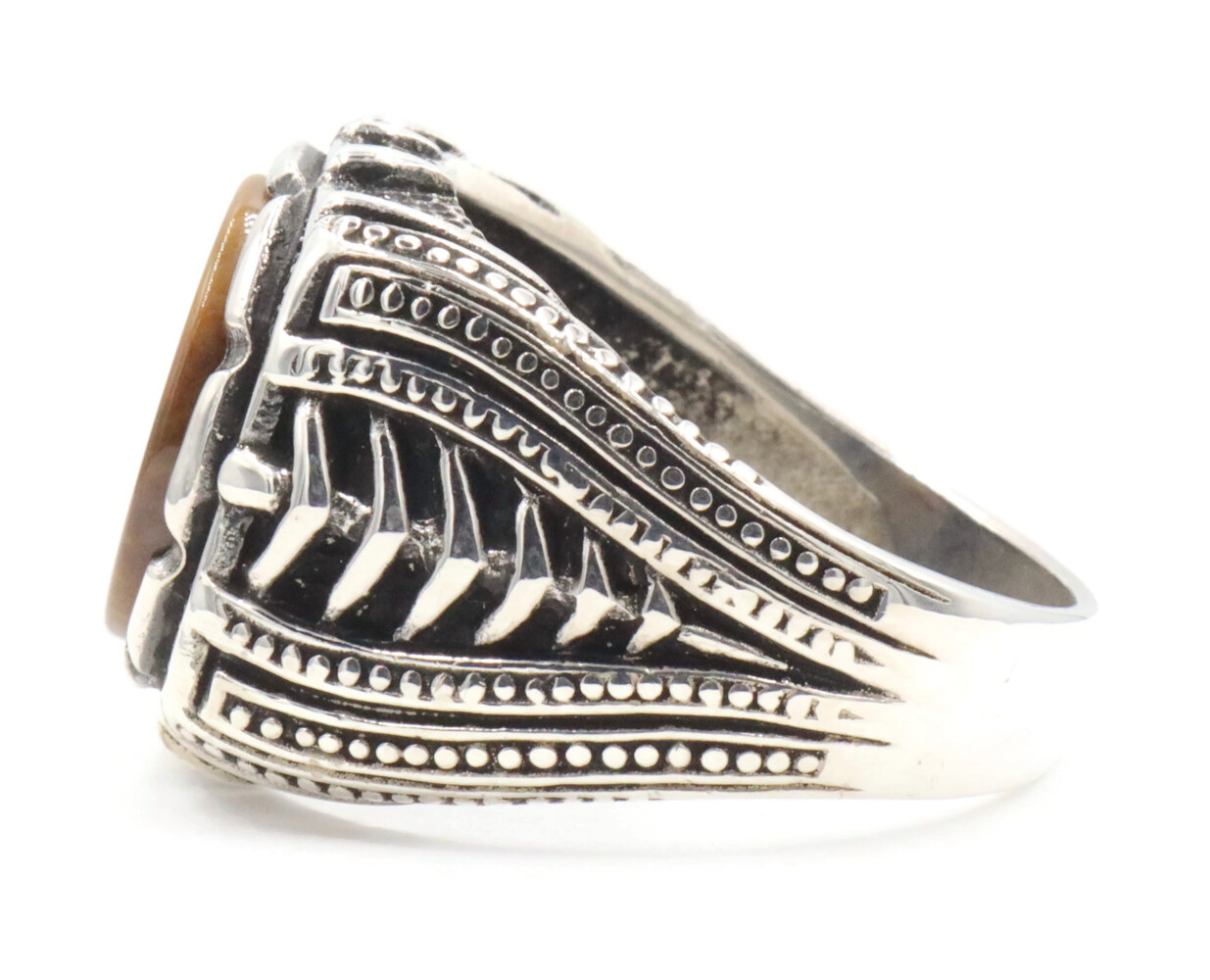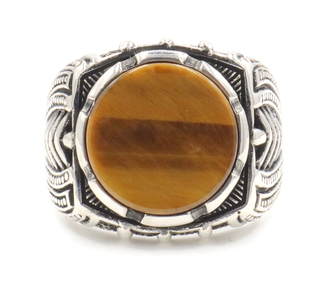 Men's Estate Sterling Silver Round Tiger's Eye 19.3mm 925 Bali Style Signet Ring | USA Pawn