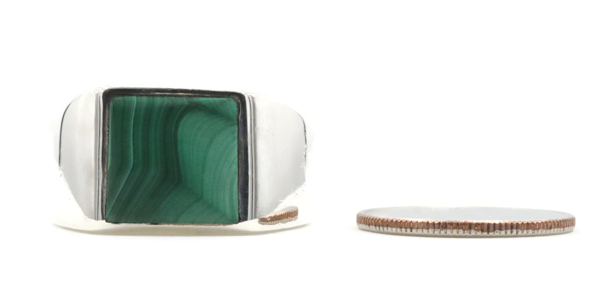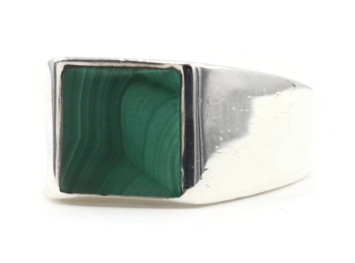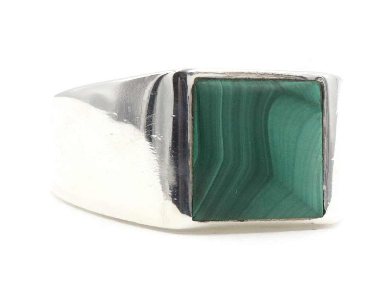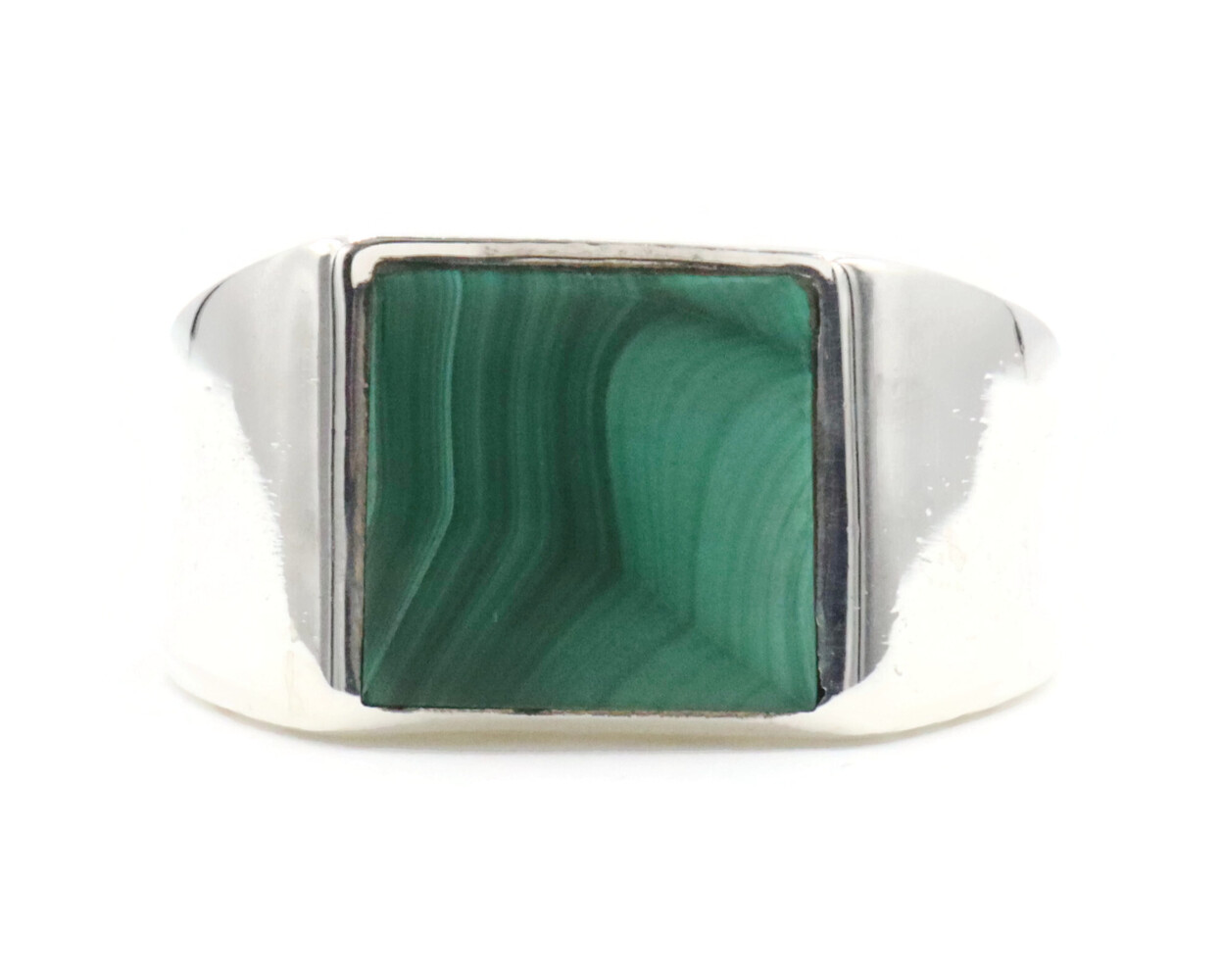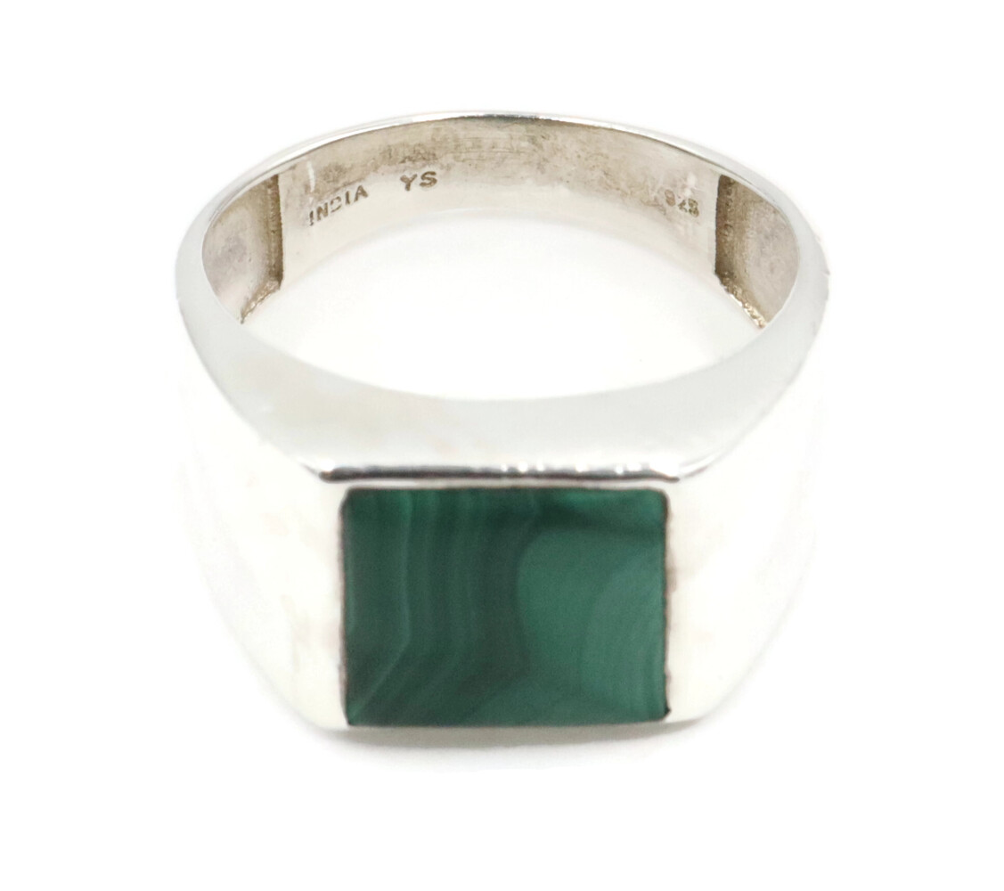 Men's Estate Sterling Silver Square Faux Malachite Heavy 11.5mm 925 Signet Ring | USA Pawn