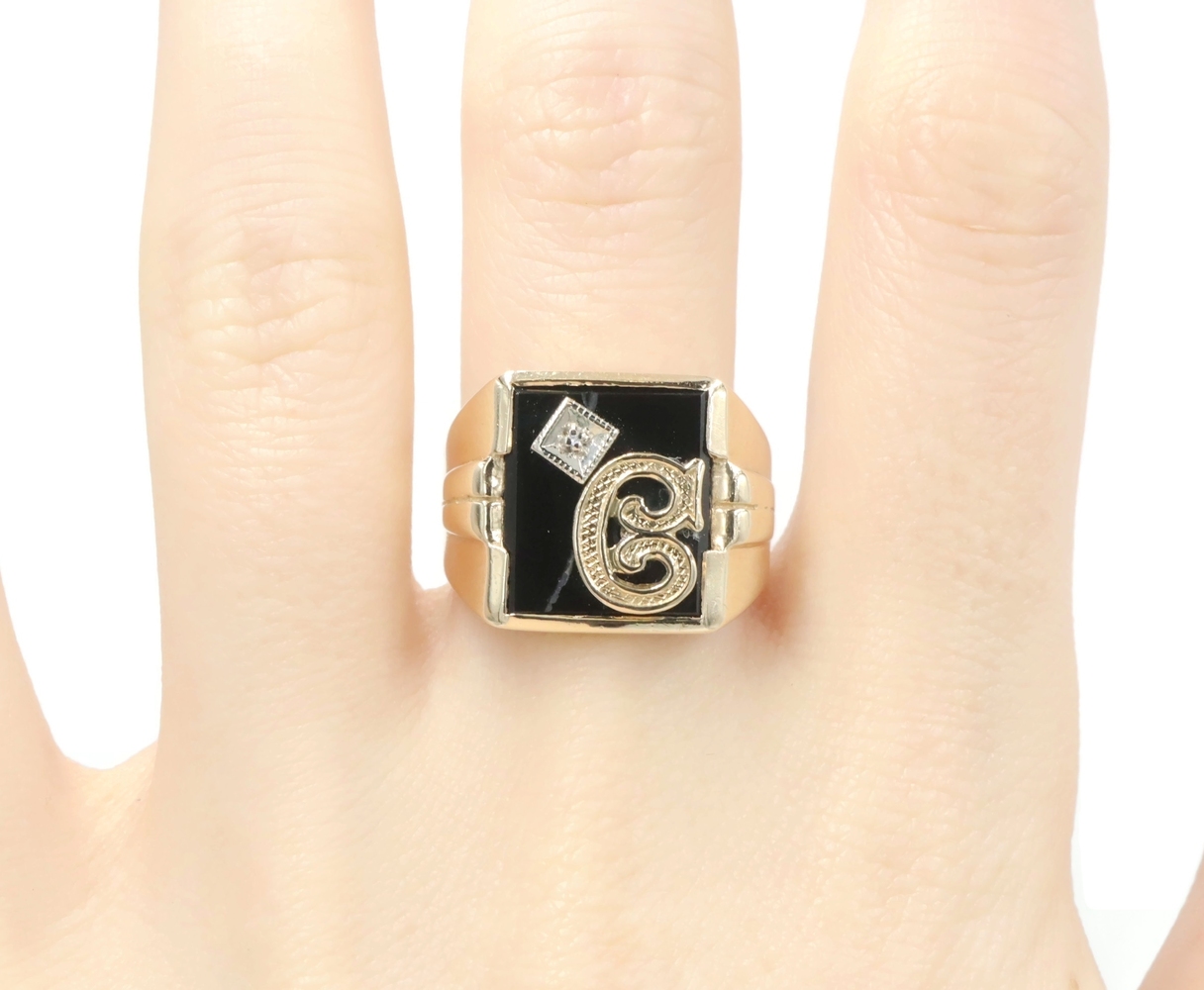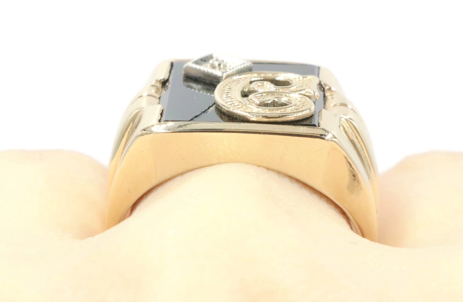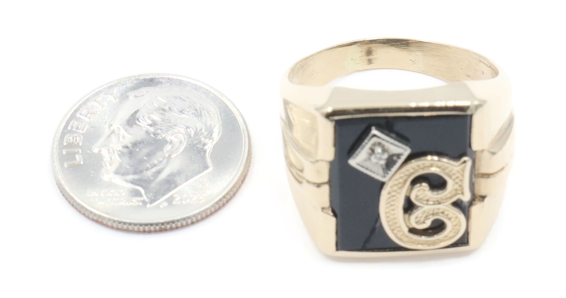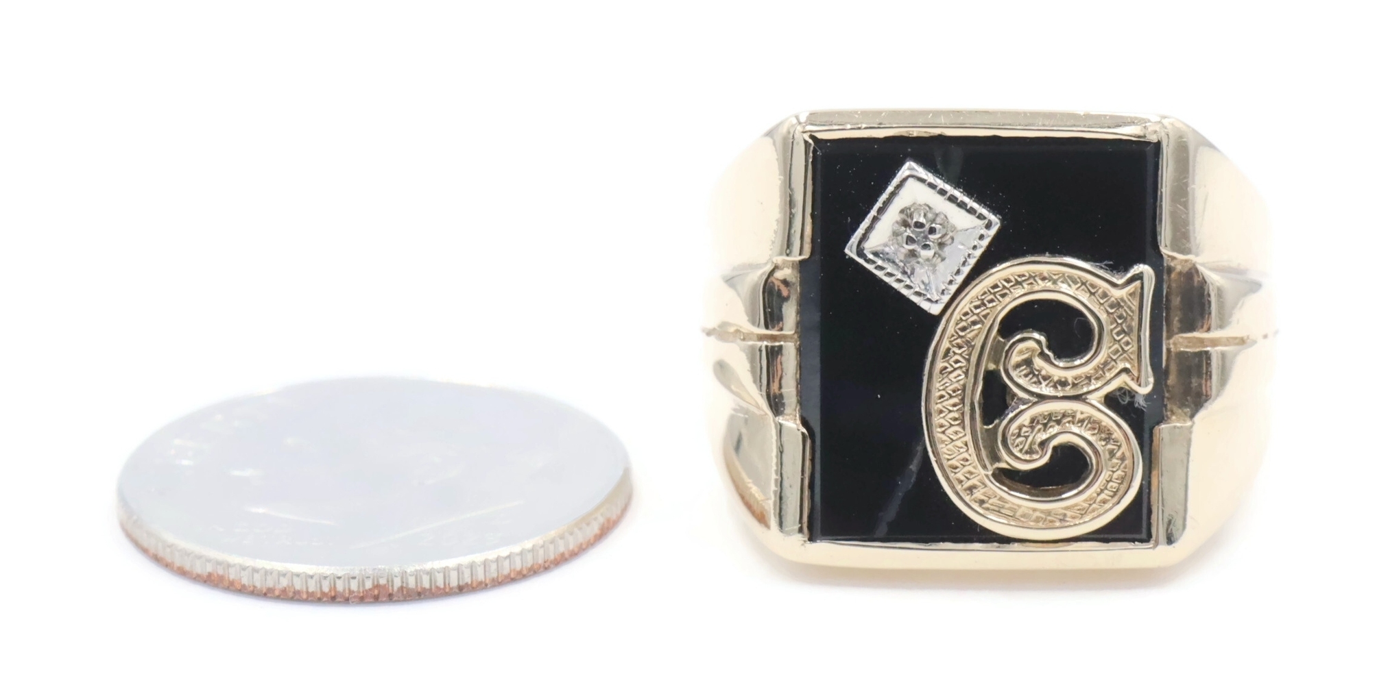 Men's Initial "G" 10KT Yellow Gold Black Onyx Inlay & Round Diamond Accent Ring | USA Pawn