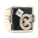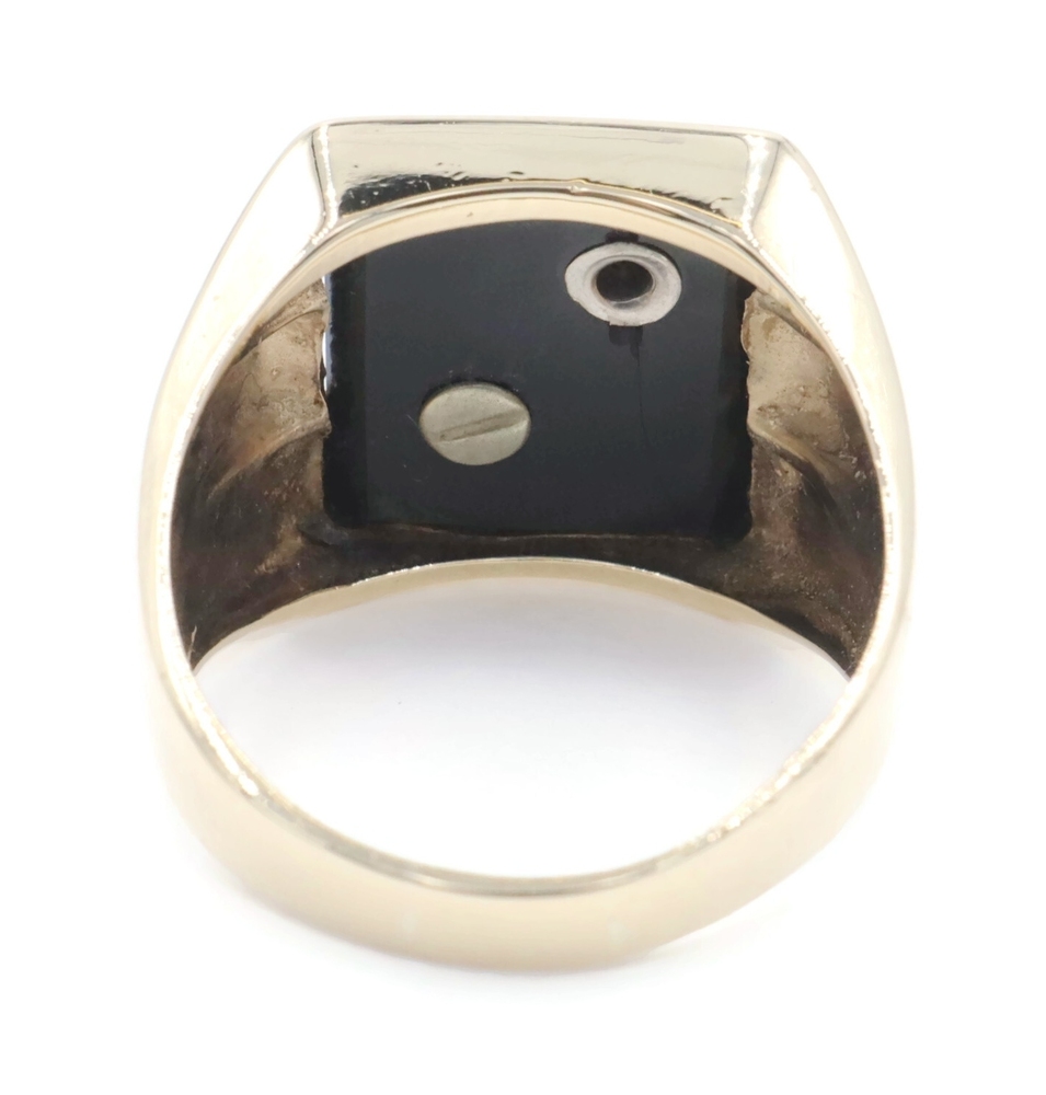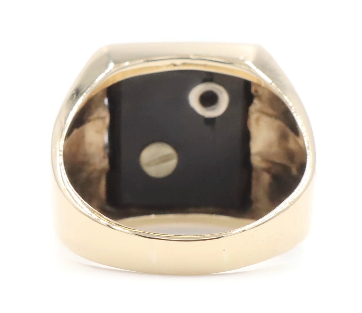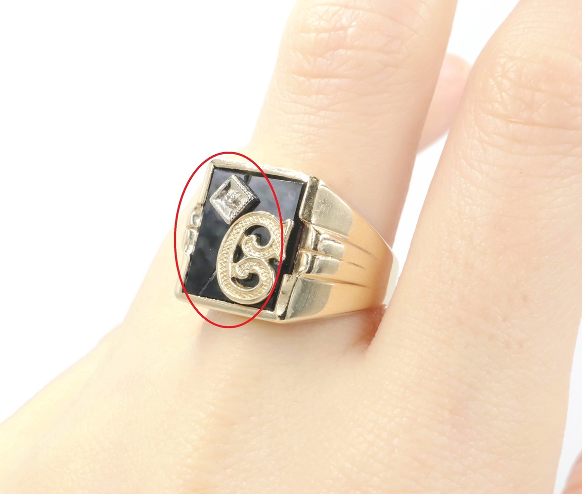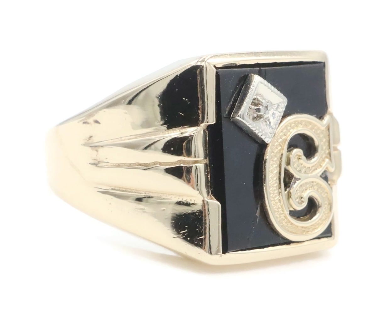 Men's Initial "G" 10KT Yellow Gold Black Onyx Inlay & Round Diamond Accent Ring | USA Pawn