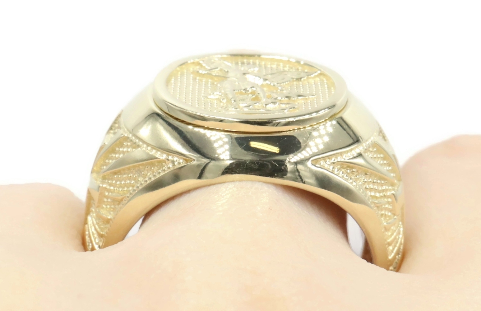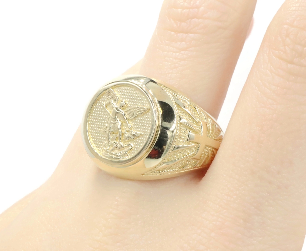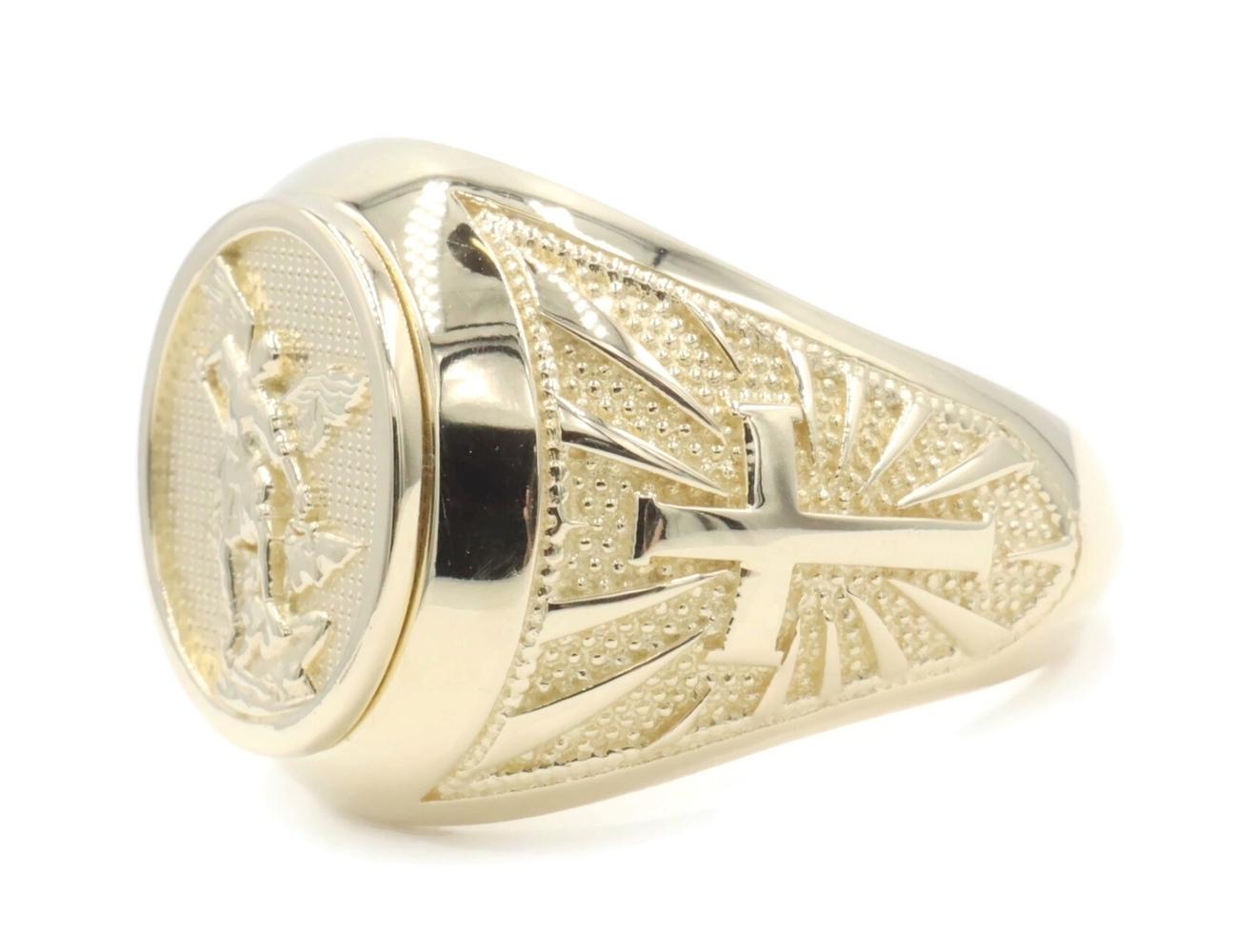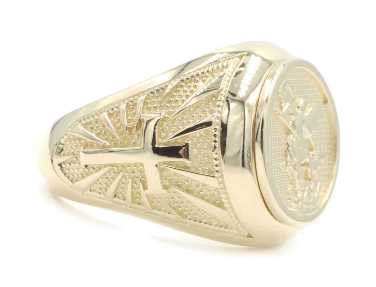 Men's St. Michael Archangel 14KT Yellow Gold Signet Cross Statement Ring 12.94g | USA Pawn